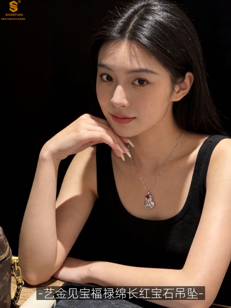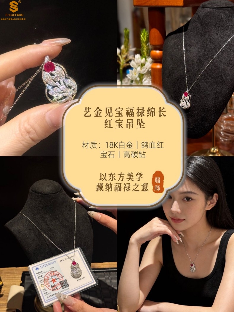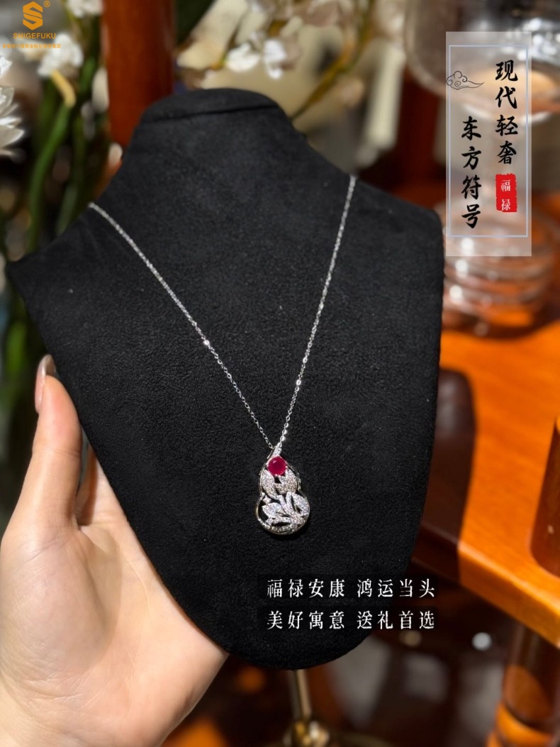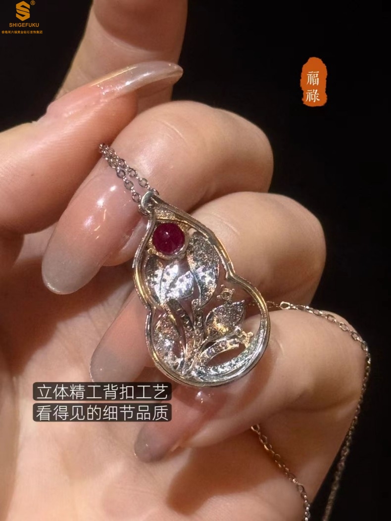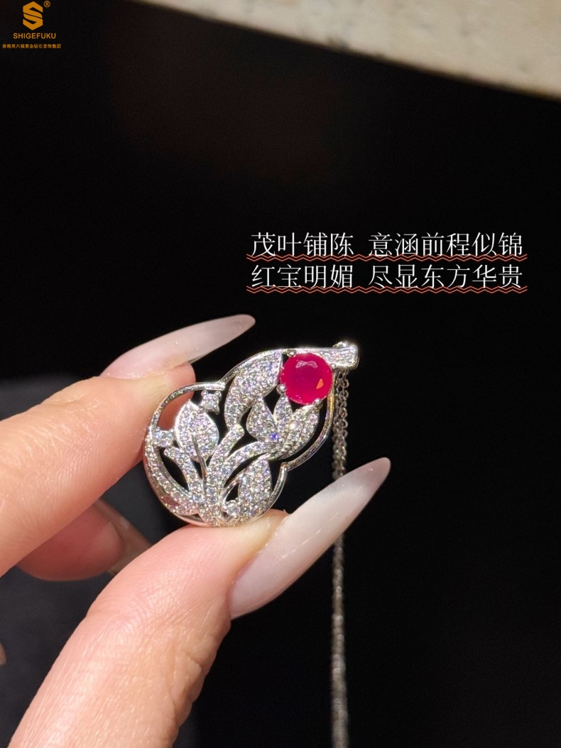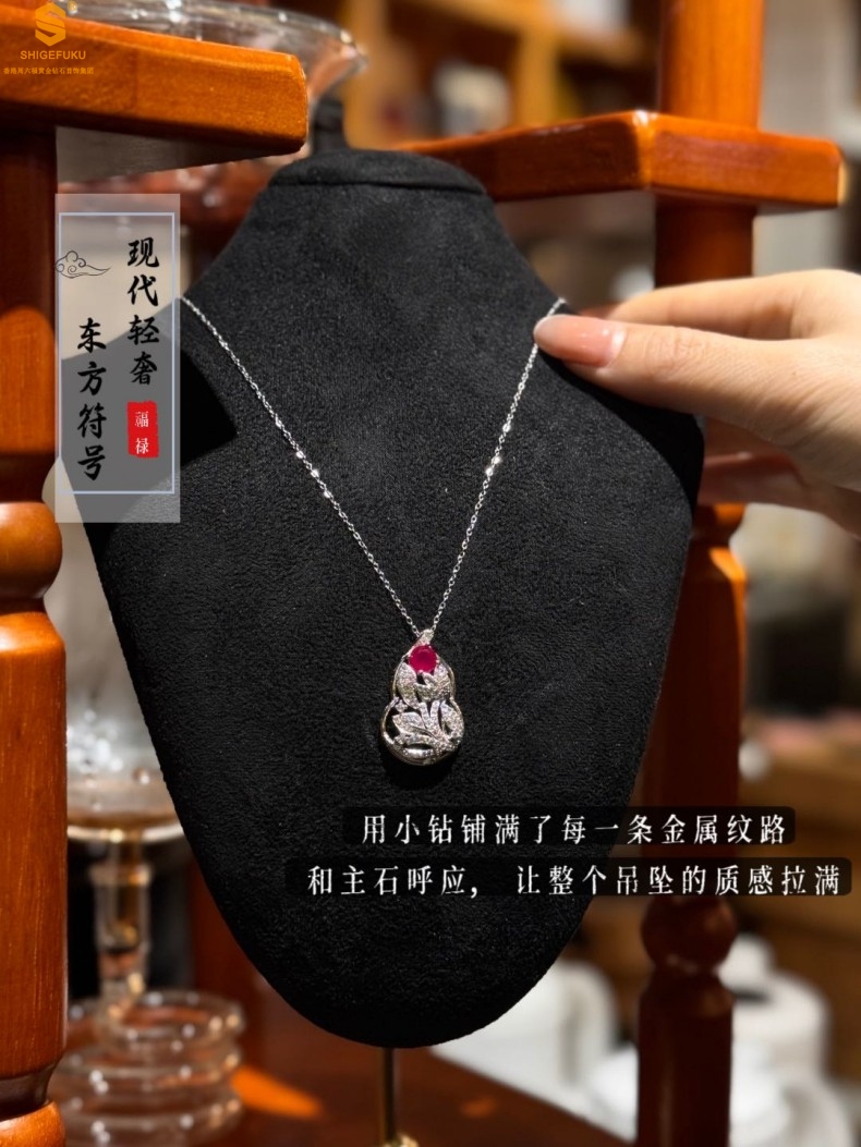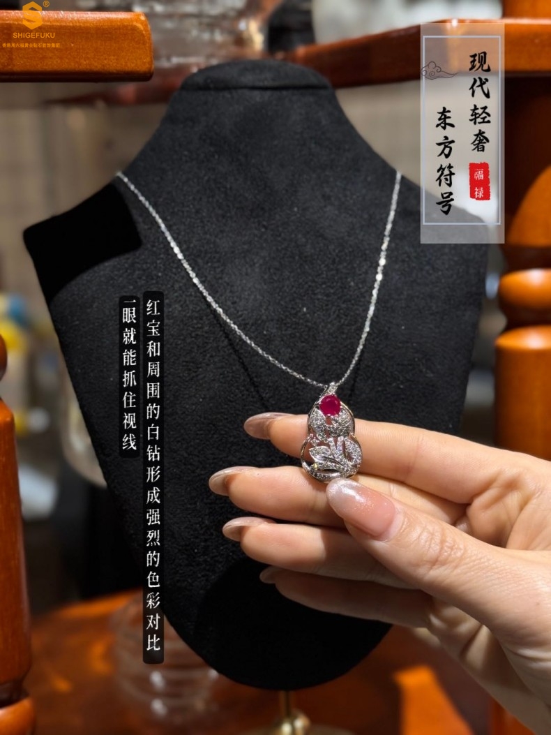 【品名】艺金见宝福禄绵长红宝石吊坠(附赠K铂金项链)