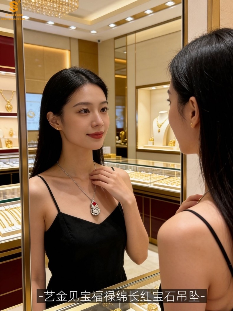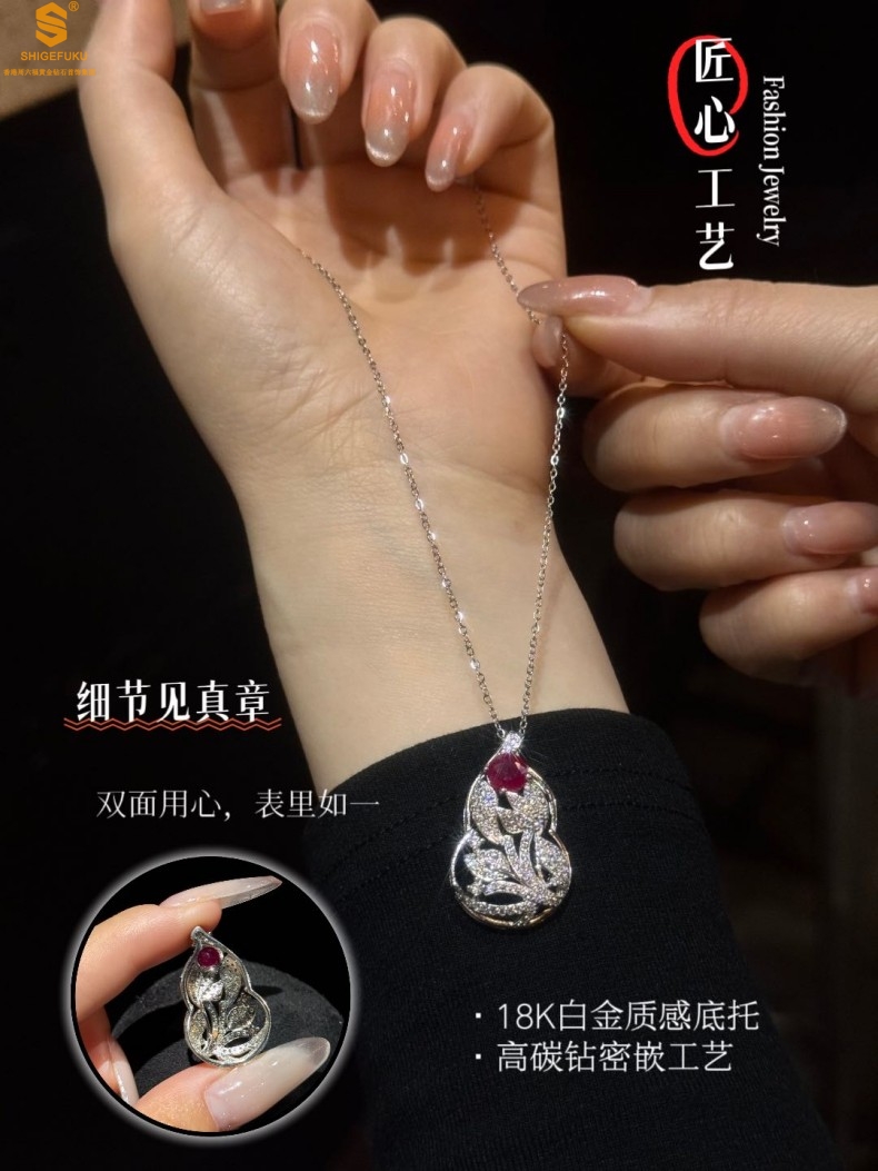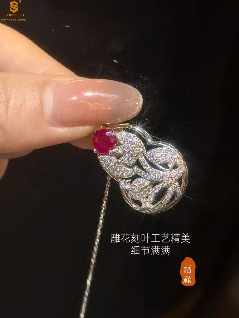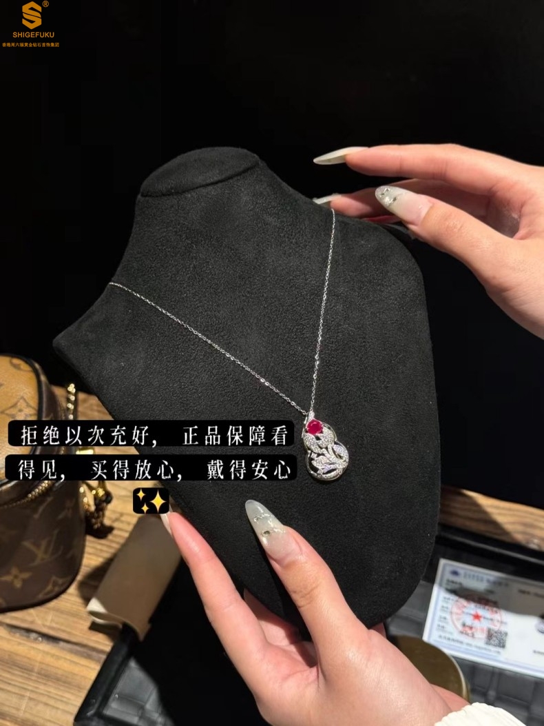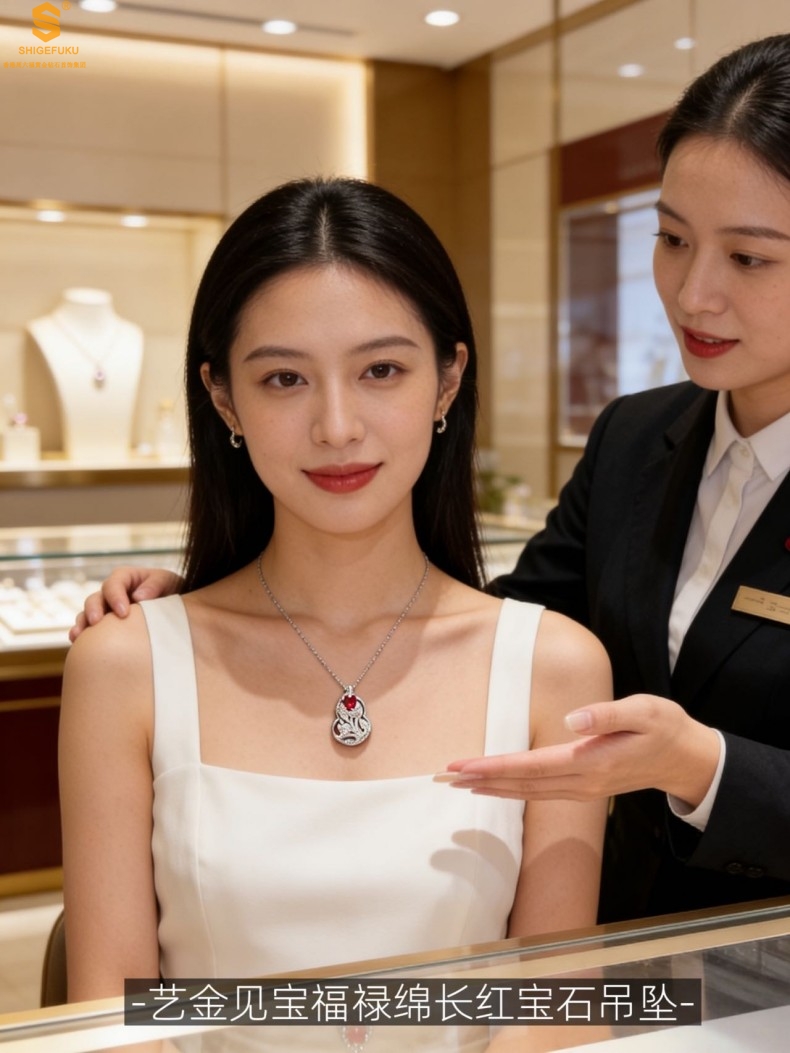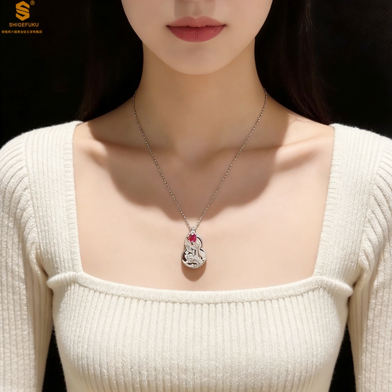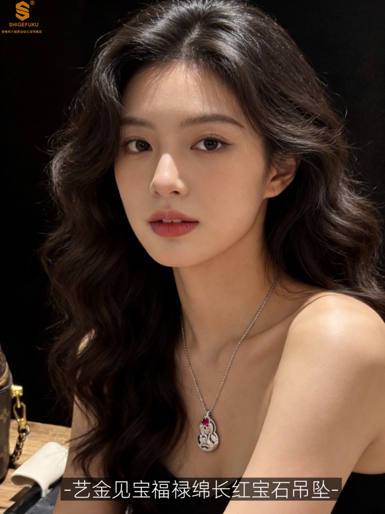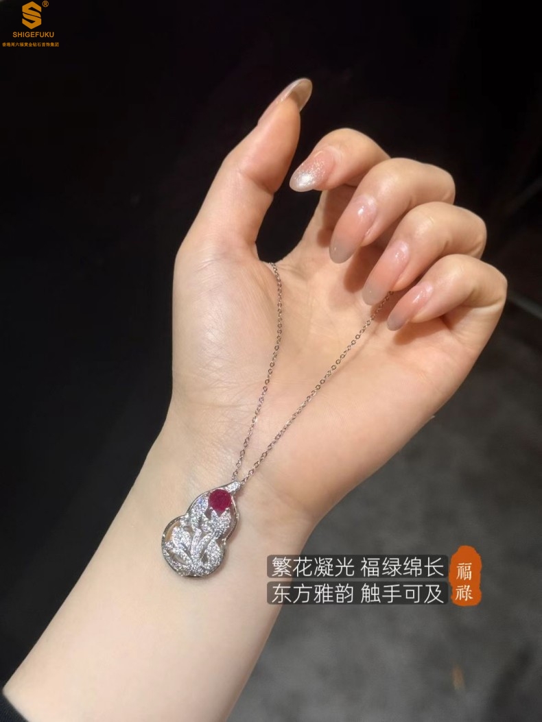 【品名】艺金见宝福禄绵长红宝石吊坠(附赠K铂金项链)