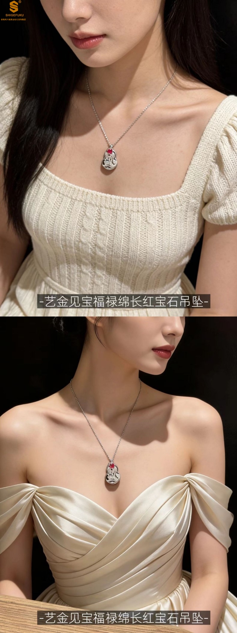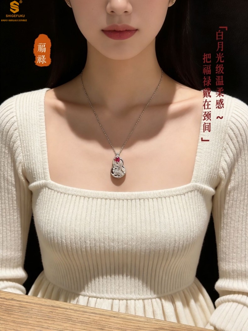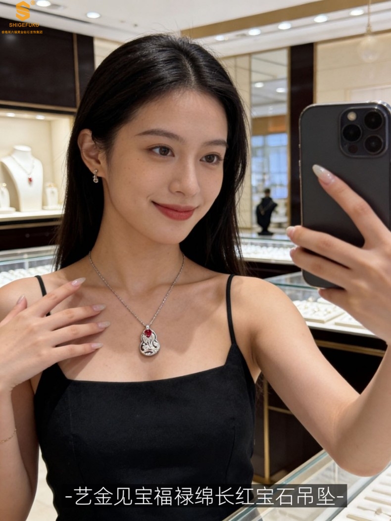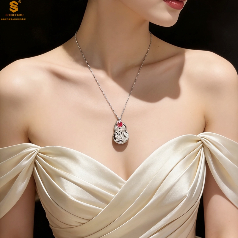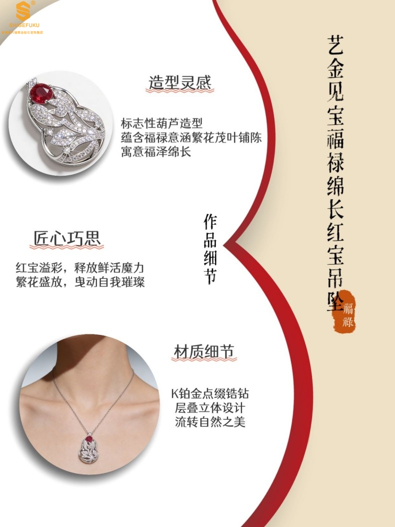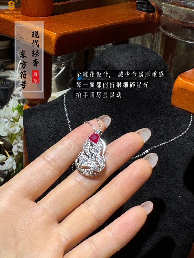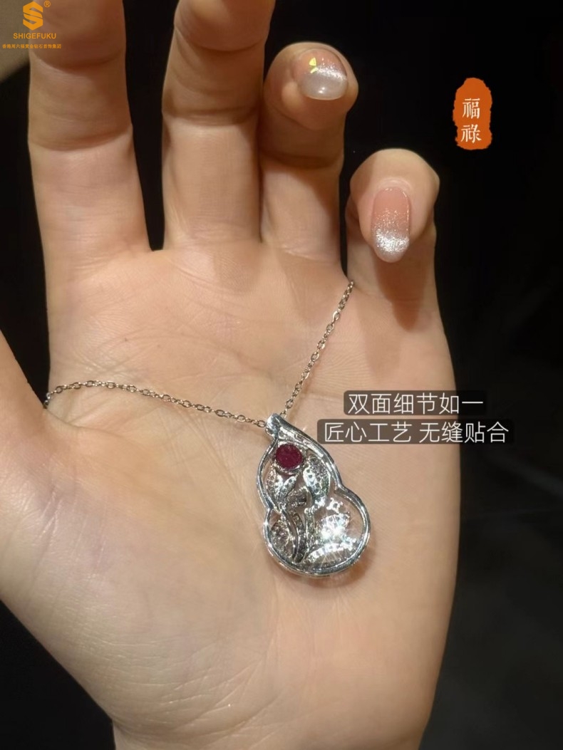 【品名】艺金见宝福禄绵长红宝石吊坠(附赠K铂金项链)