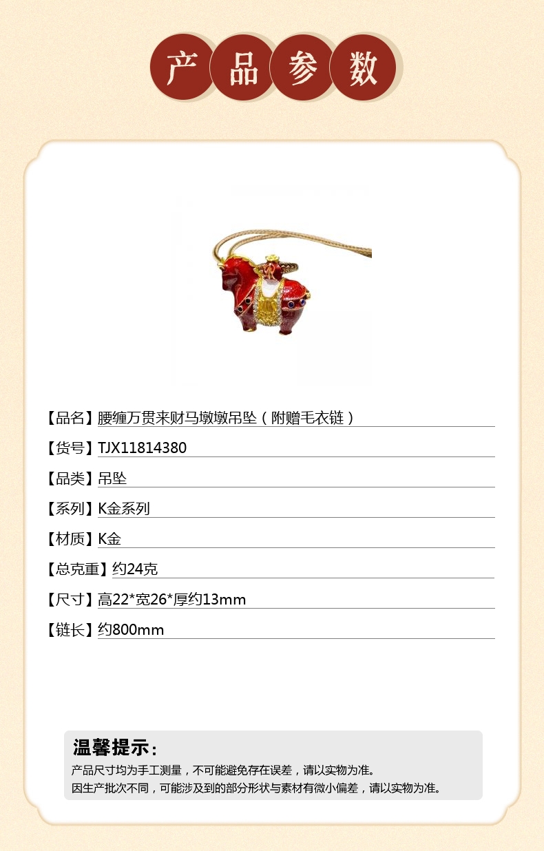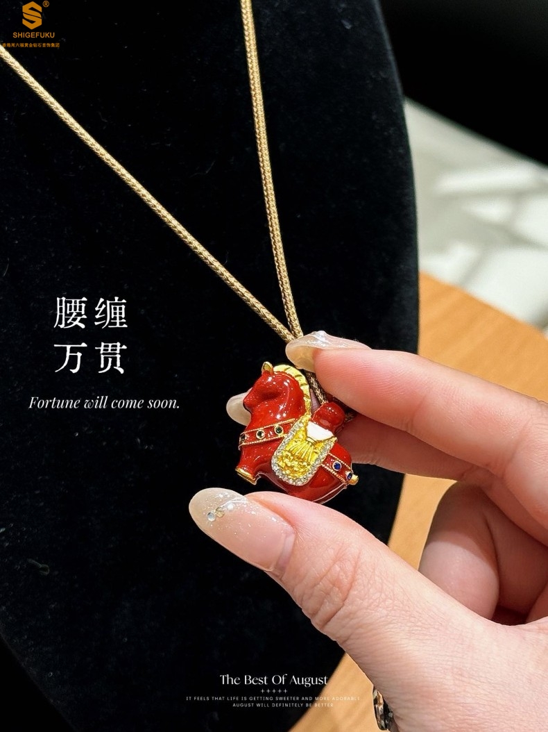 【品名】腰缠万贯来财马墩墩吊坠(附赠毛衣链)