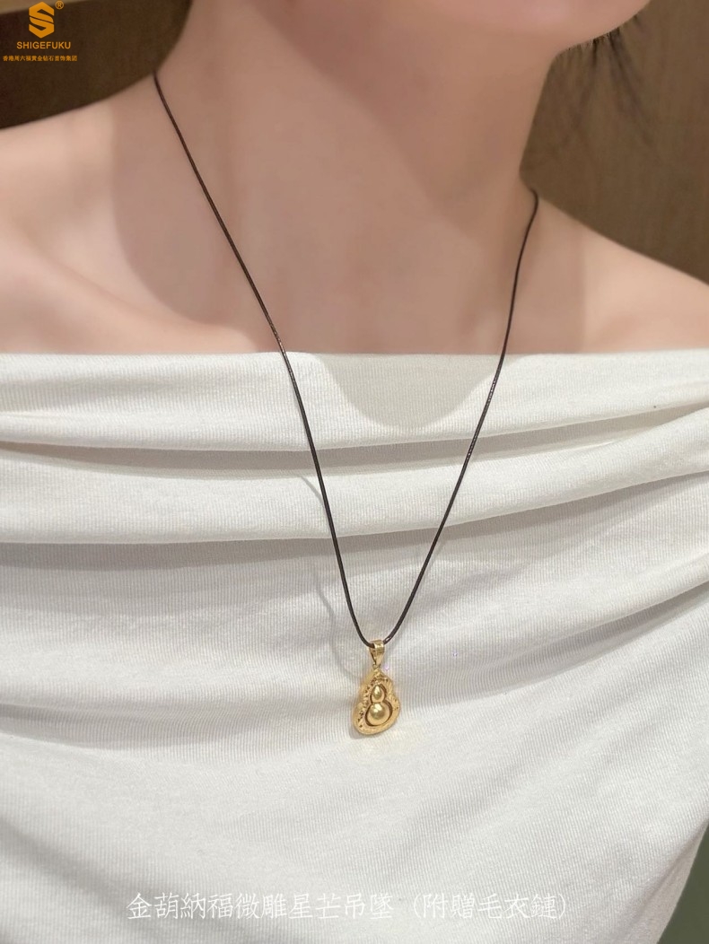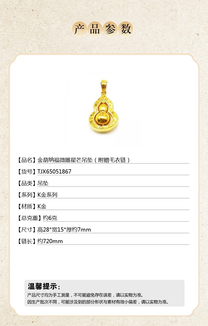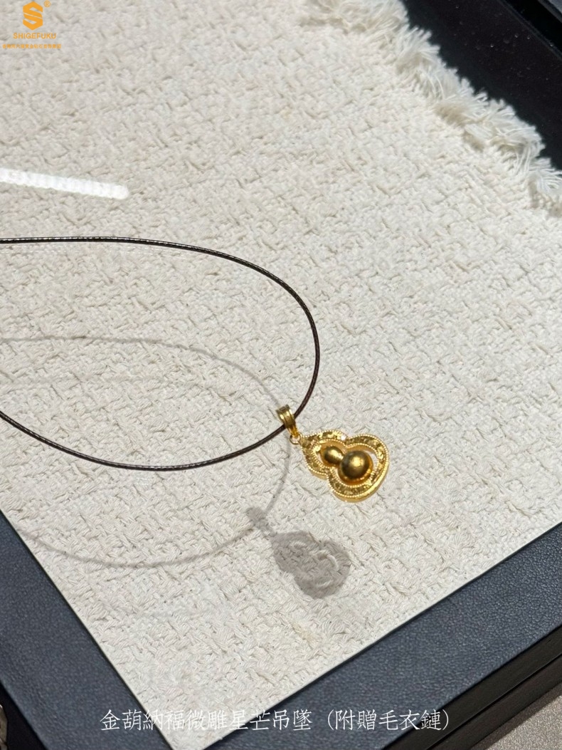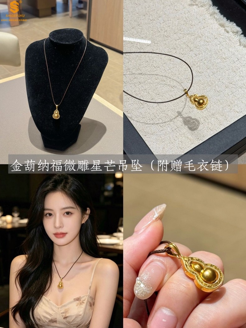 【品名】金葫纳福微雕星芒吊坠(附赠毛衣链)