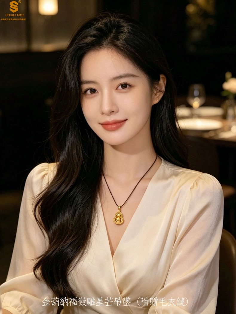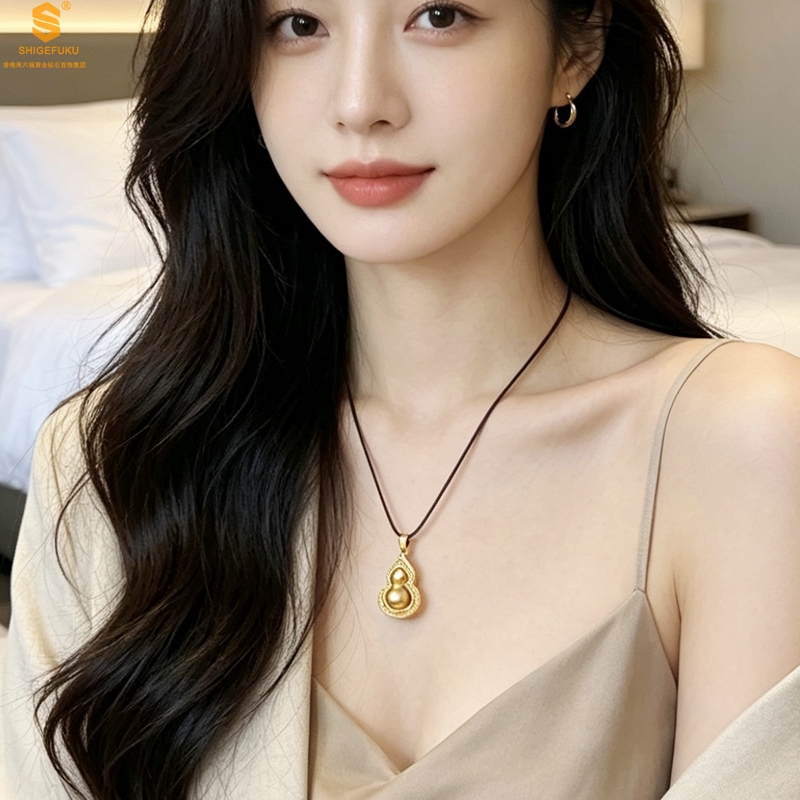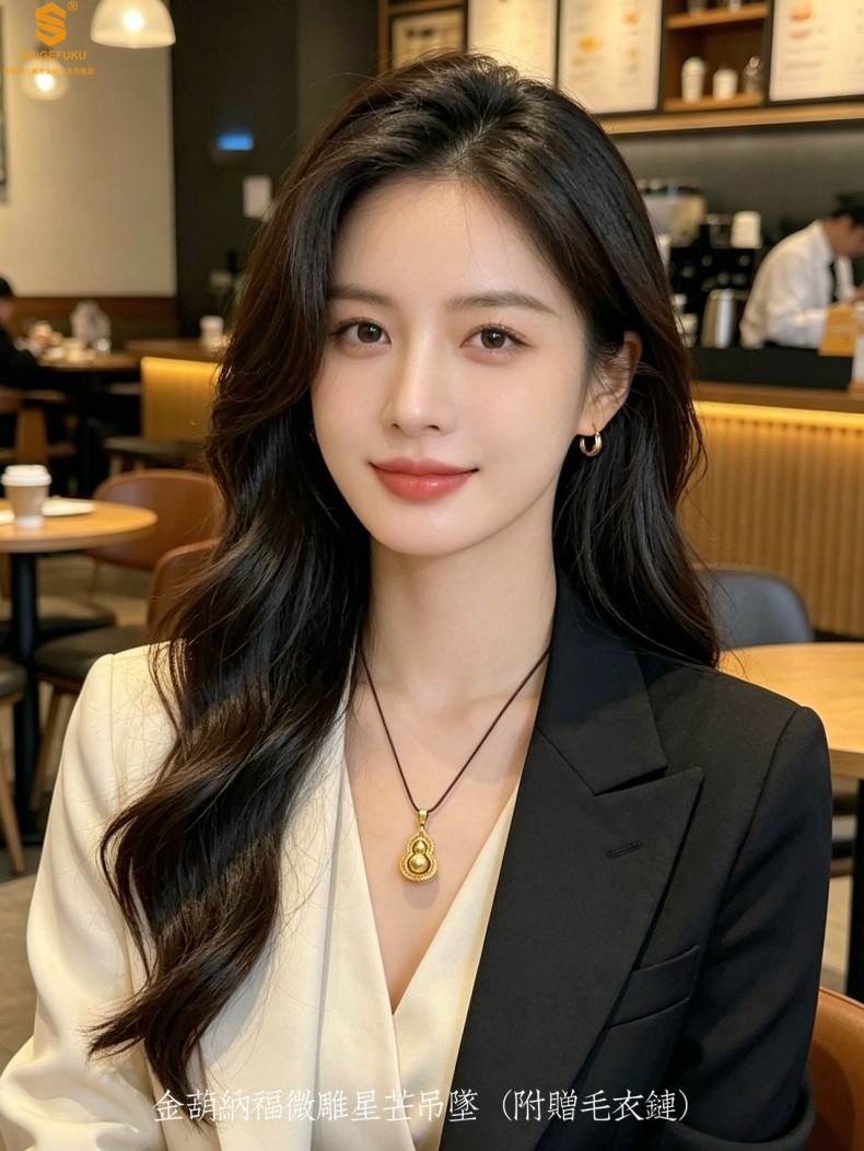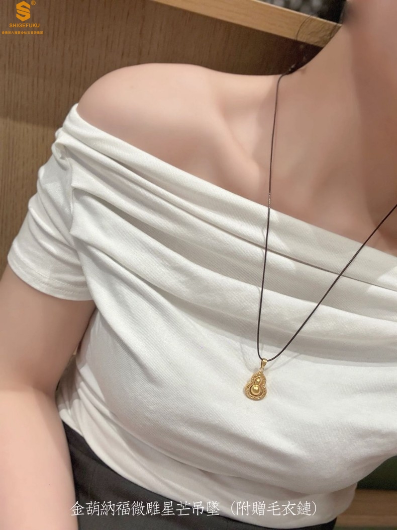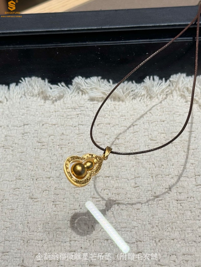 【品名】金葫纳福微雕星芒吊坠(附赠毛衣链)