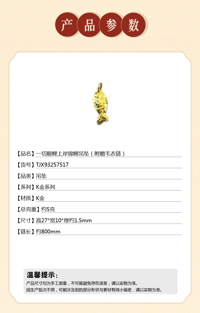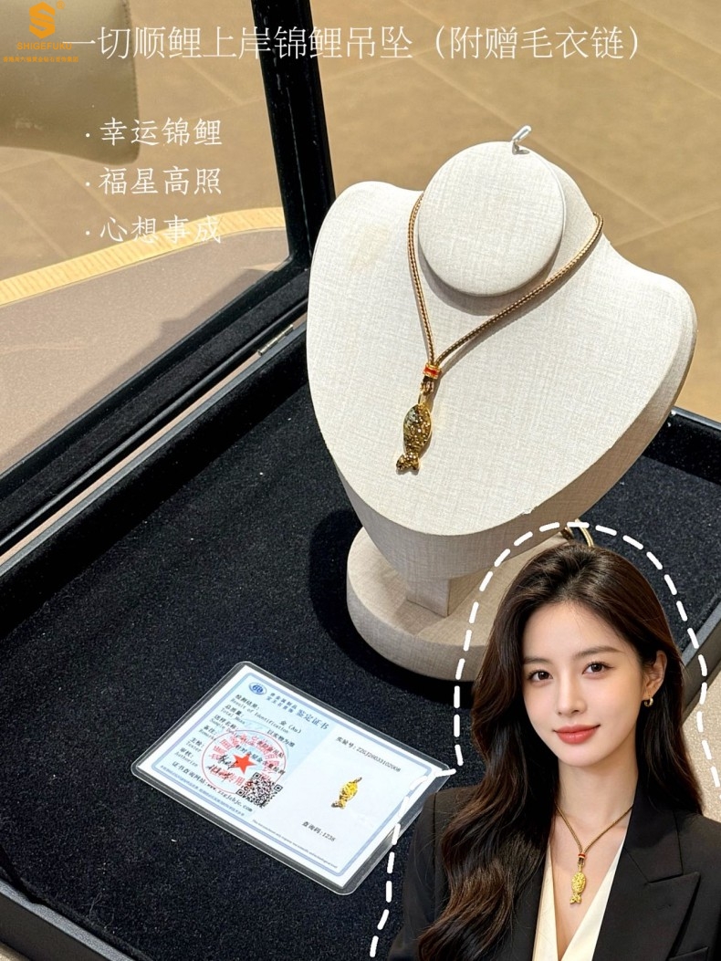 【品名】一切顺鲤上岸锦鲤吊坠(附赠毛衣链)