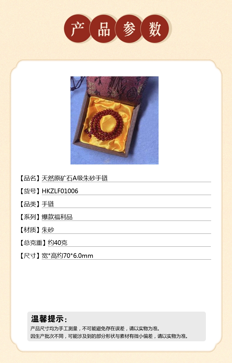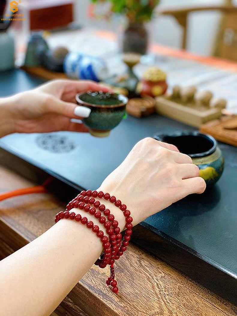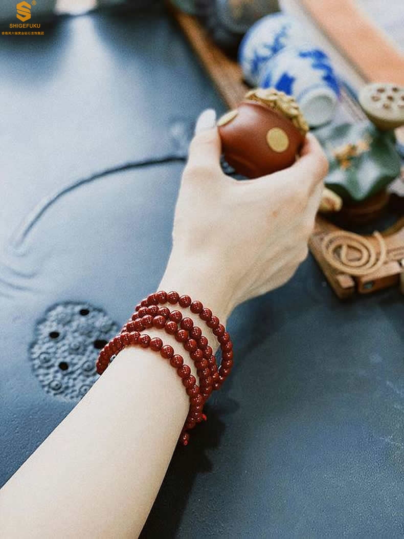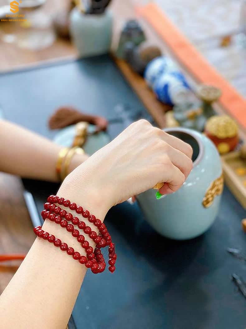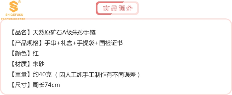 【品名】天然原矿石A级朱砂手链
