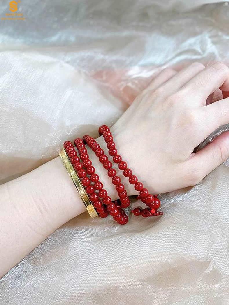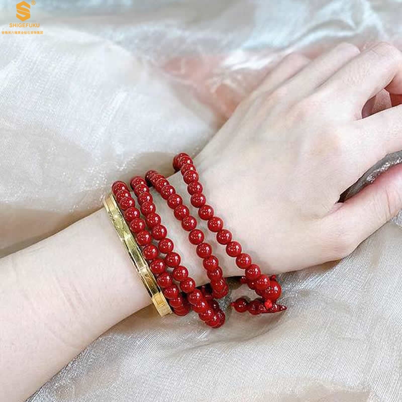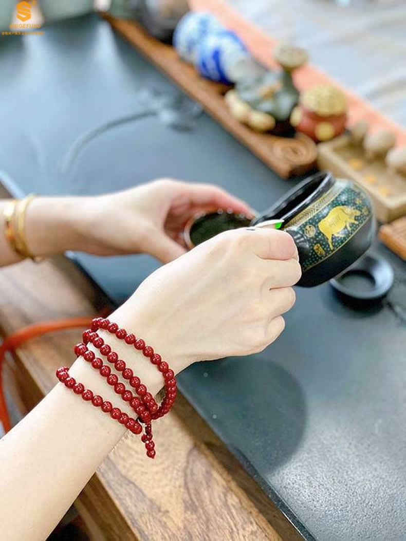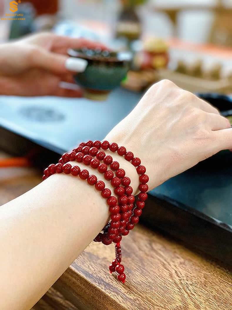 【品名】天然原矿石A级朱砂手链