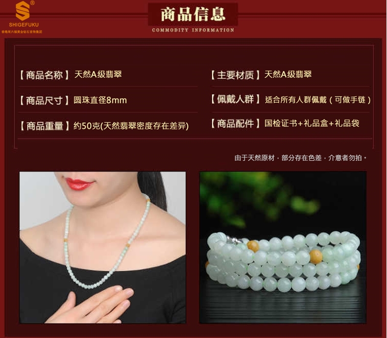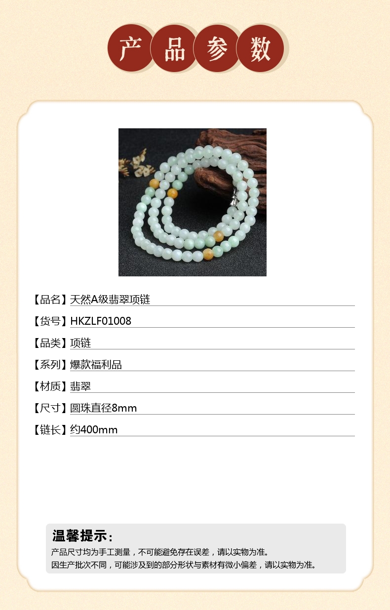 【品名】天然A级翡翠项链
