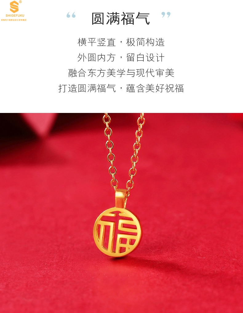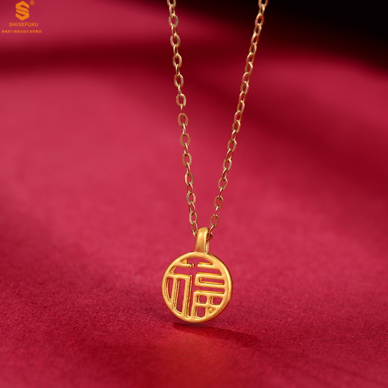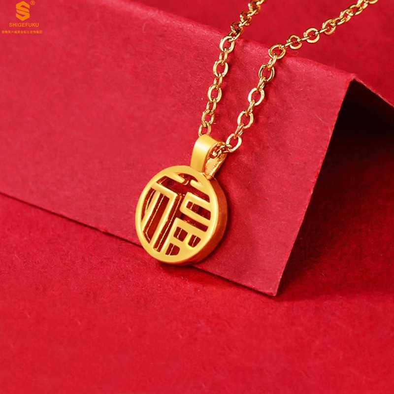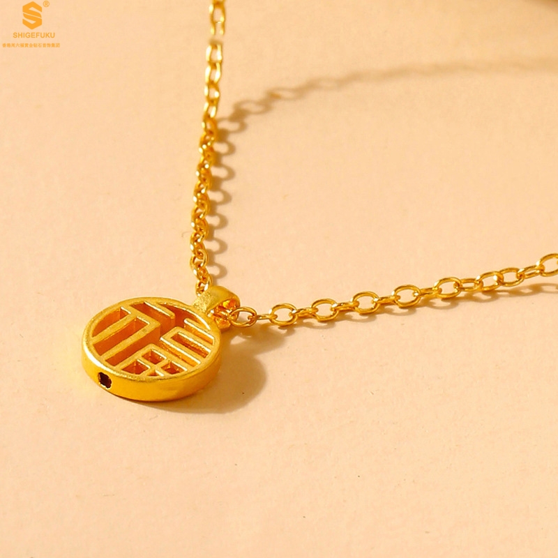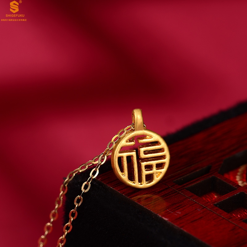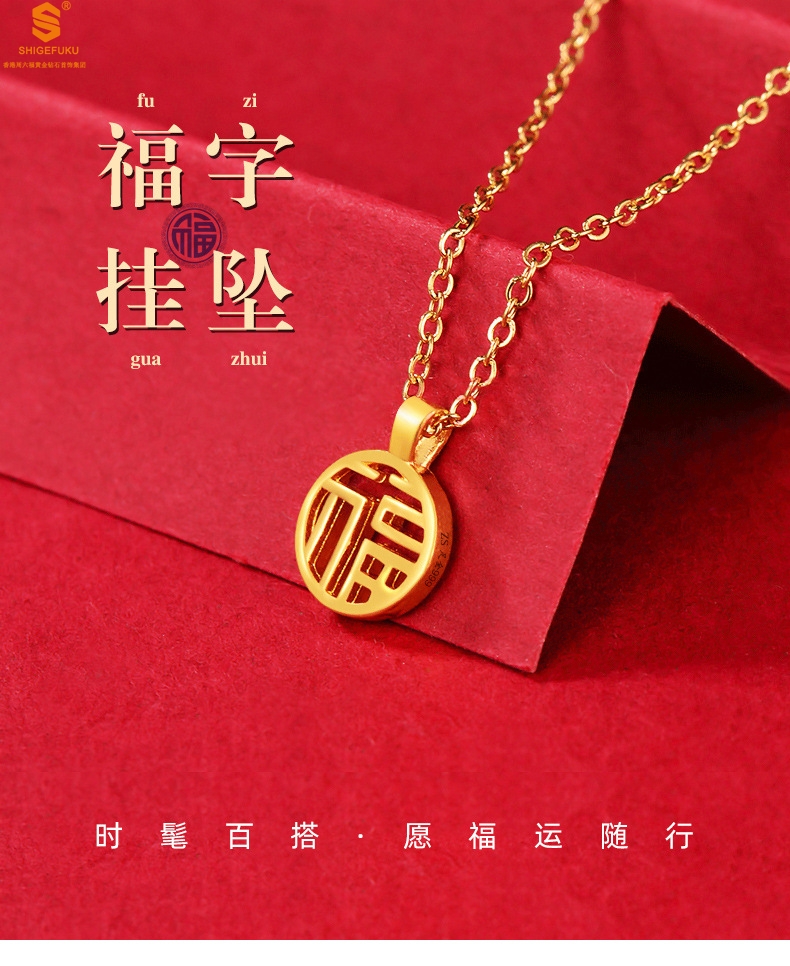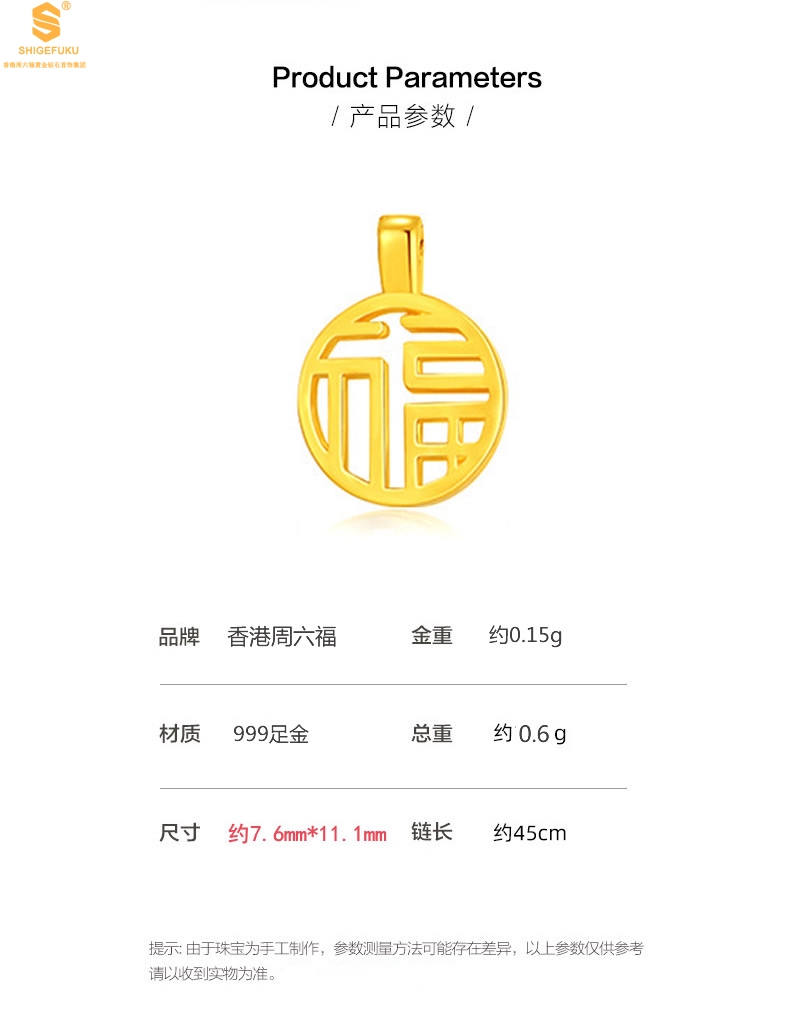 【品名】足金内嵌足银-镂空福牌吊坠(附赠K金项链)