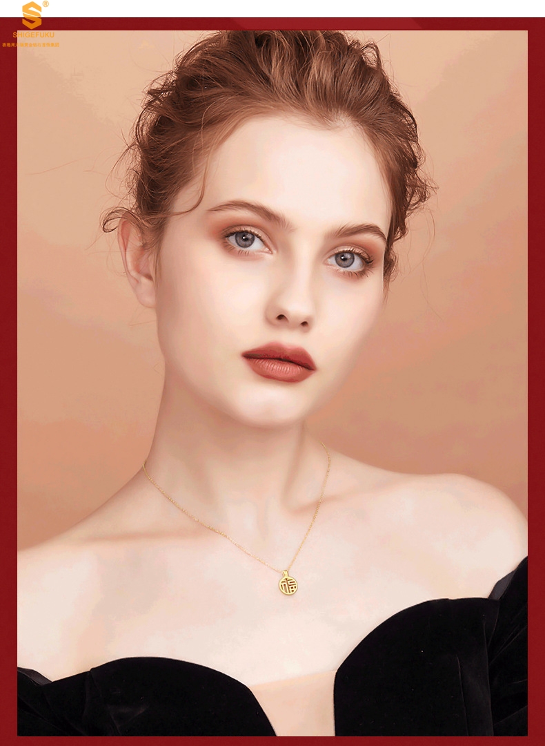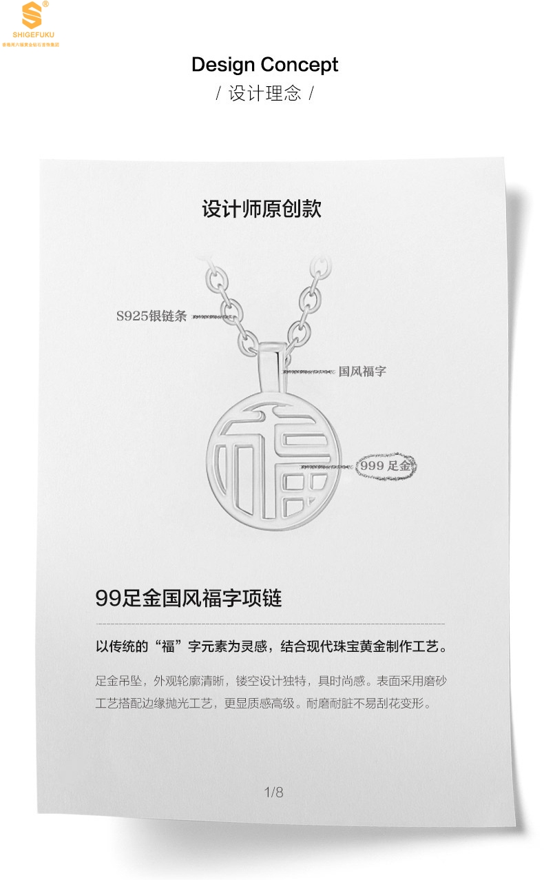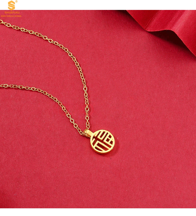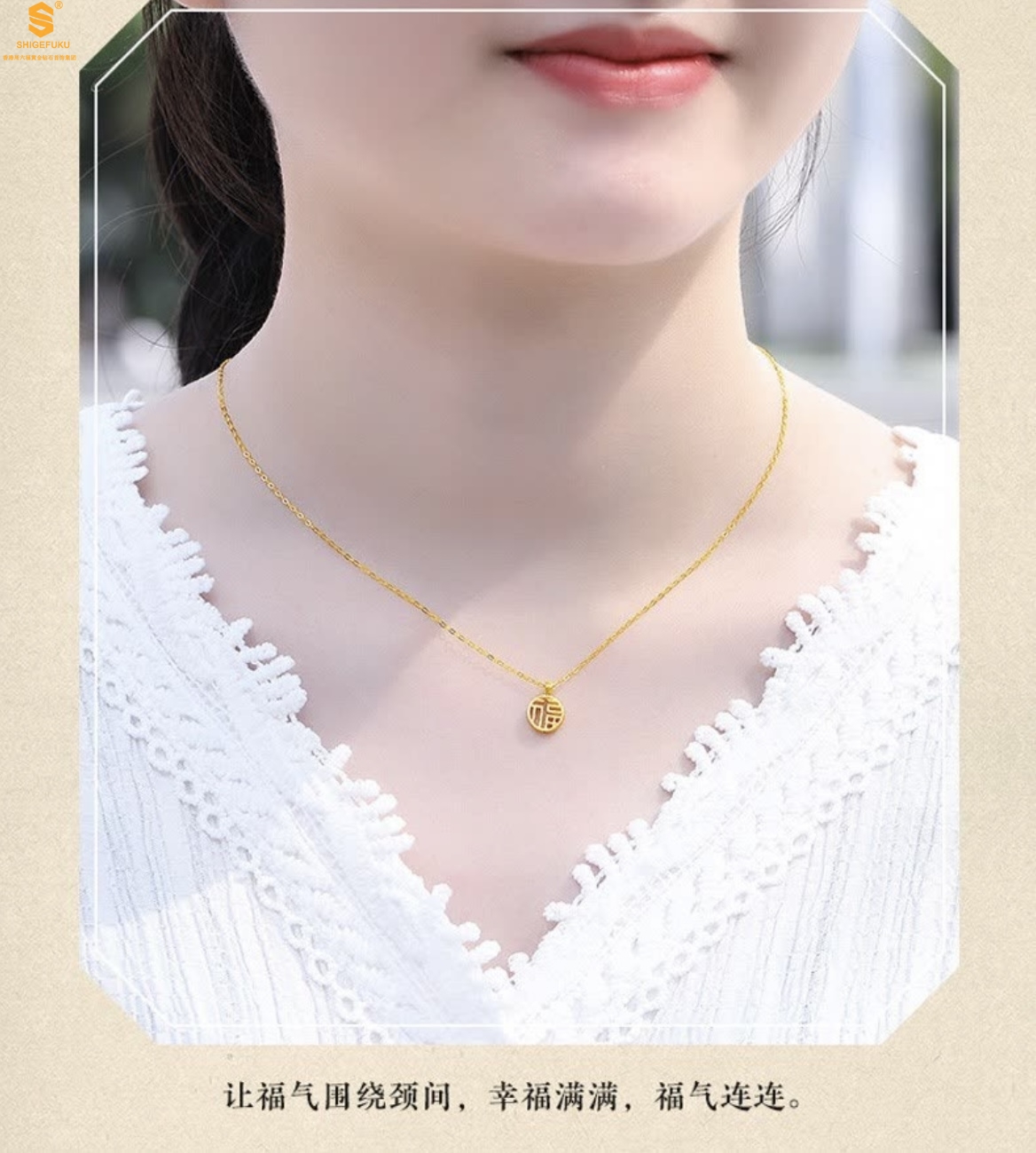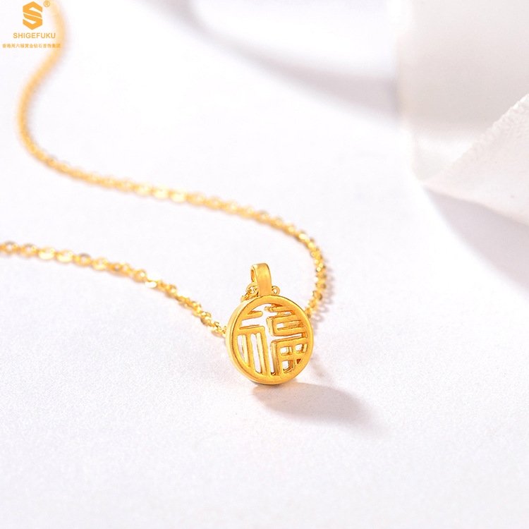 【品名】足金内嵌足银-镂空福牌吊坠(附赠K金项链)