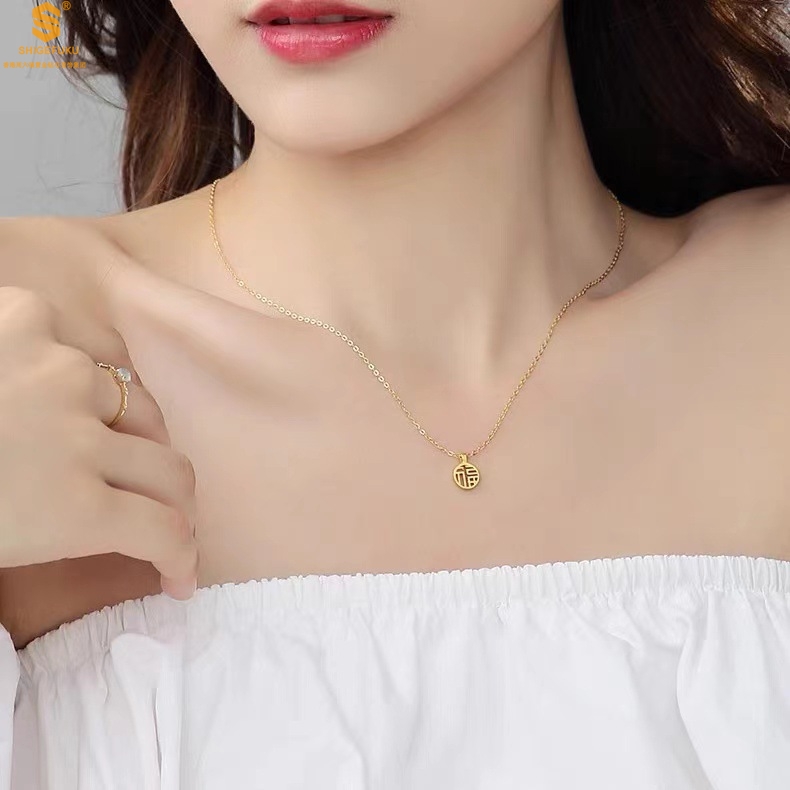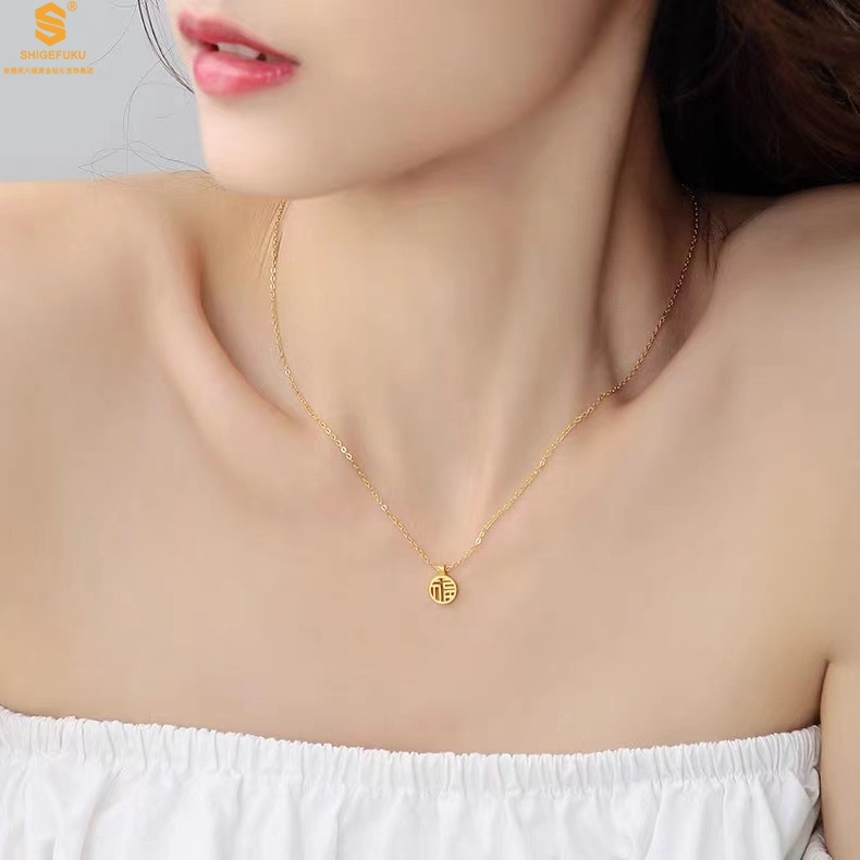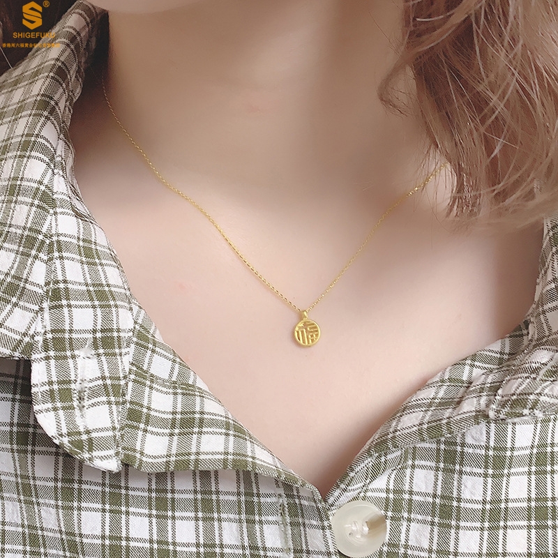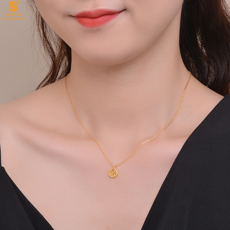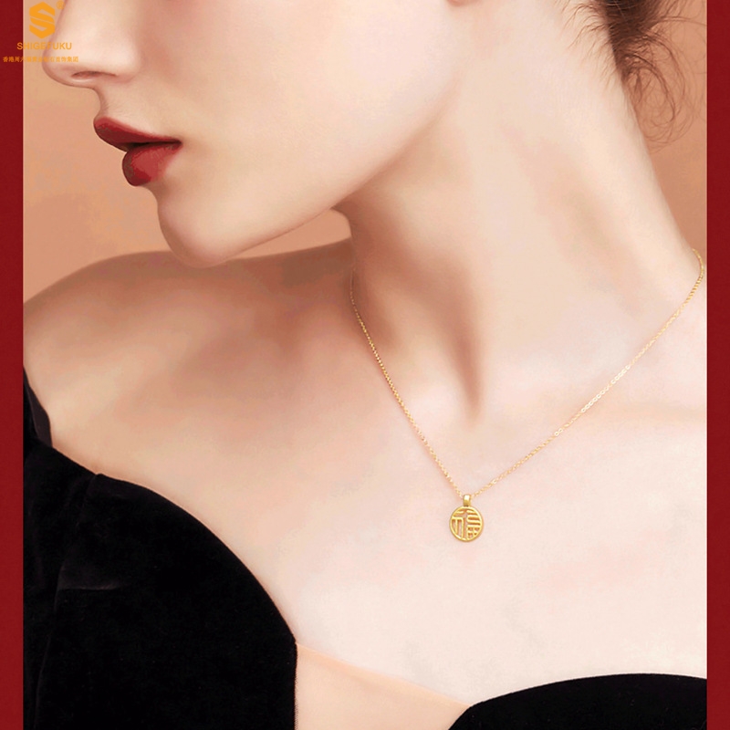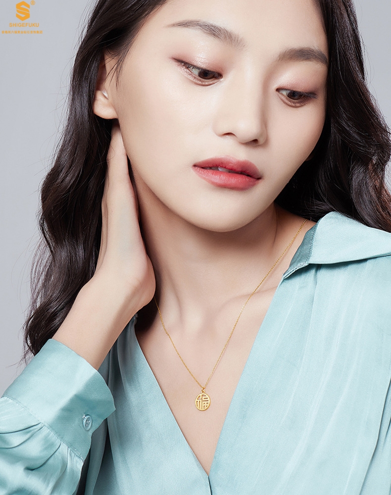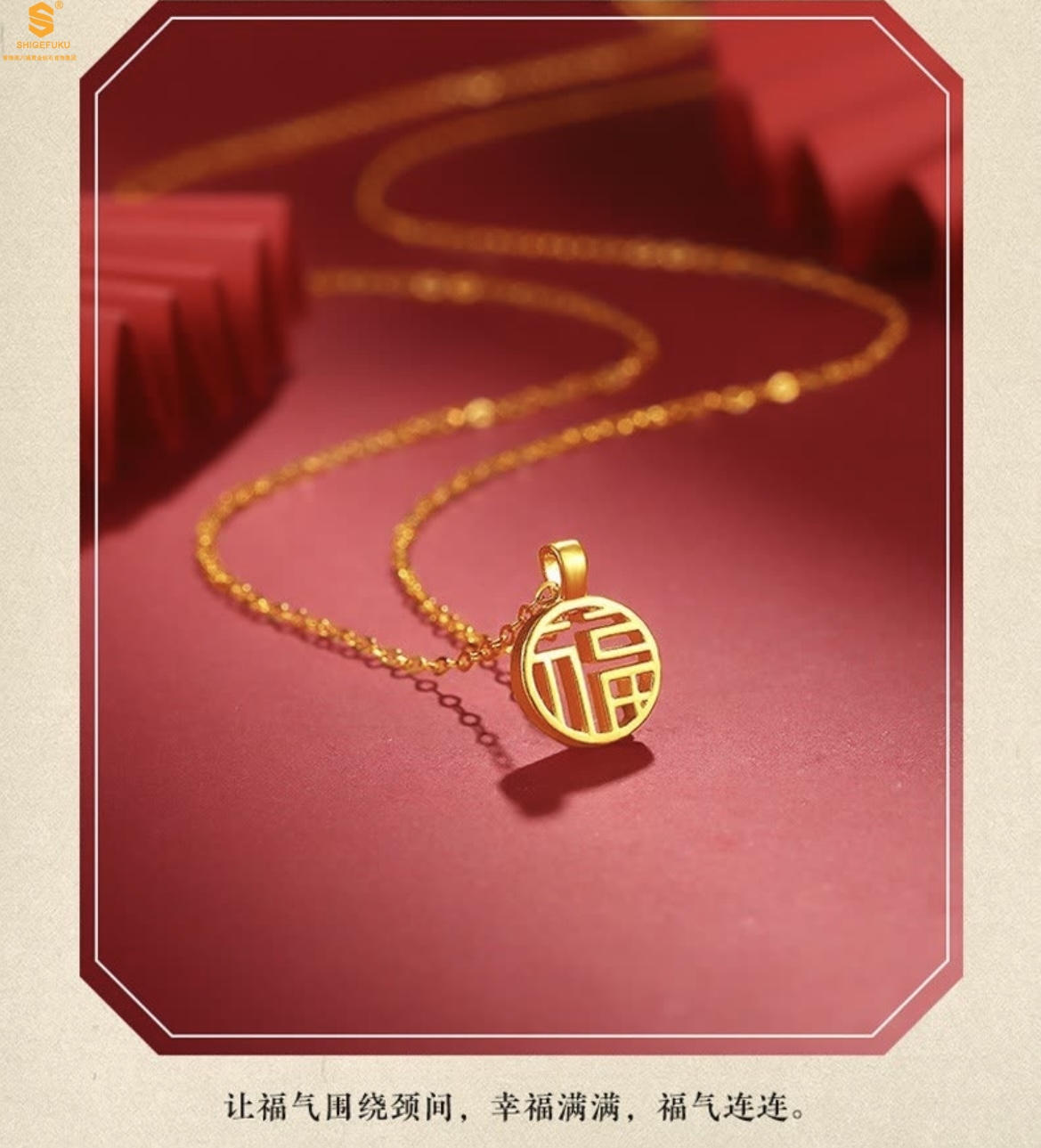 【品名】足金内嵌足银-镂空福牌吊坠(附赠K金项链)