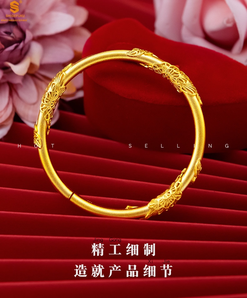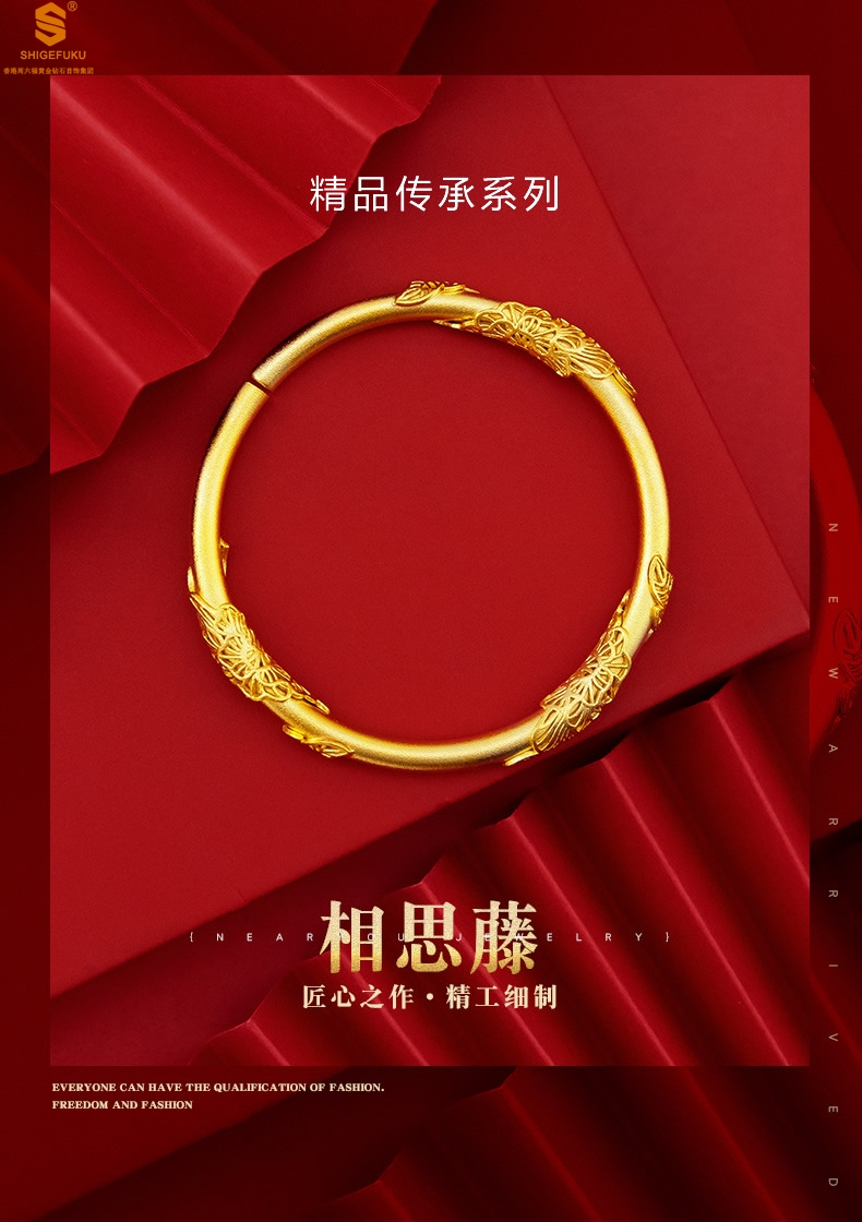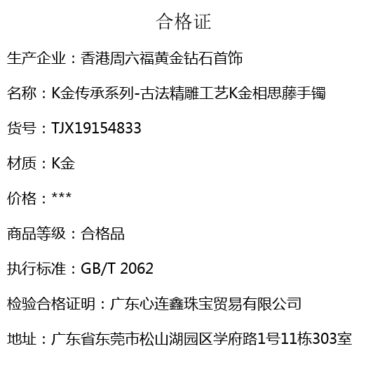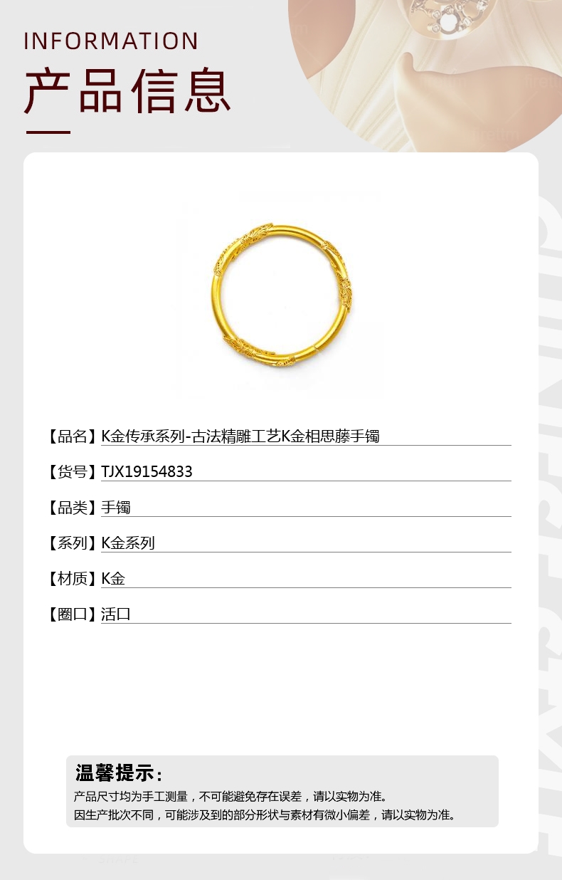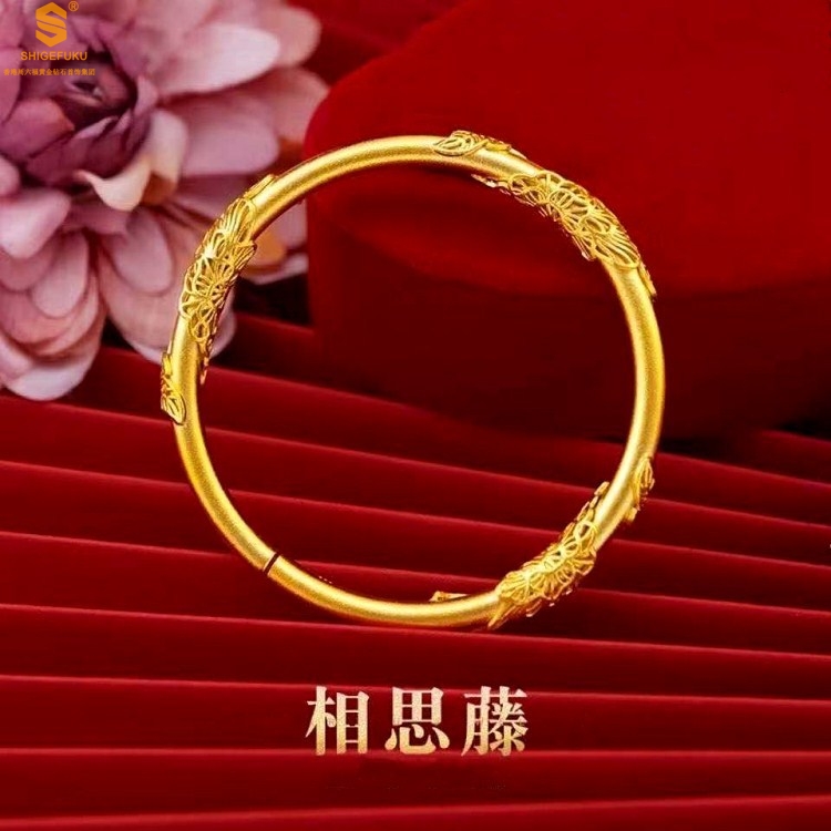 【品名】K金传承系列-古法精雕工艺K金相思藤手镯