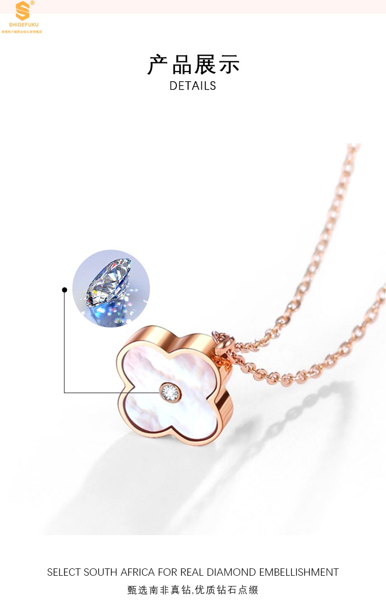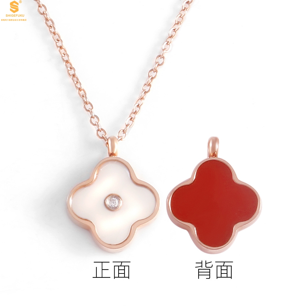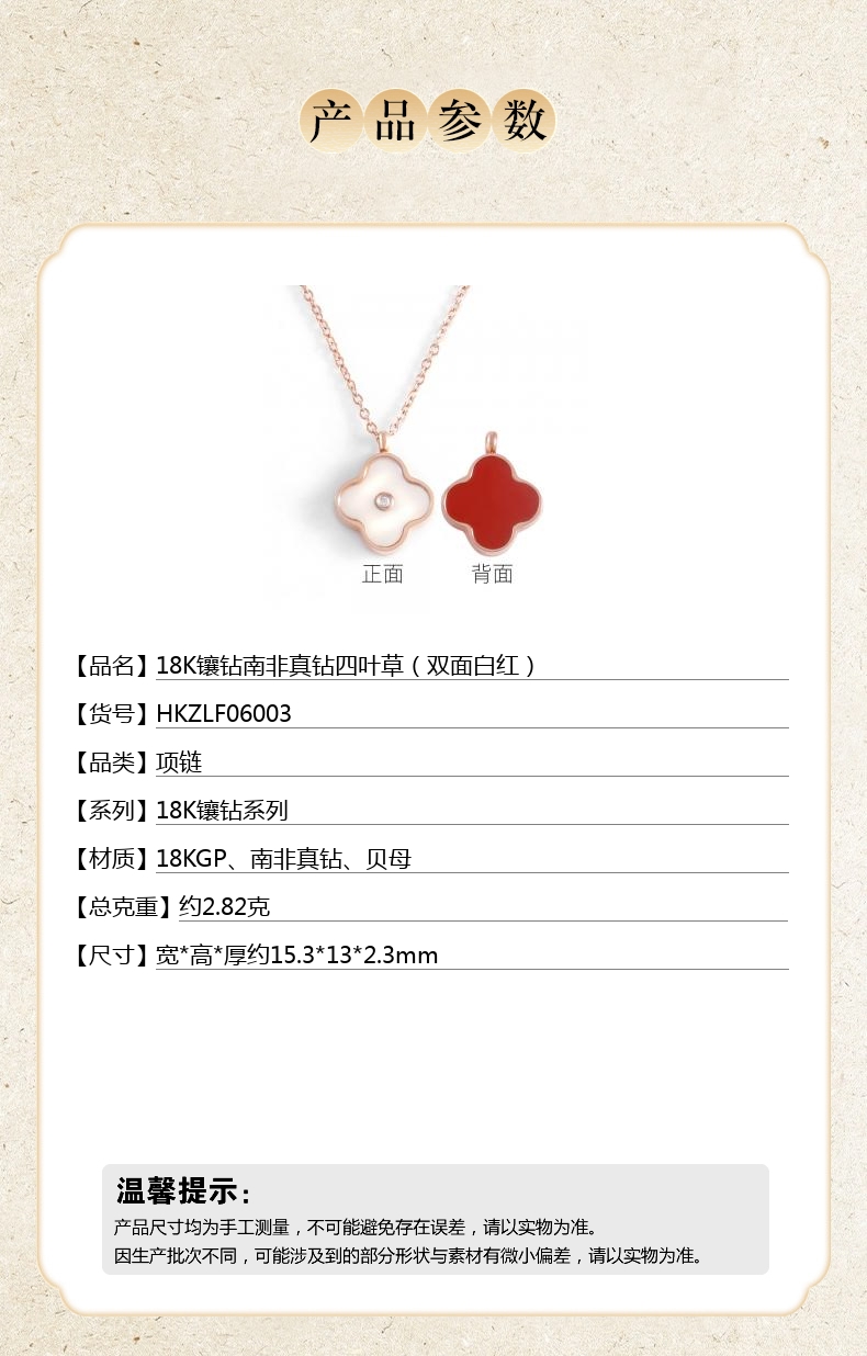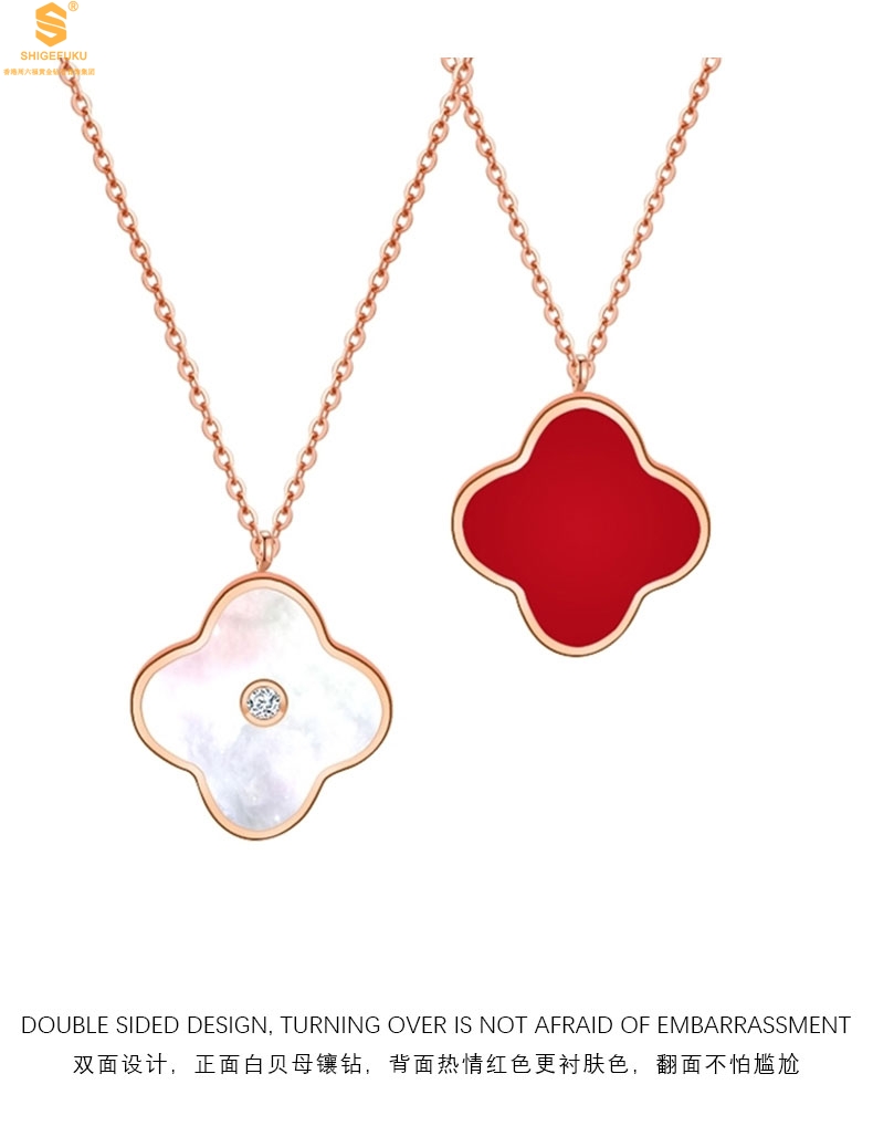 【品名】18K镶钻南非真钻四叶草(双面白红)