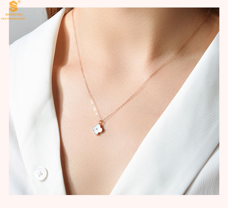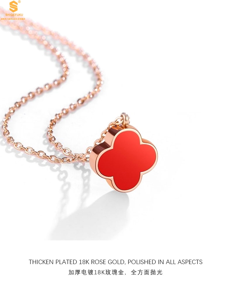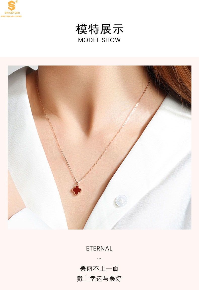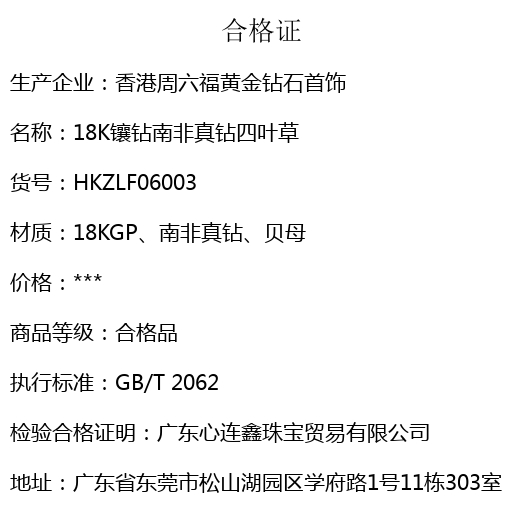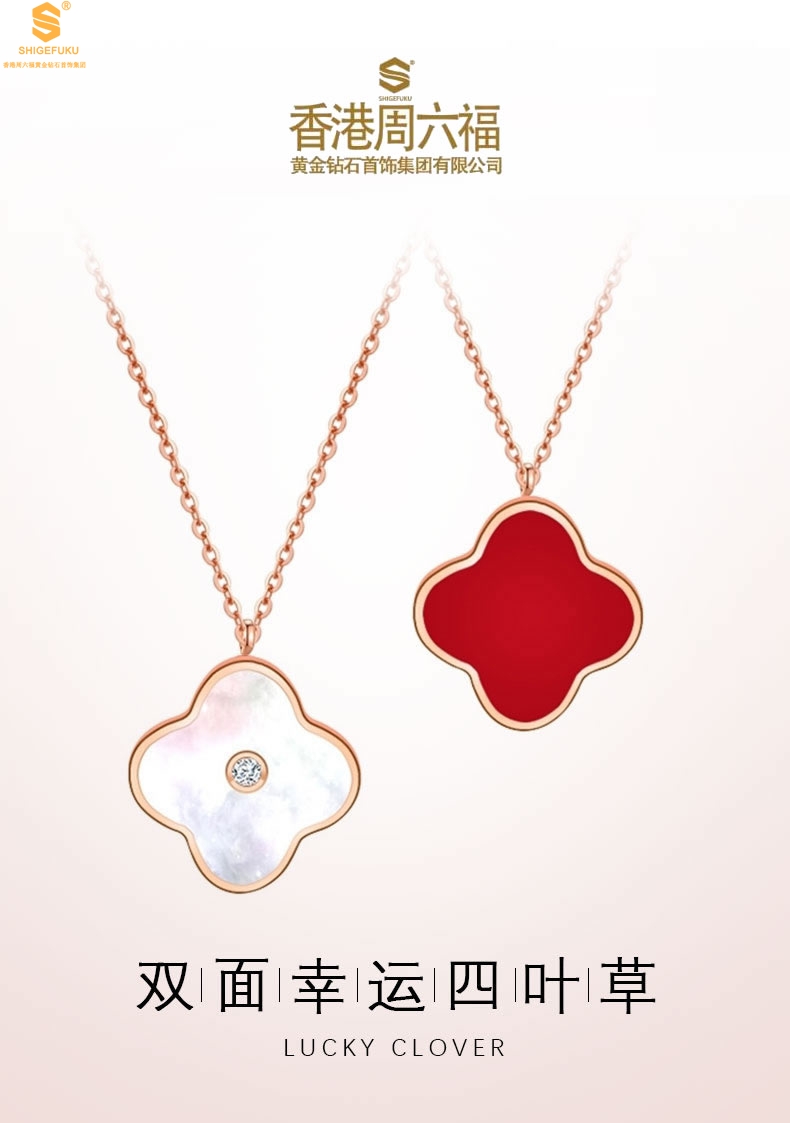 【品名】18K镶钻南非真钻四叶草(双面白红)