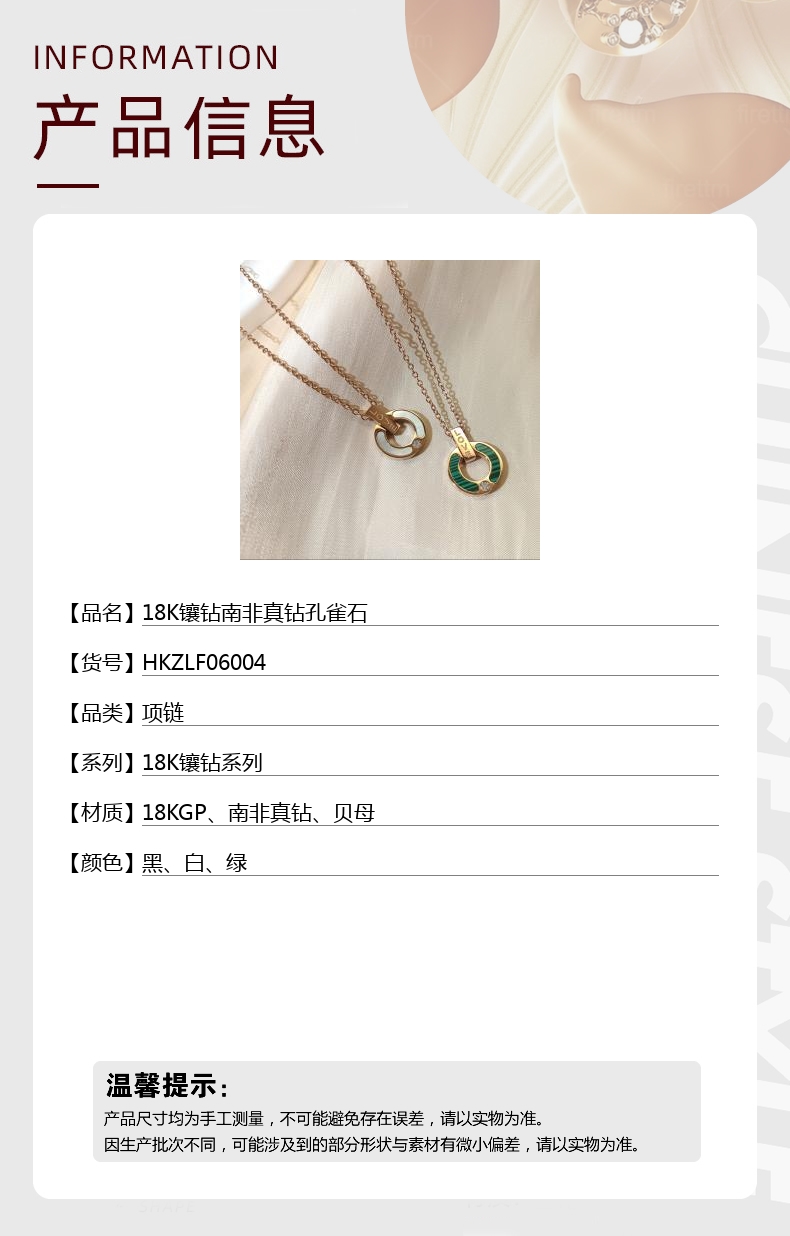 【材质】18KGP、南非真钻、贝母