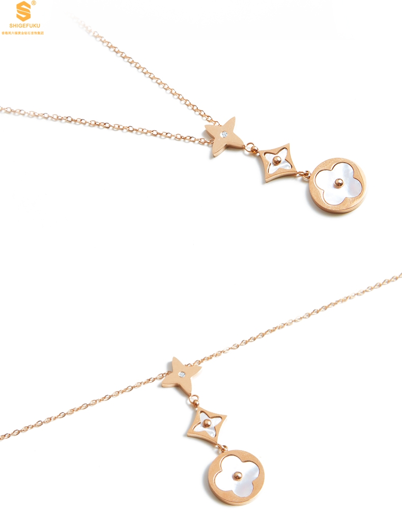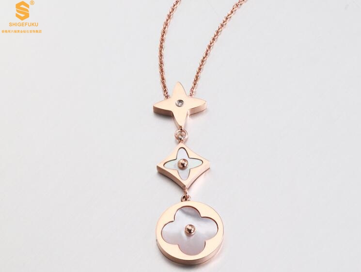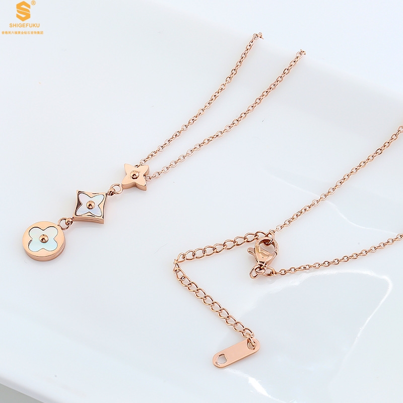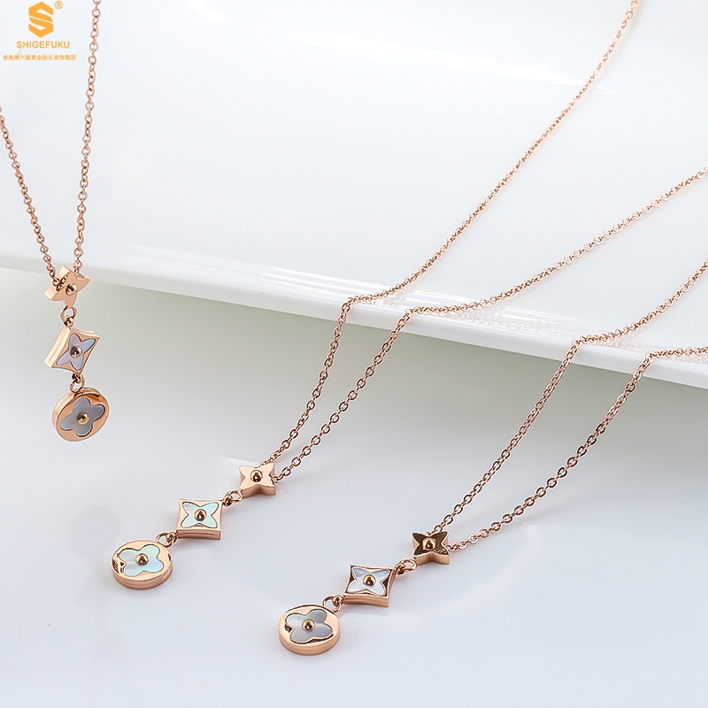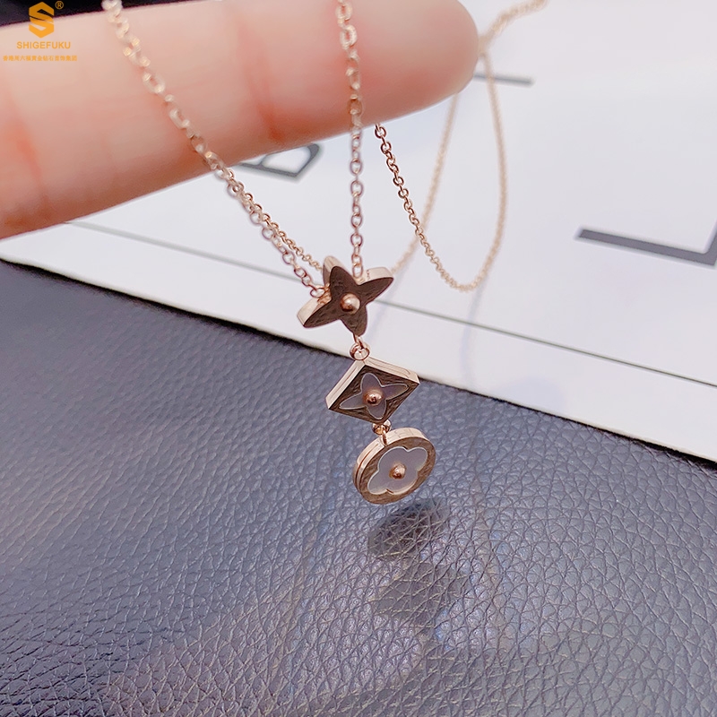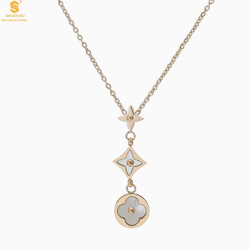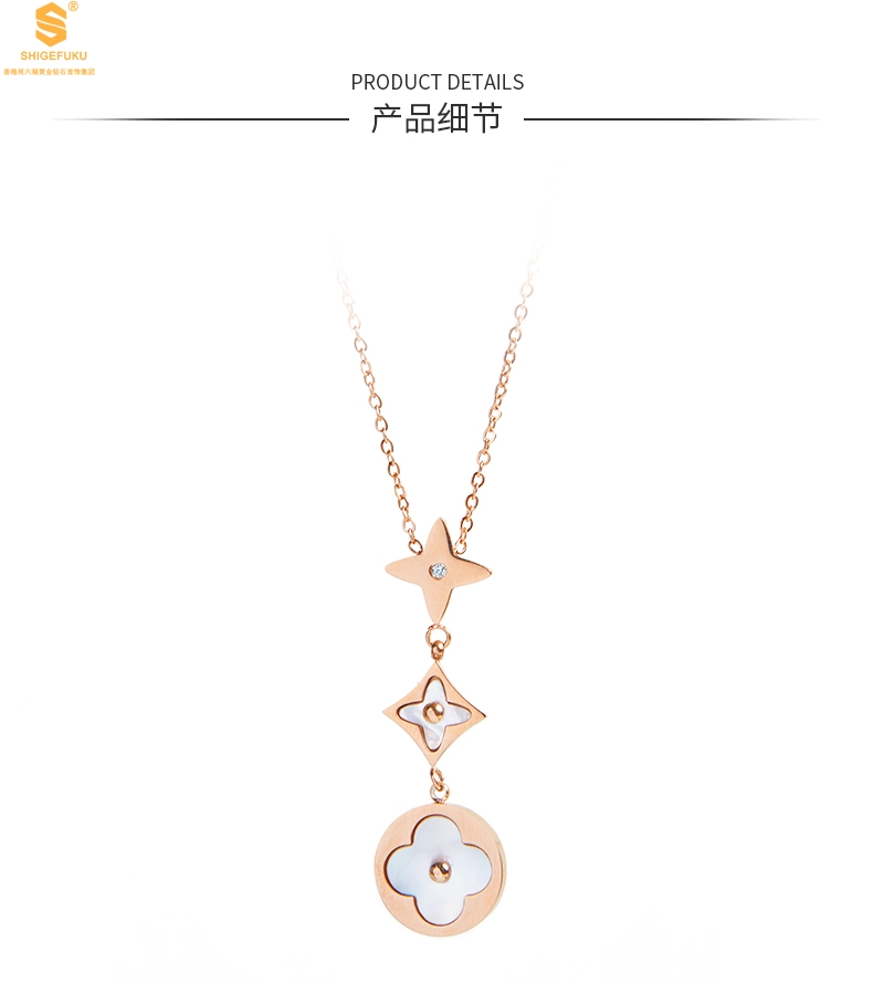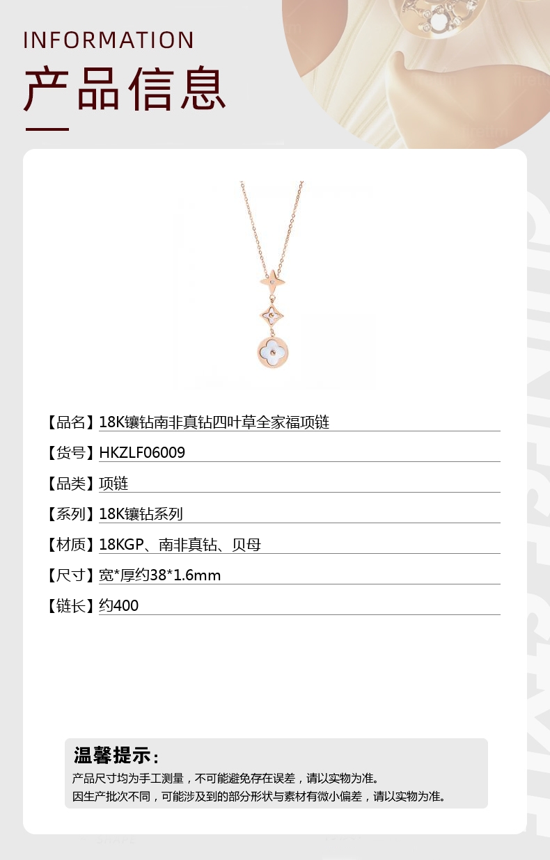 【品名】18K镶钻南非真钻四叶草全家福项链