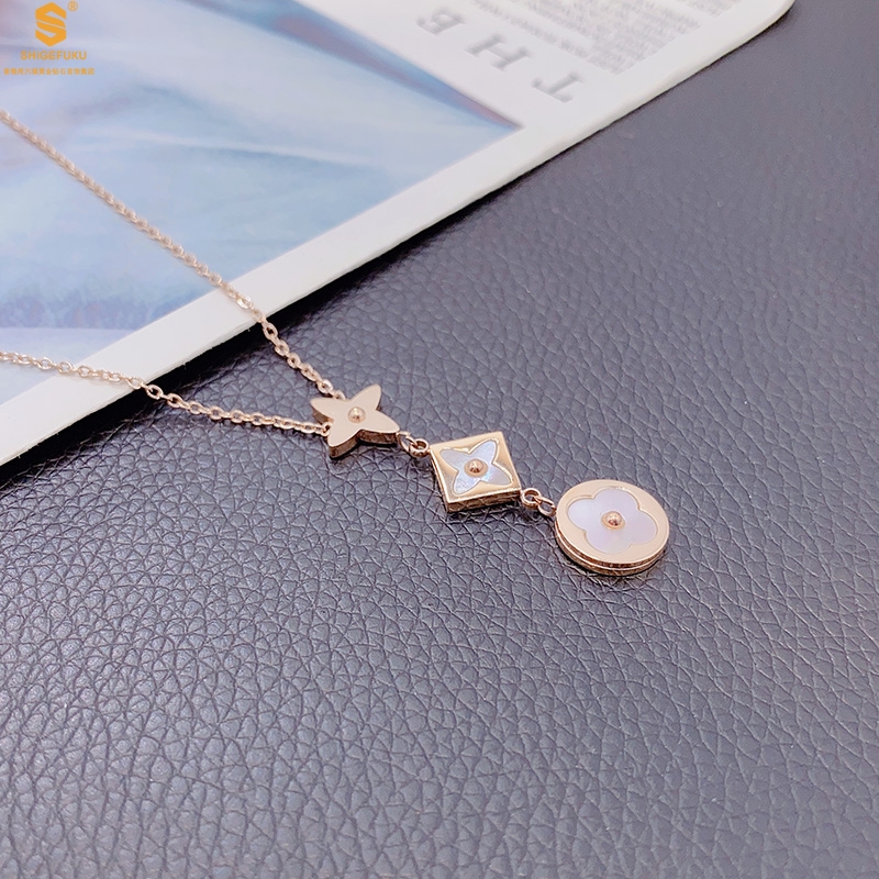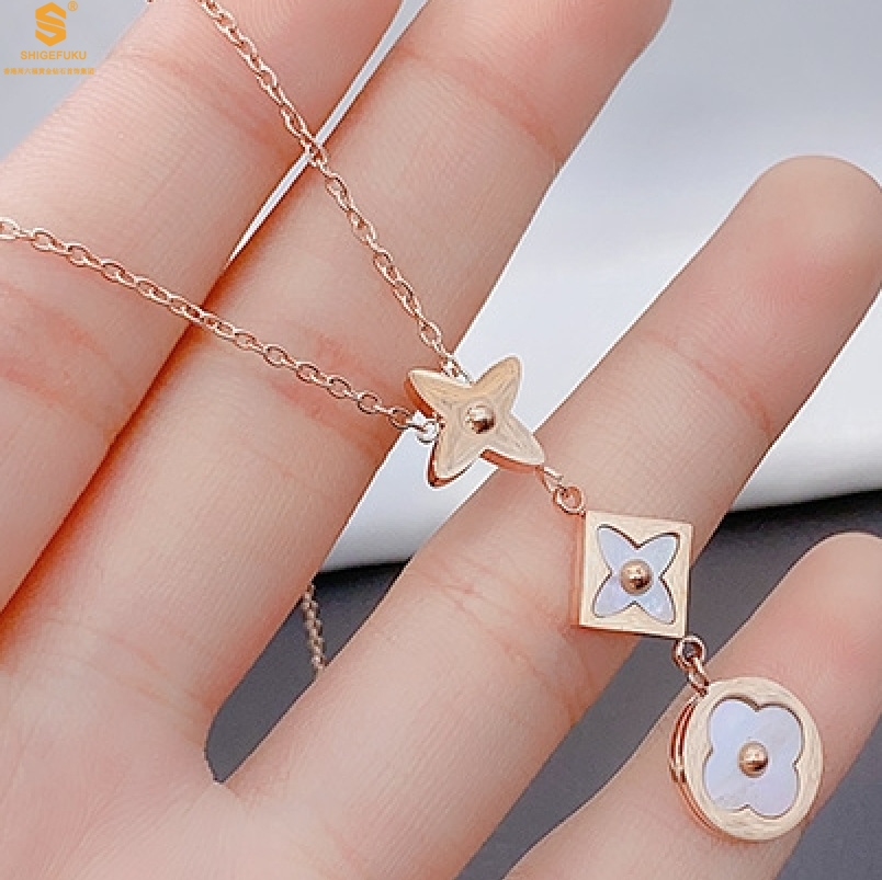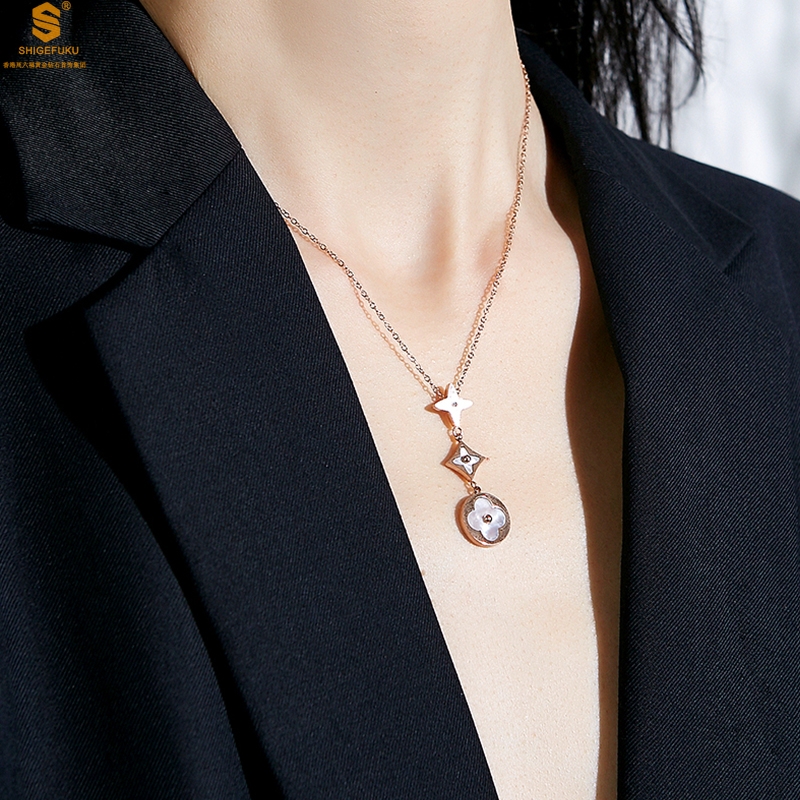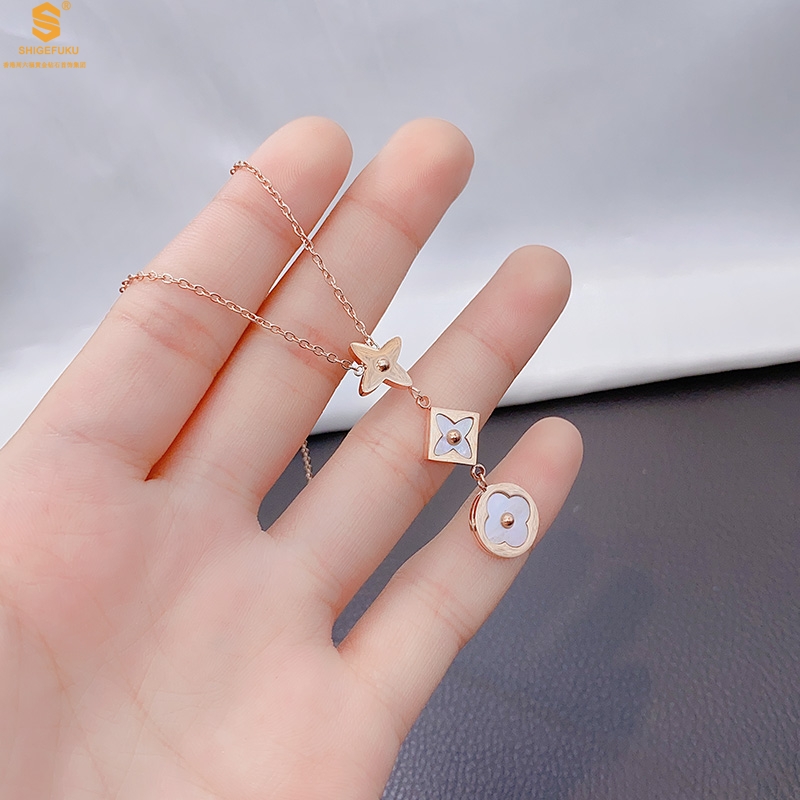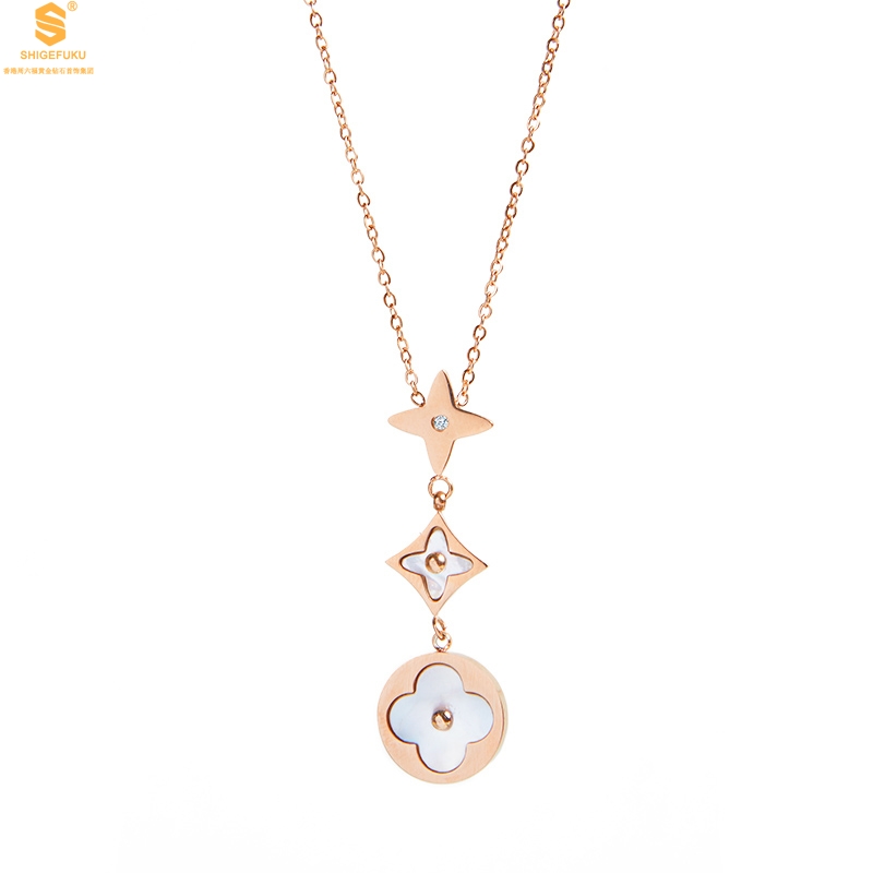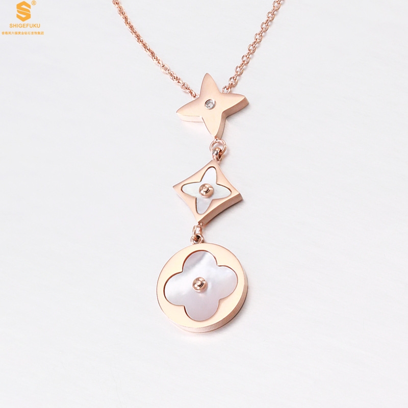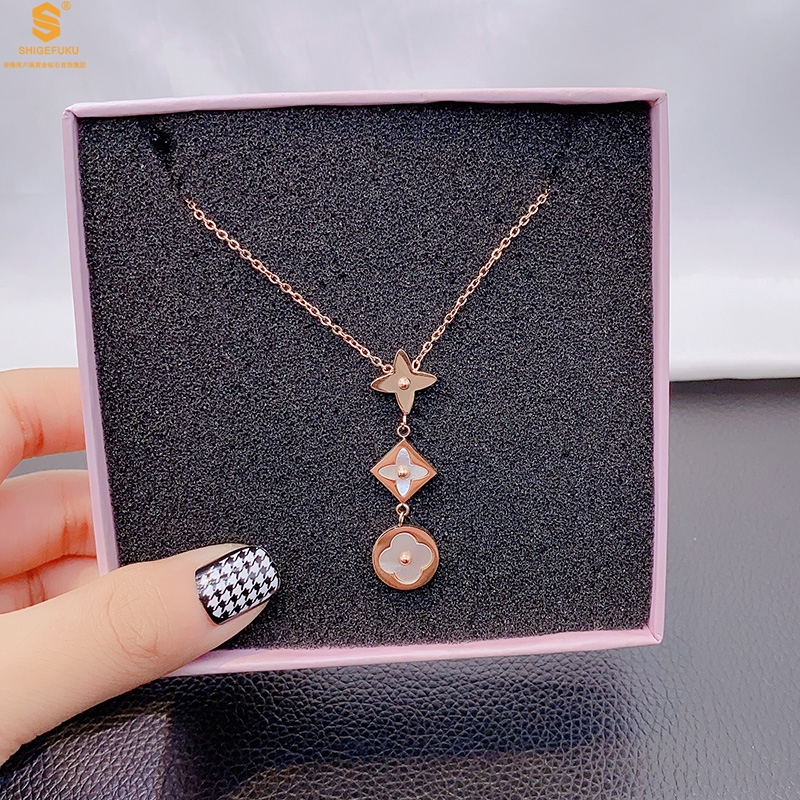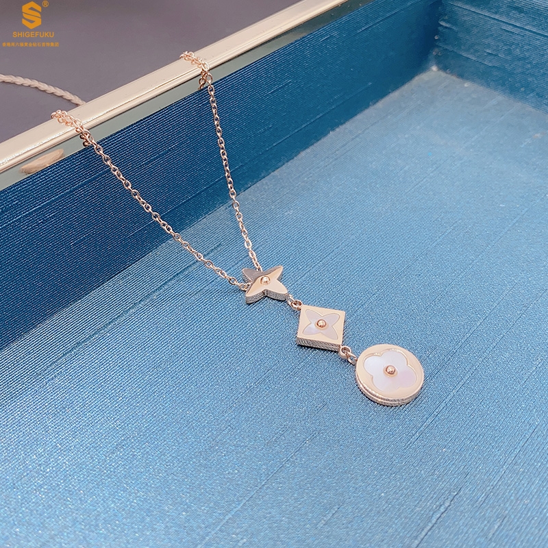【品名】18K镶钻南非真钻四叶草全家福项链