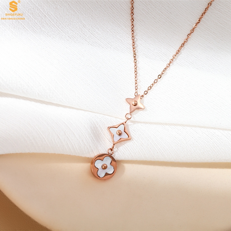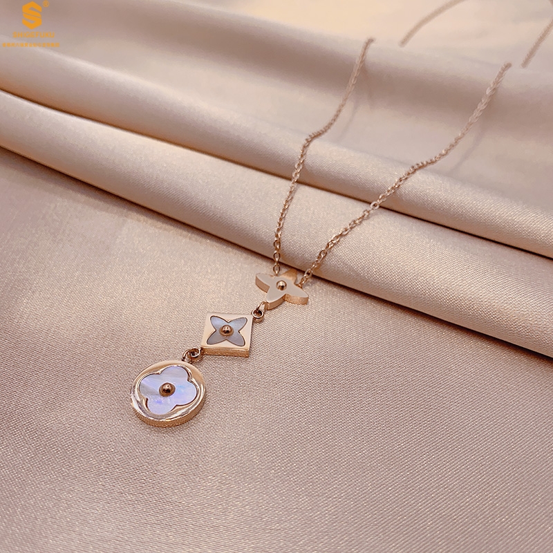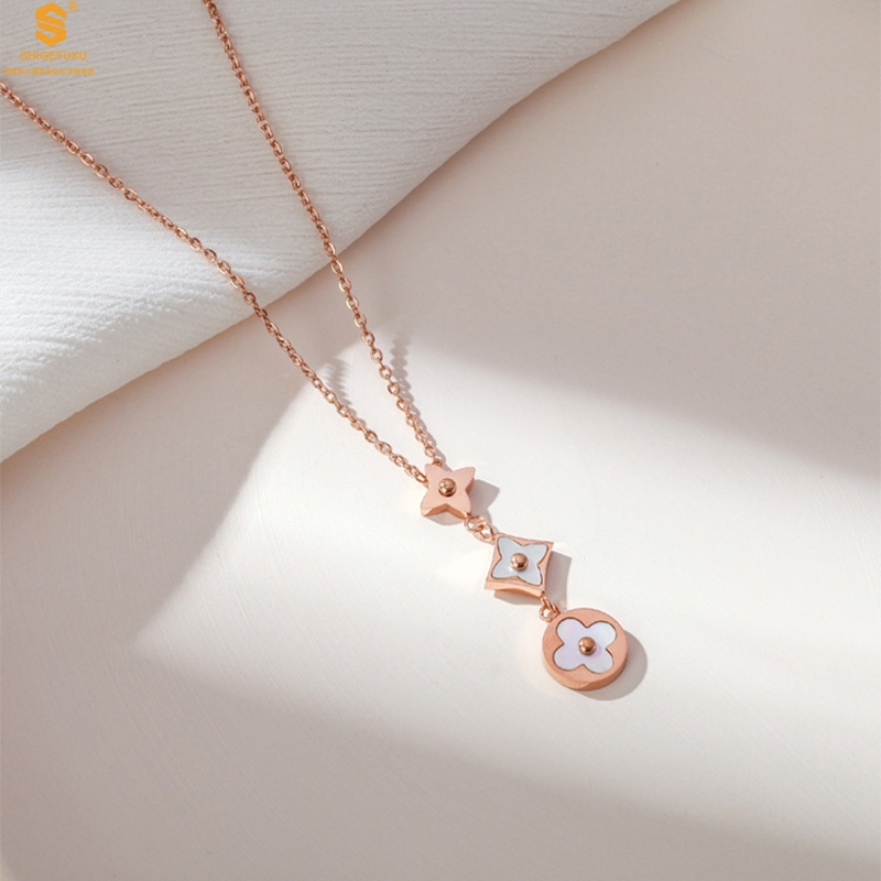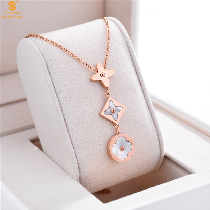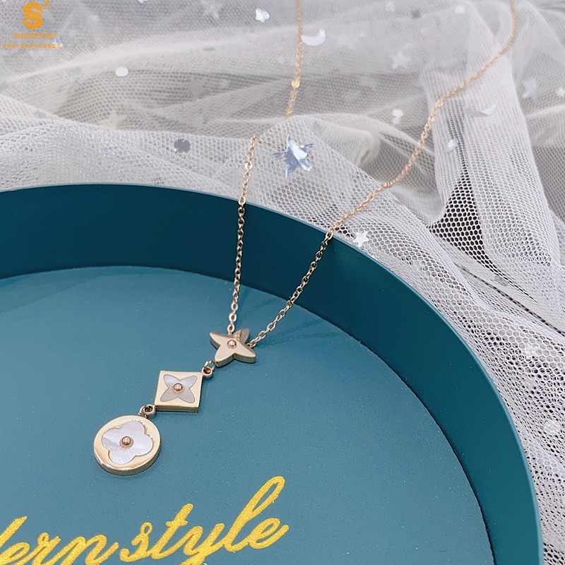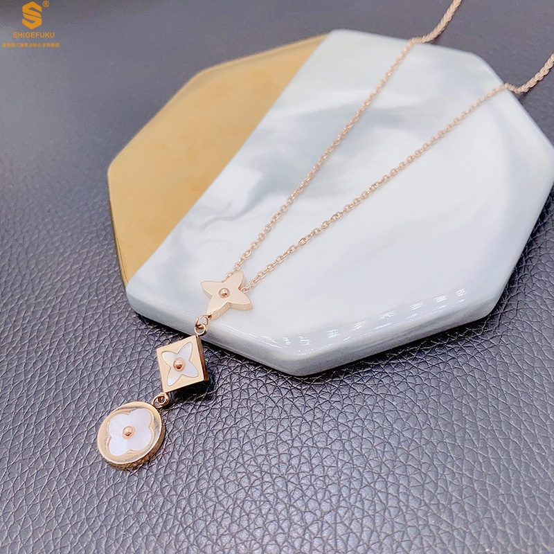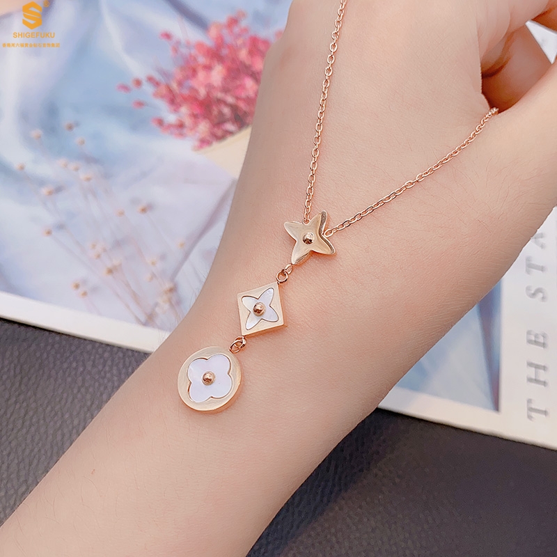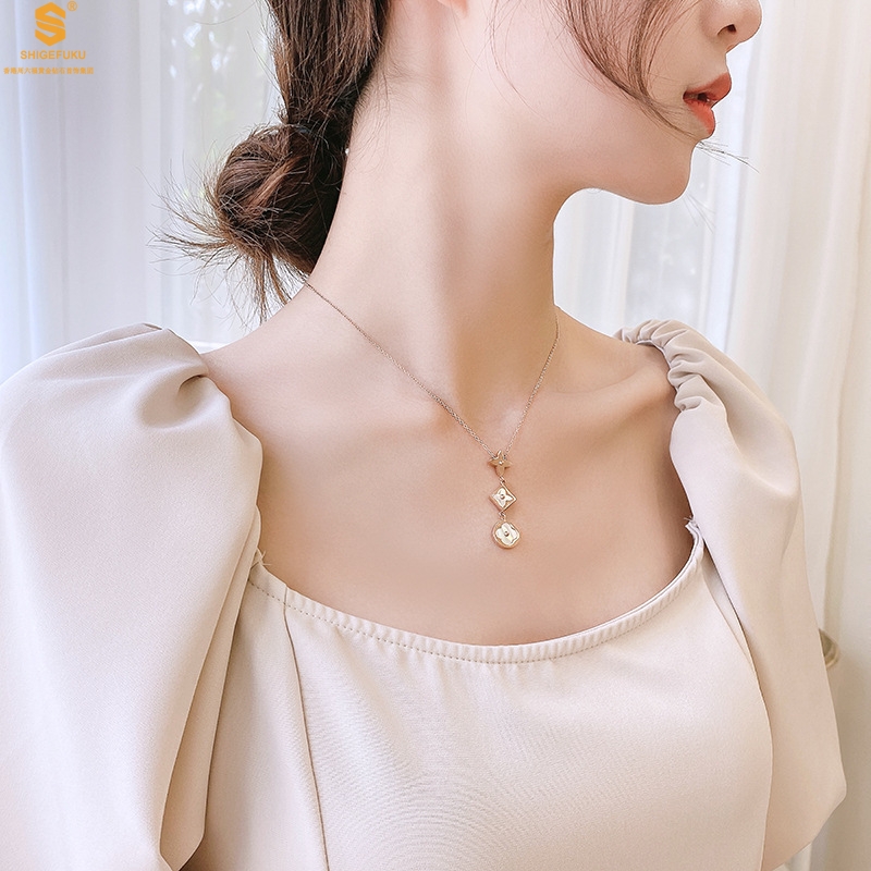 【品名】18K镶钻南非真钻四叶草全家福项链