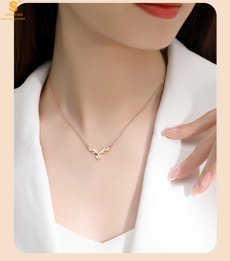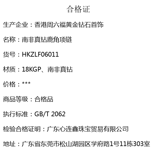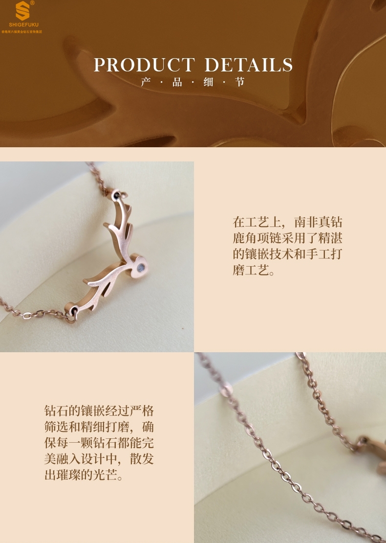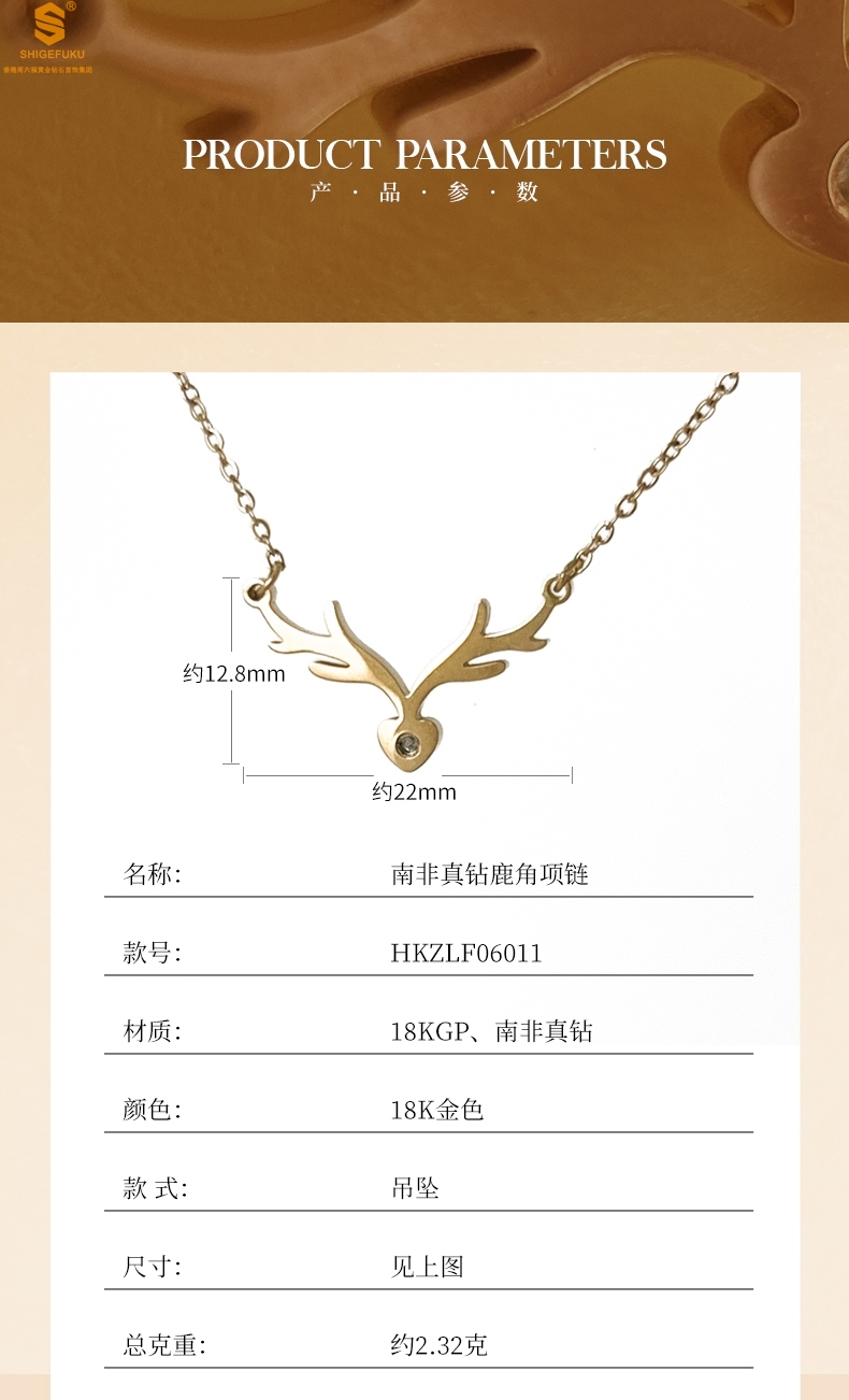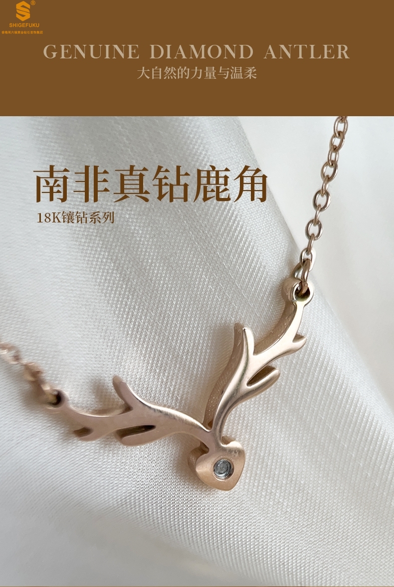 【品名】南非真钻鹿角项链