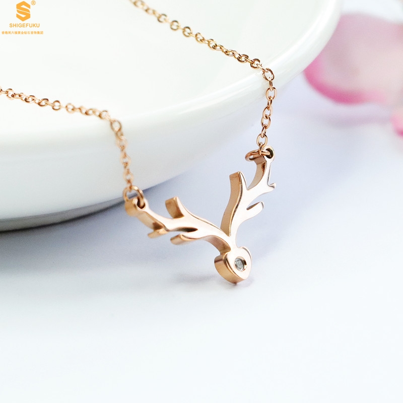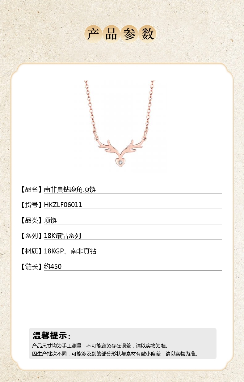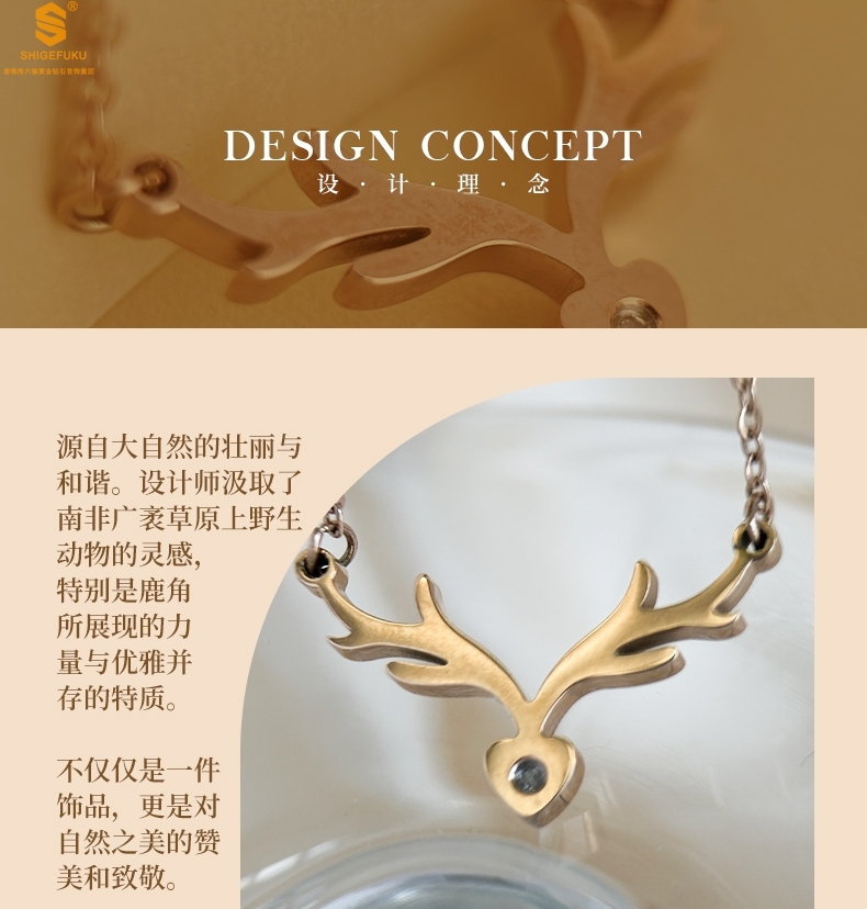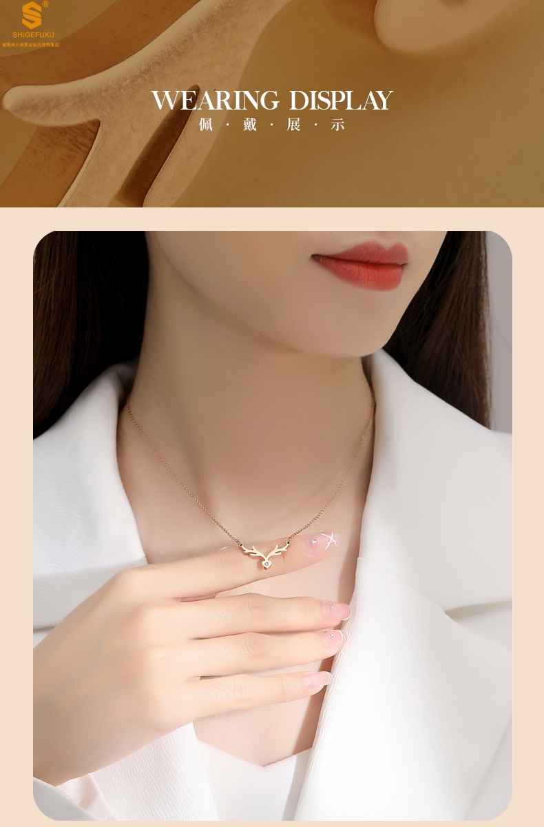 【品名】南非真钻鹿角项链