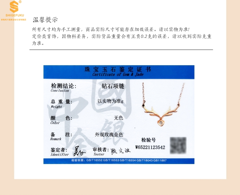 【套装包含】首饰+礼品盒+礼品袋+国检证书+质保单+价签
