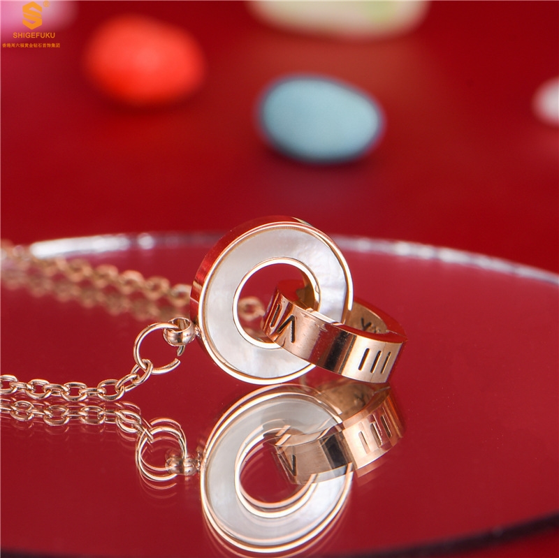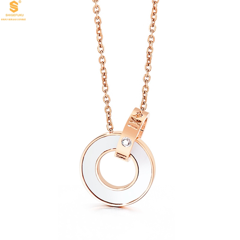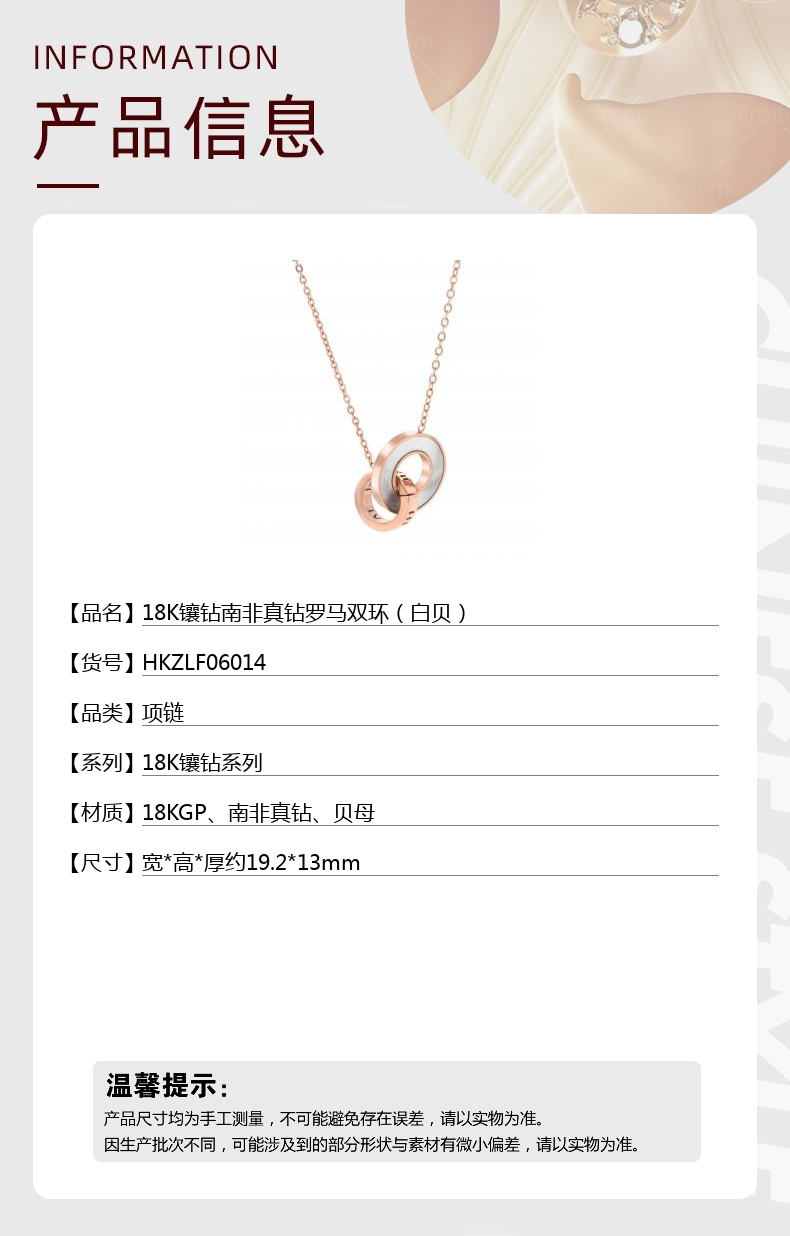 【品名】18K镶钻南非真钻罗马双环(白贝)