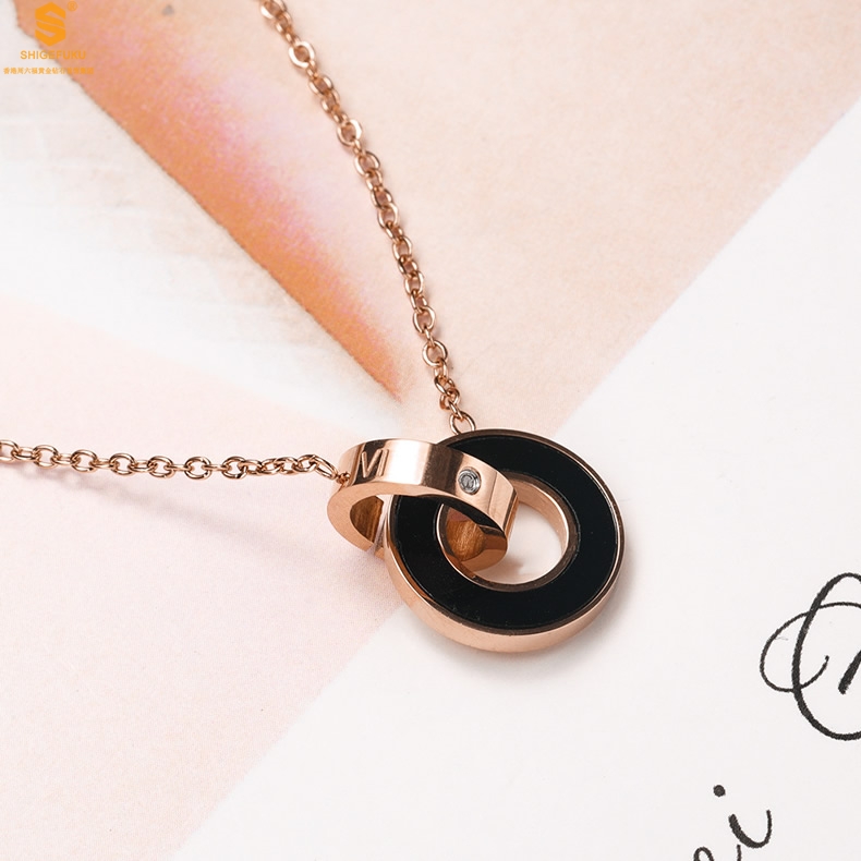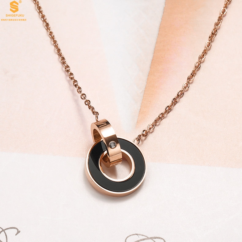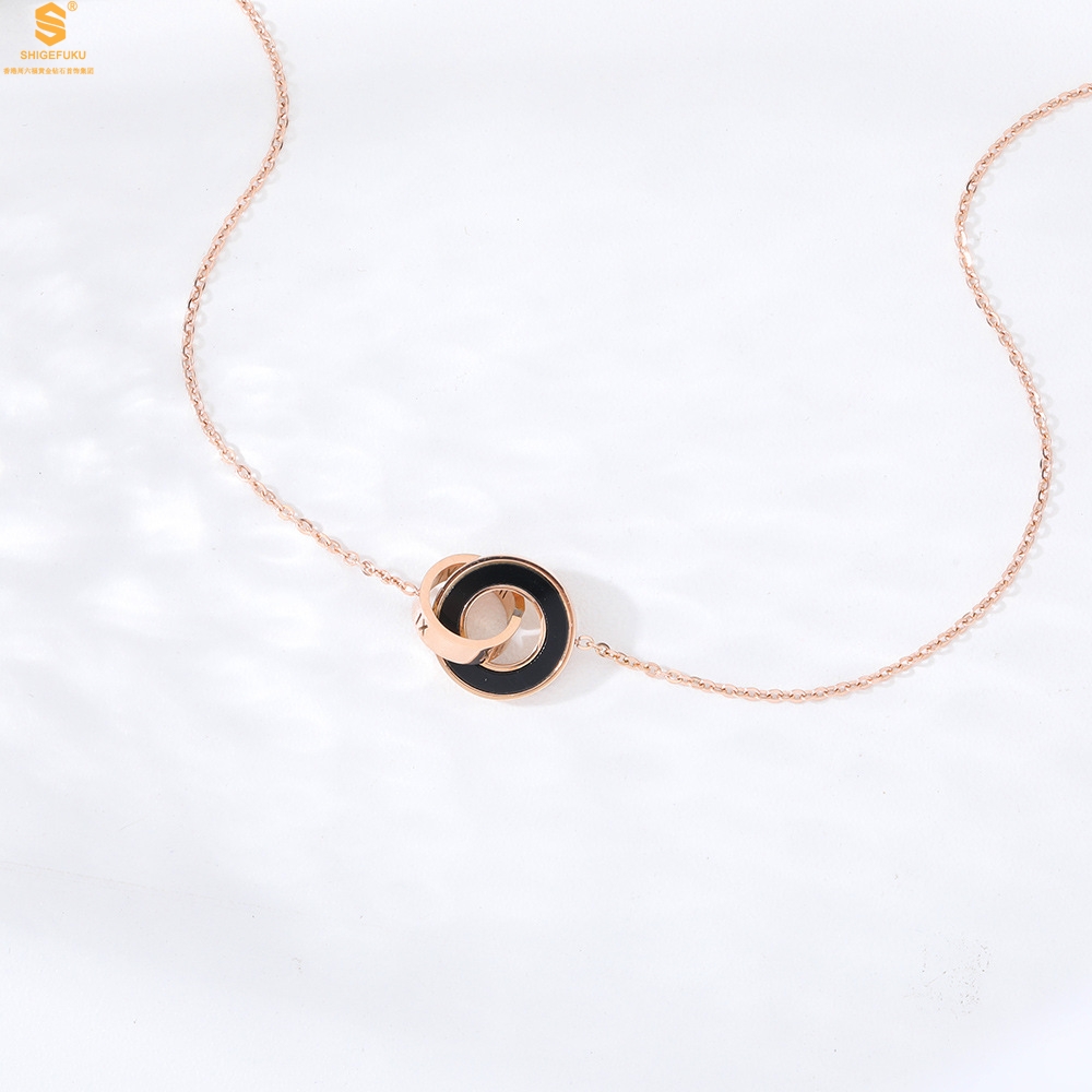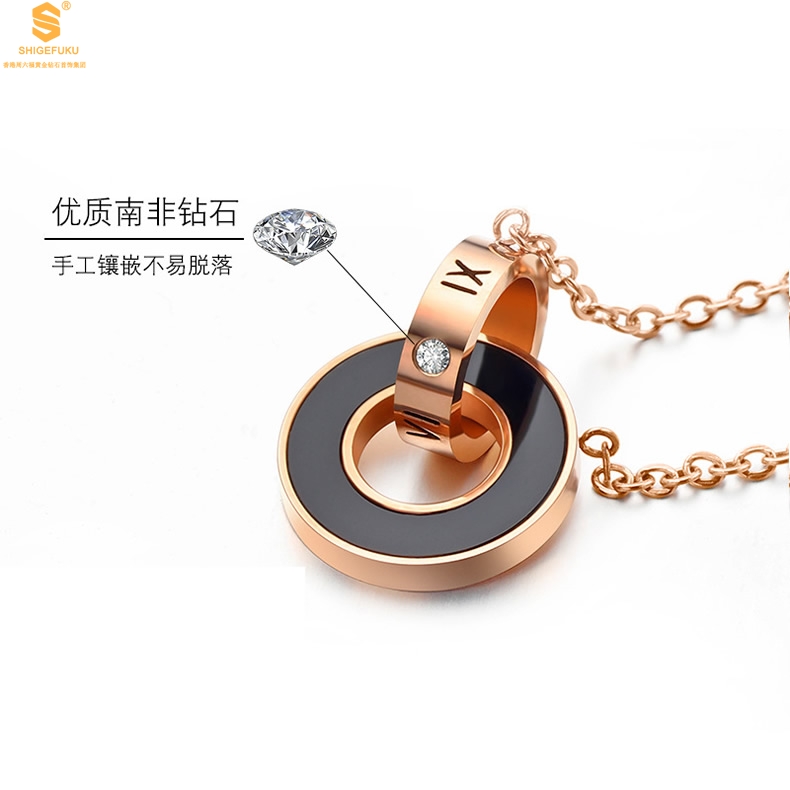 【品名】18K镶钻南非真钻罗马双环(黑贝)