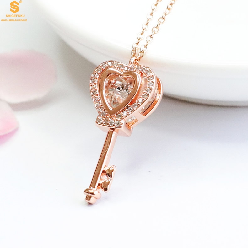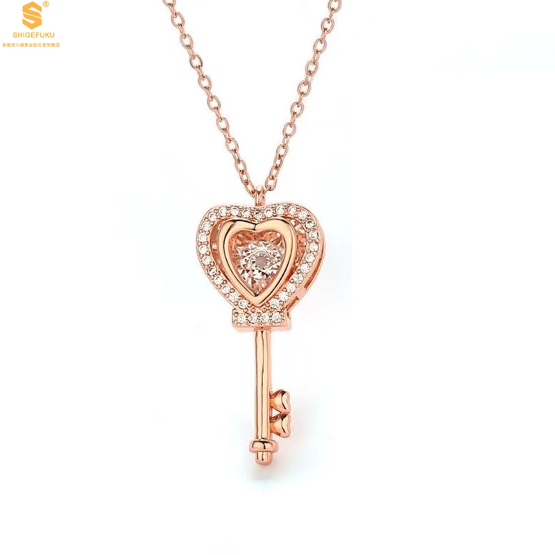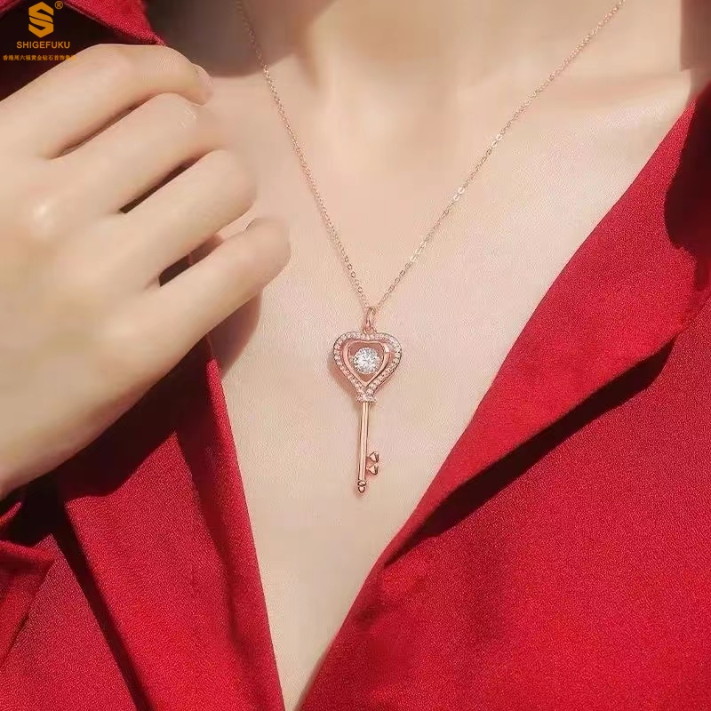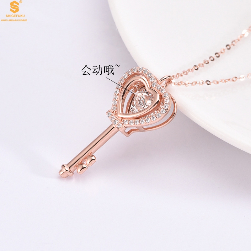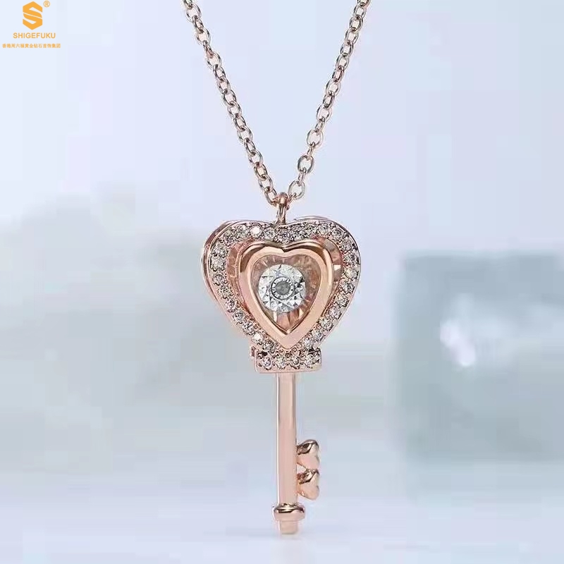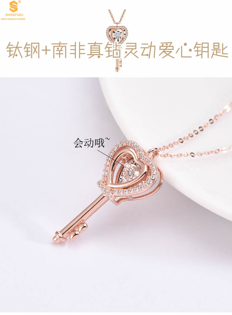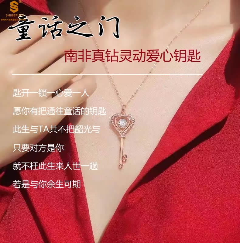 【品名】18K镶钻南非真钻灵动爱心钥匙