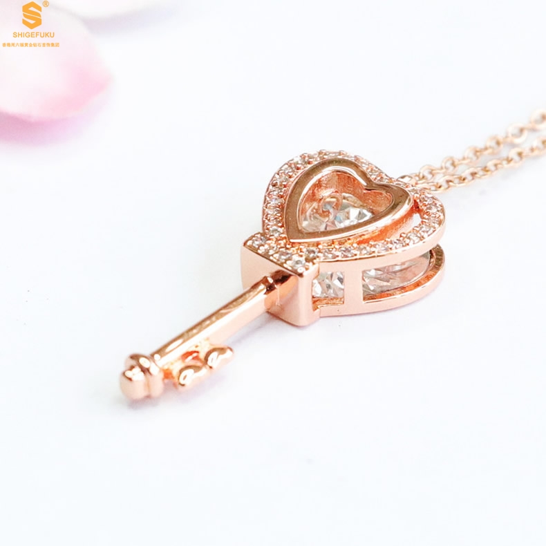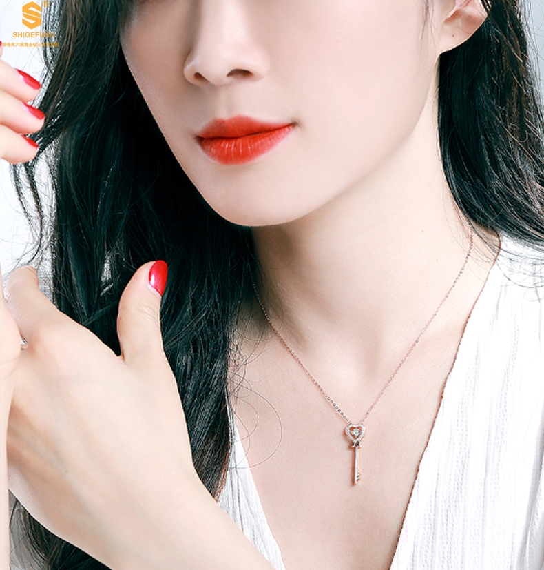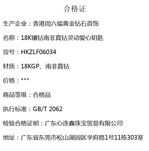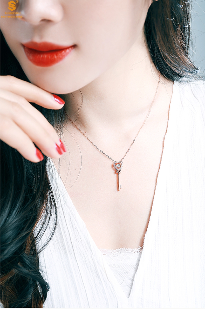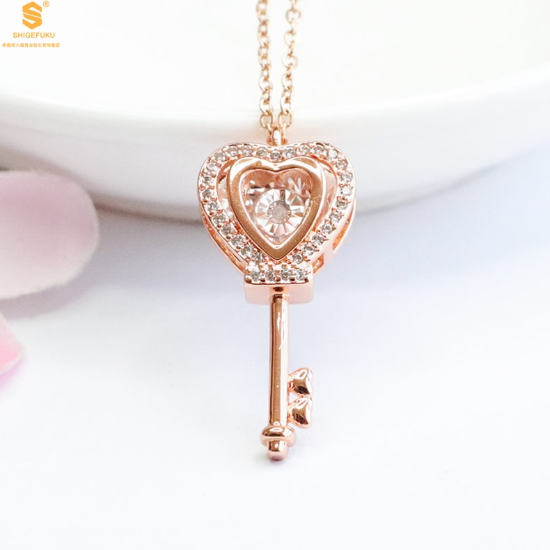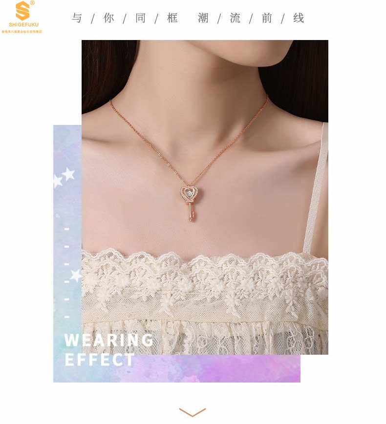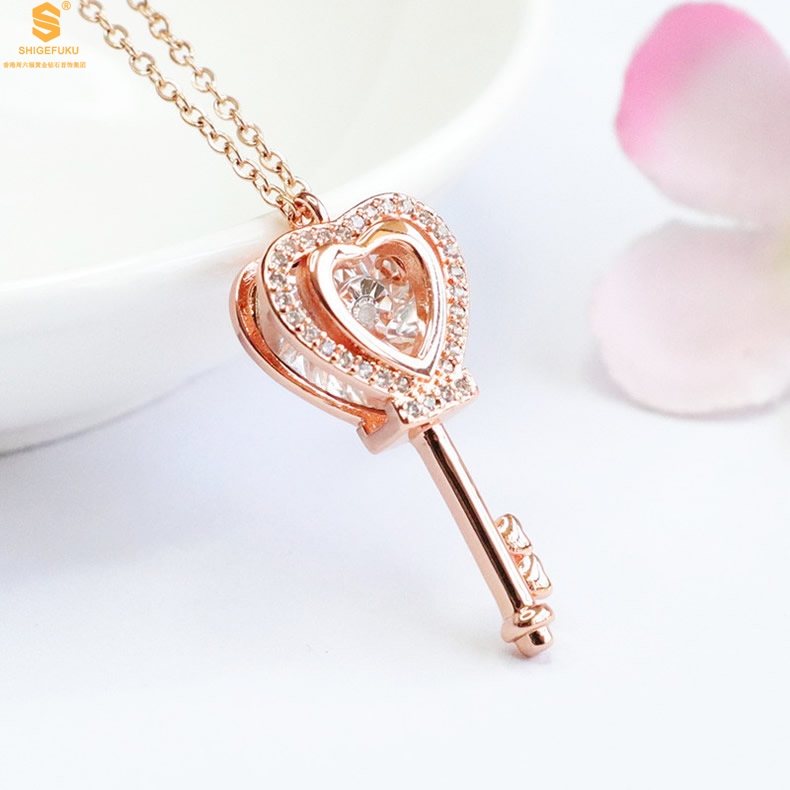 【品名】18K镶钻南非真钻灵动爱心钥匙