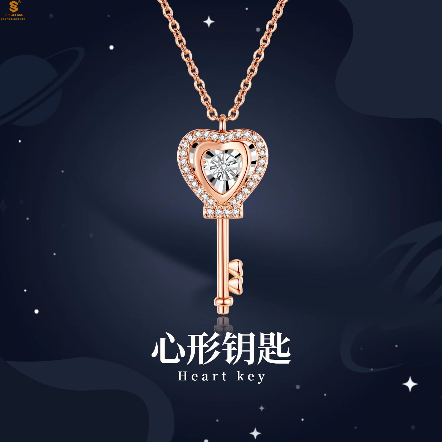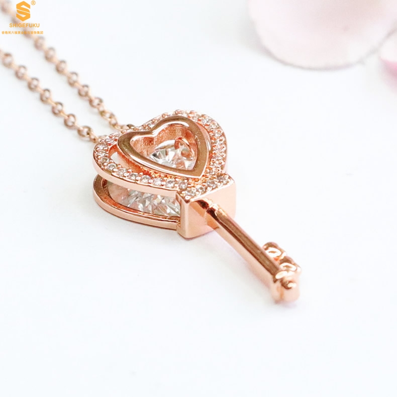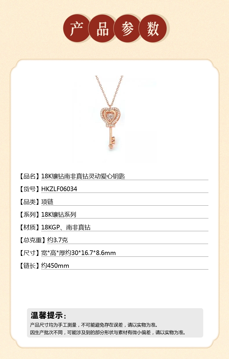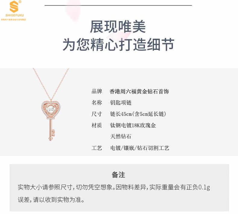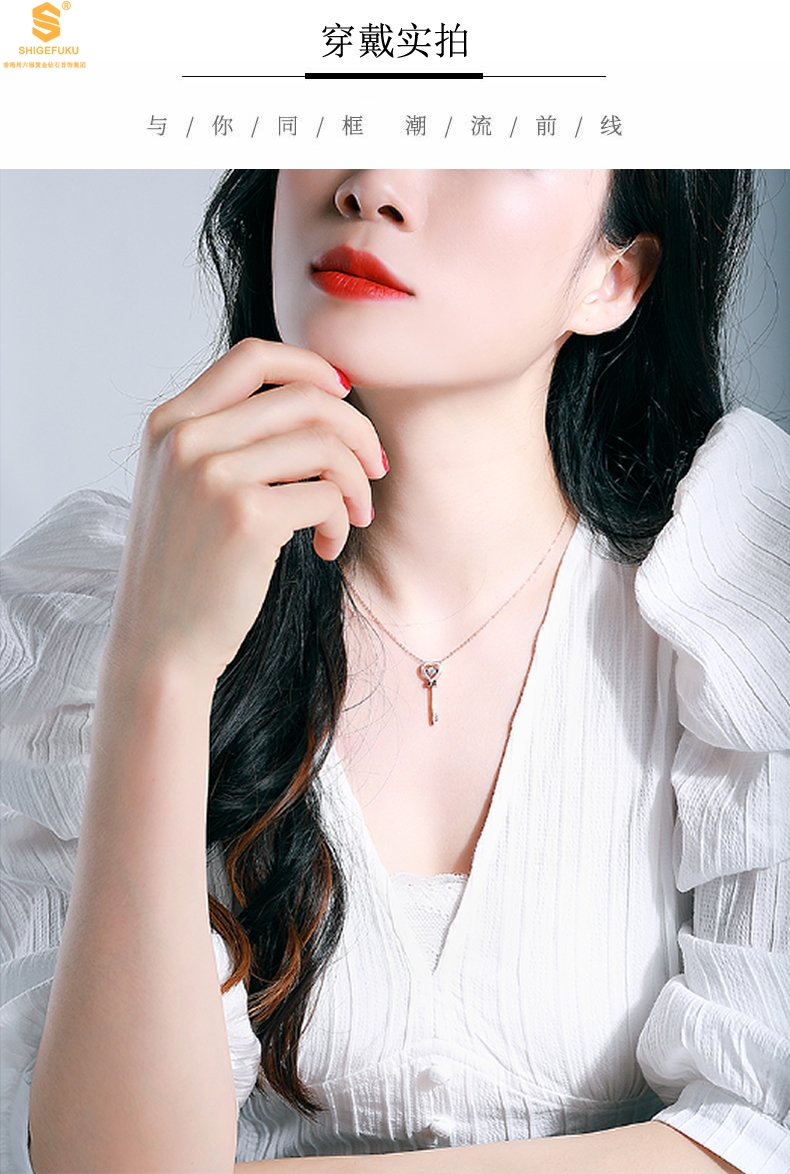 【品名】18K镶钻南非真钻灵动爱心钥匙