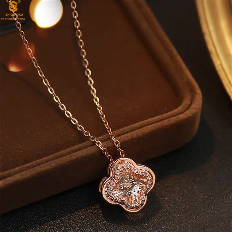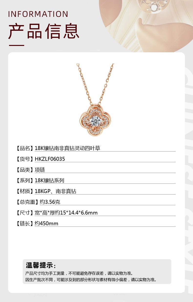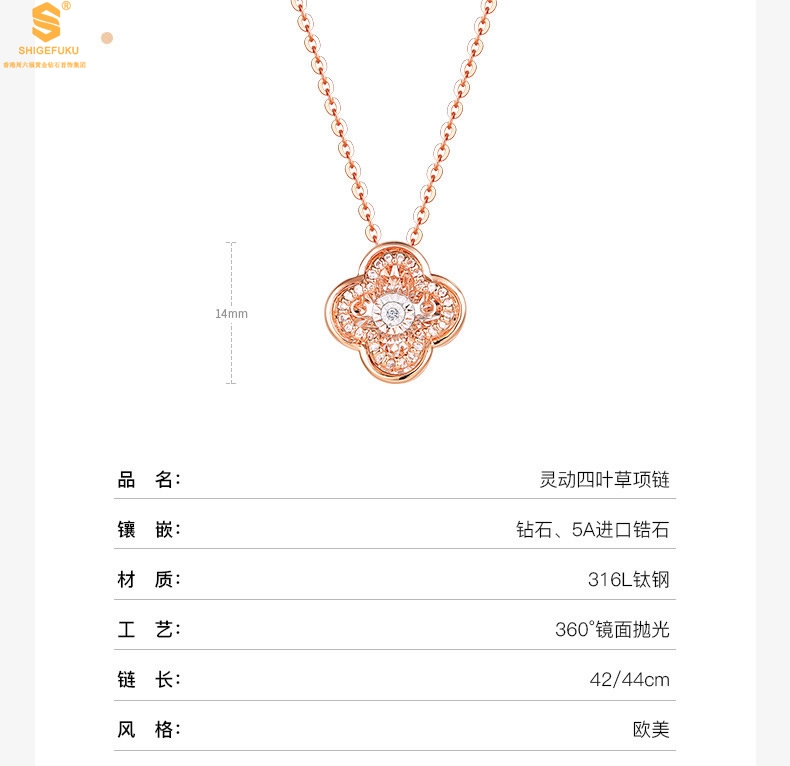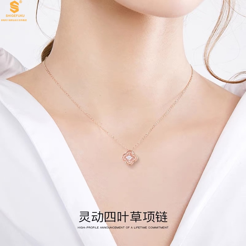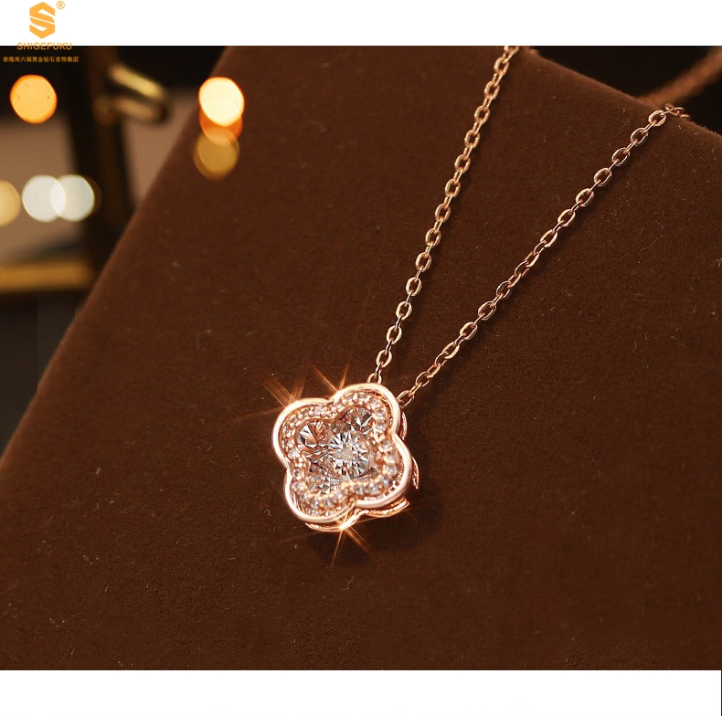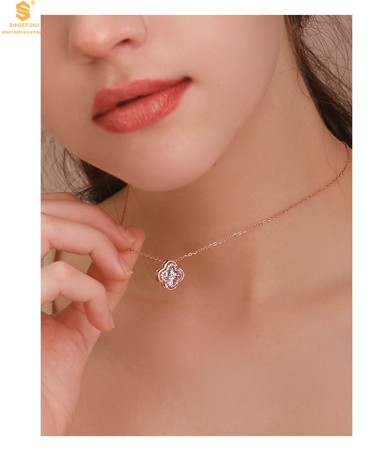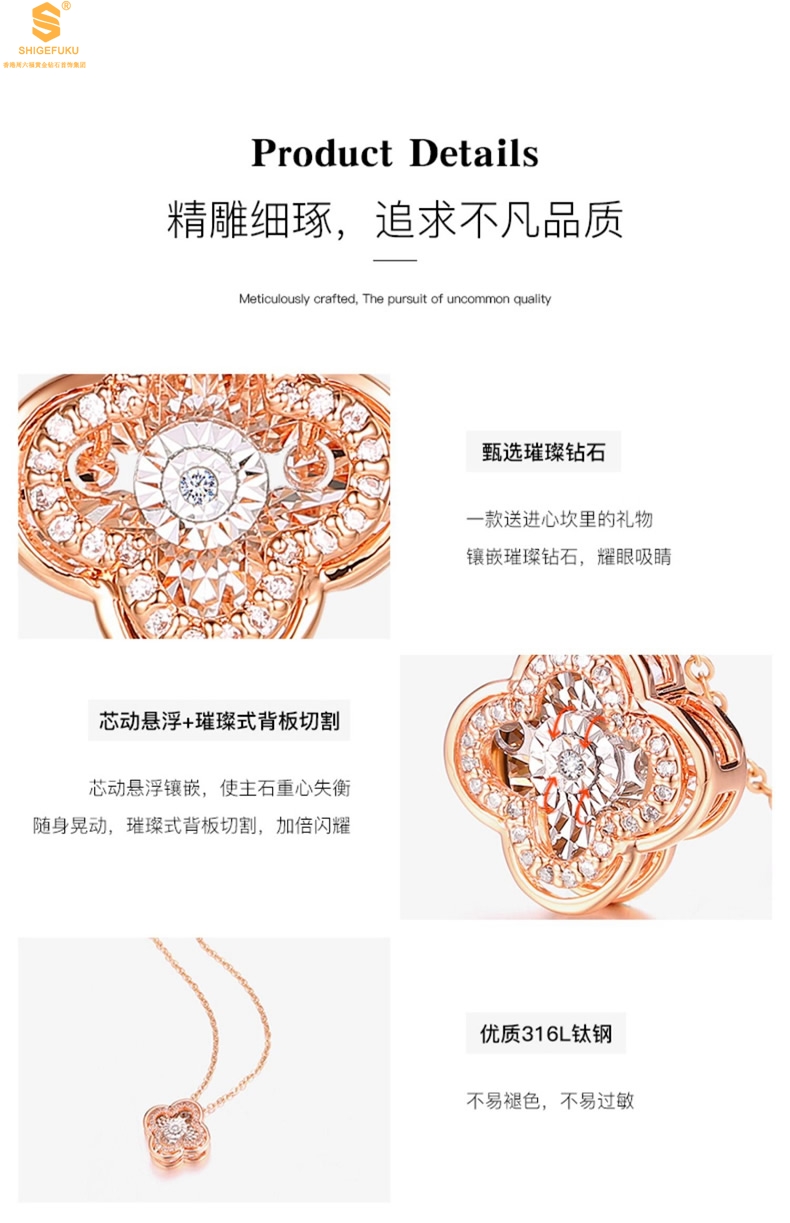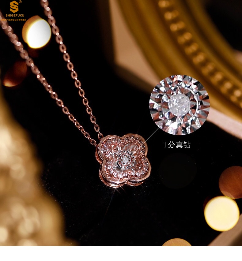 【品名】18K镶钻南非真钻灵动四叶草