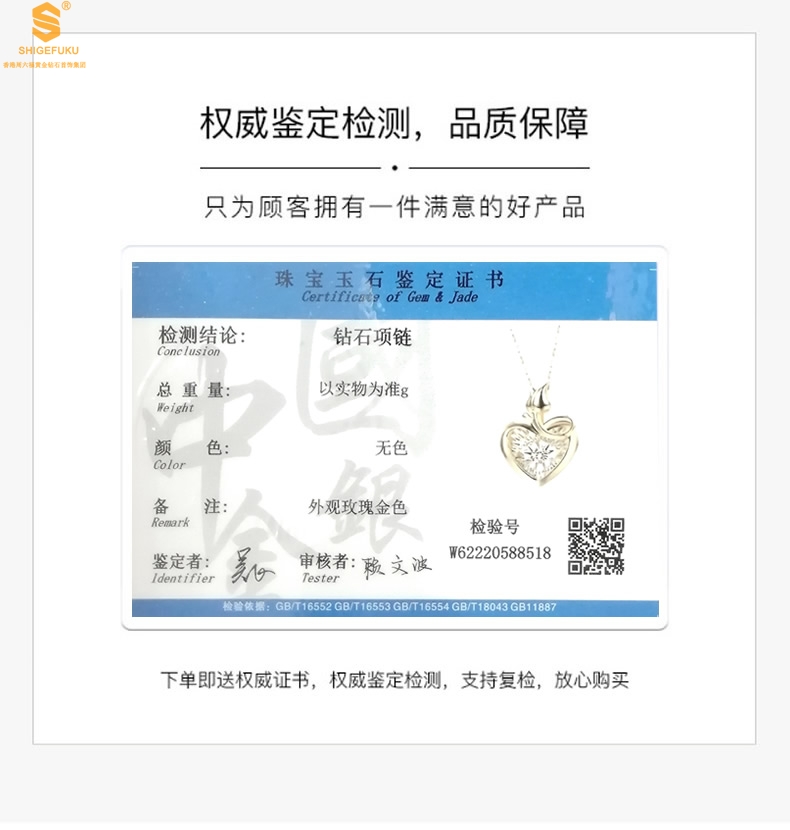 【套装包含】首饰+礼品盒+礼品袋+国检证书+质保单+价签