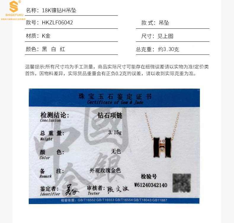 【套装包含】首饰+礼品盒+礼品袋+国检证书+质保单+价签
