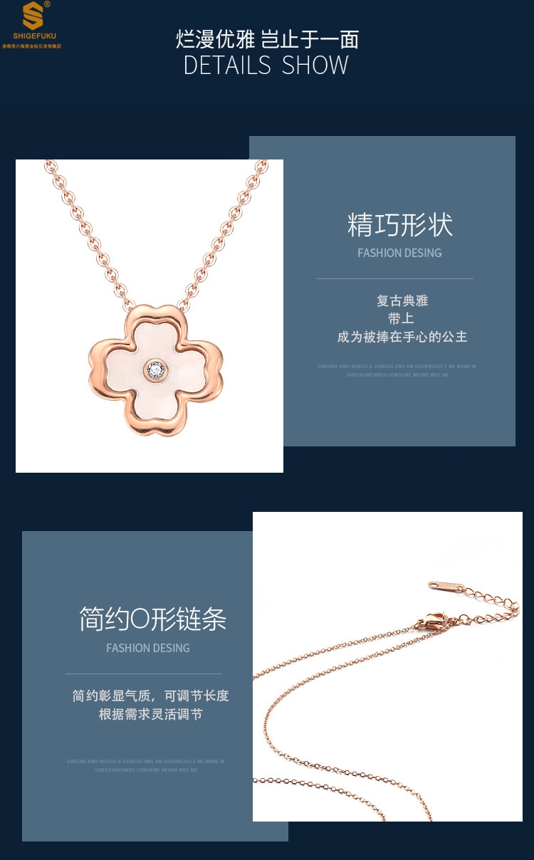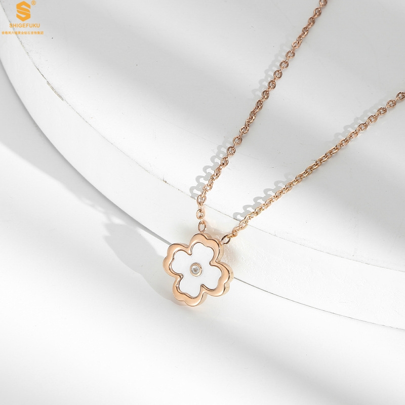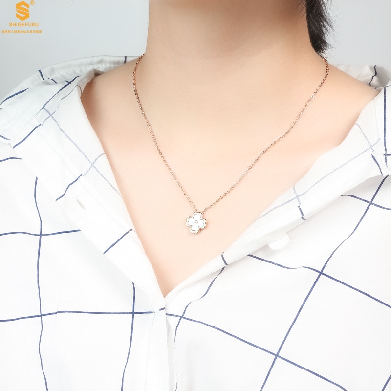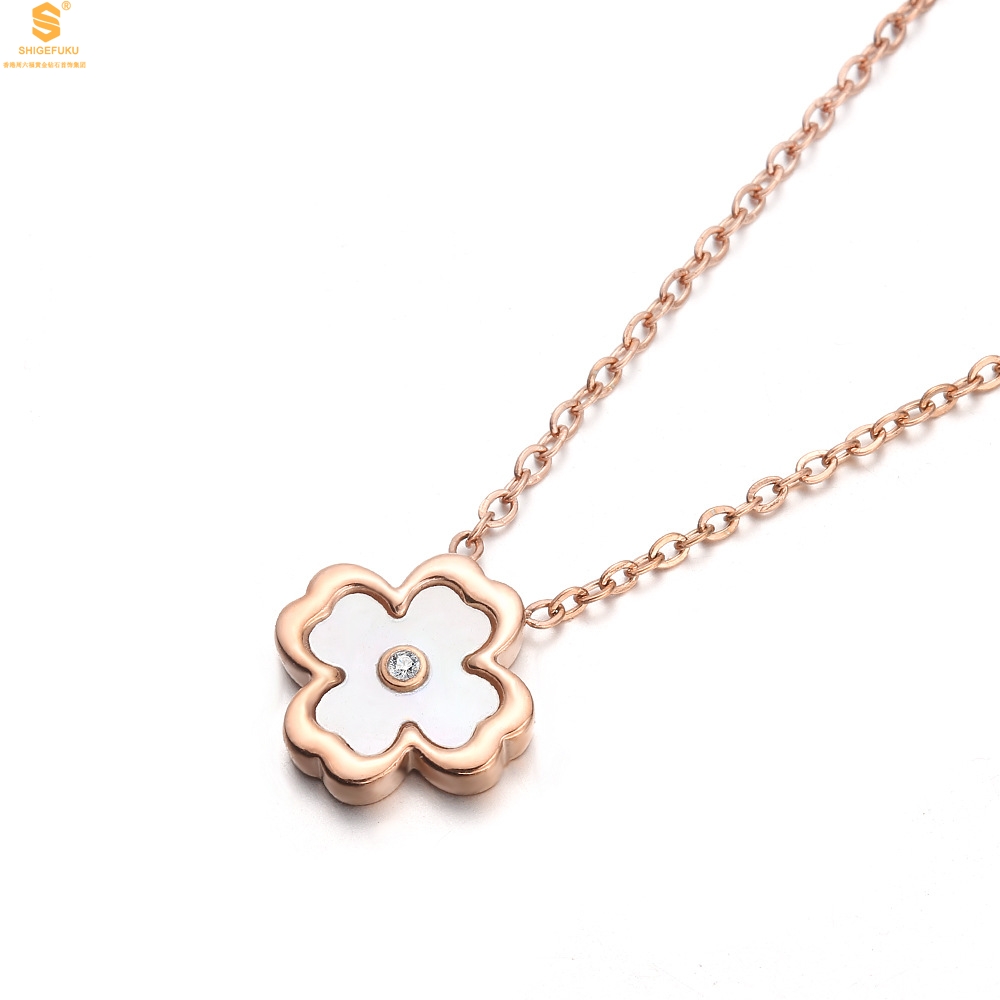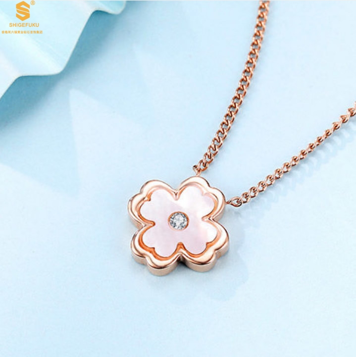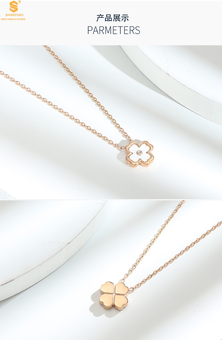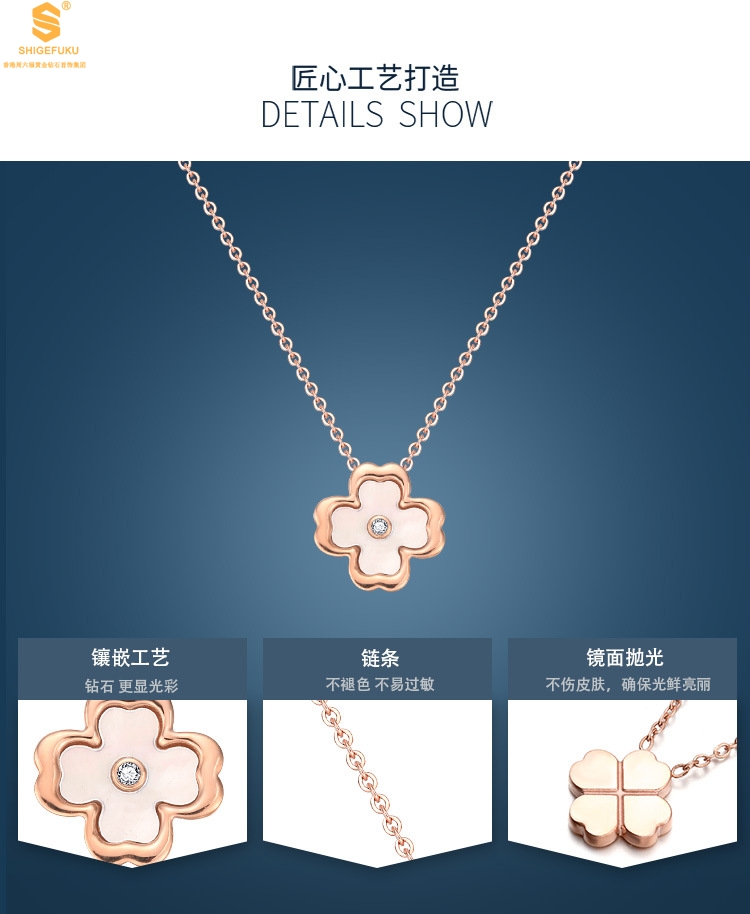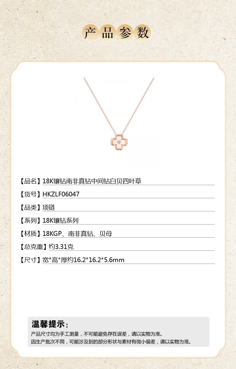 【品名】18K镶钻南非真钻中间钻白贝四叶草