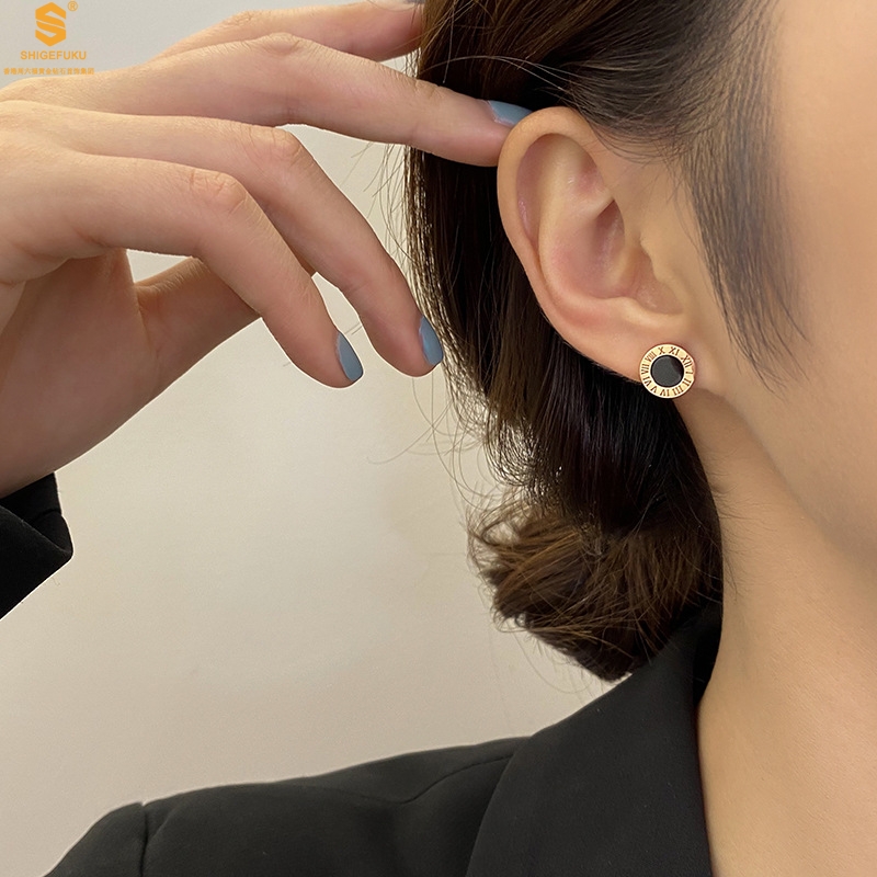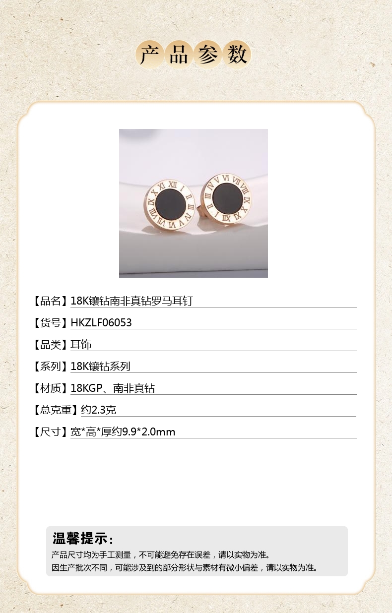 【品名】18K镶钻南非真钻罗马耳钉