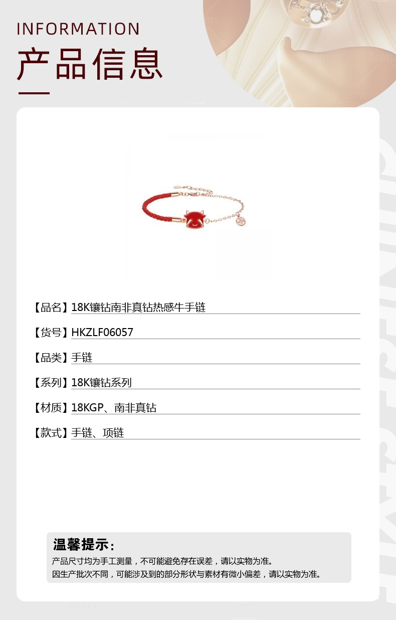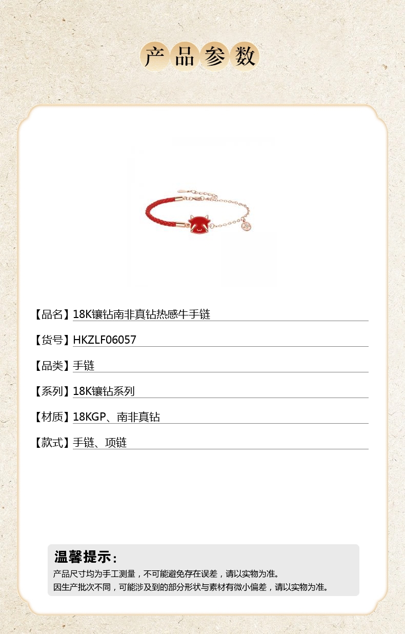 【品名】18K镶钻南非真钻热感牛手链
