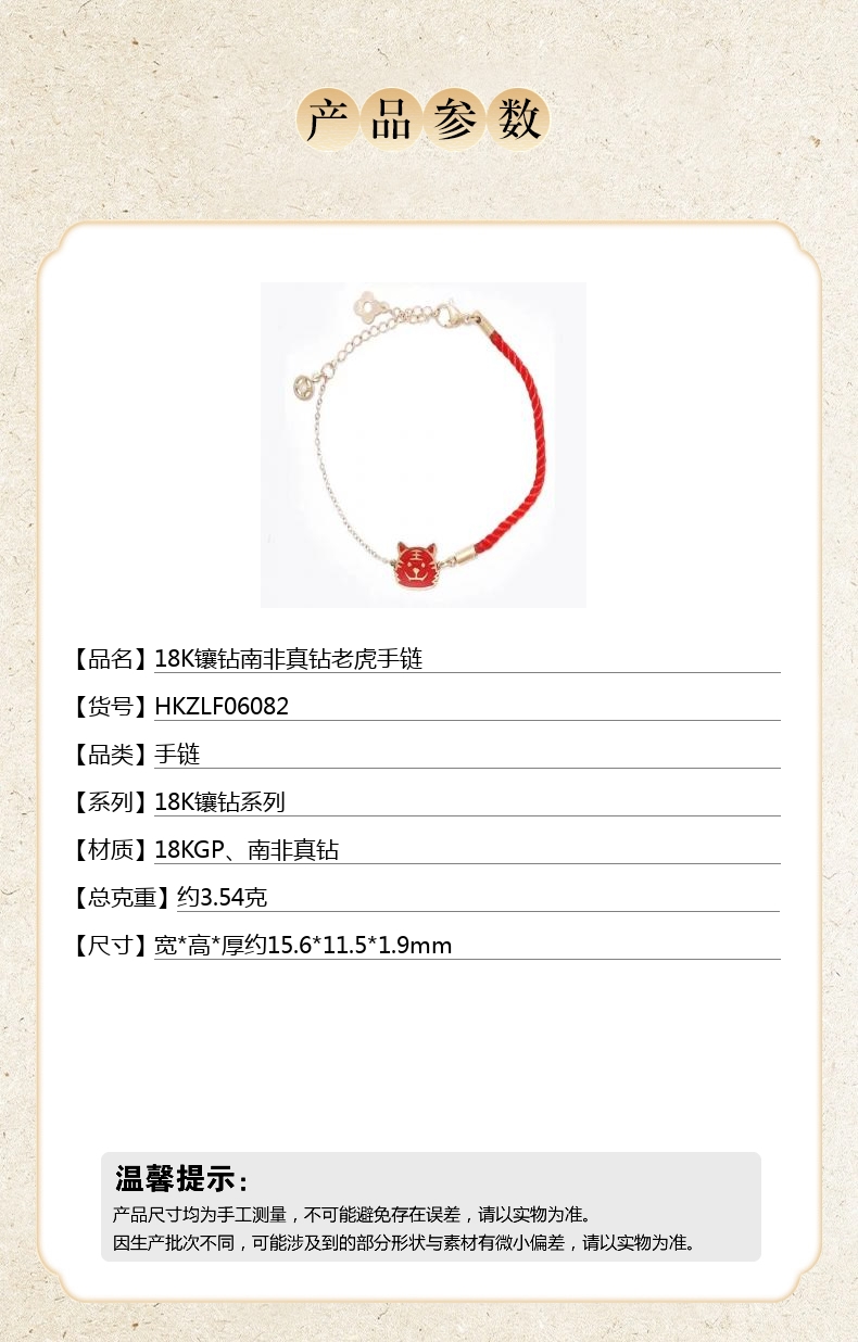 【品名】18K镶钻南非真钻老虎手链