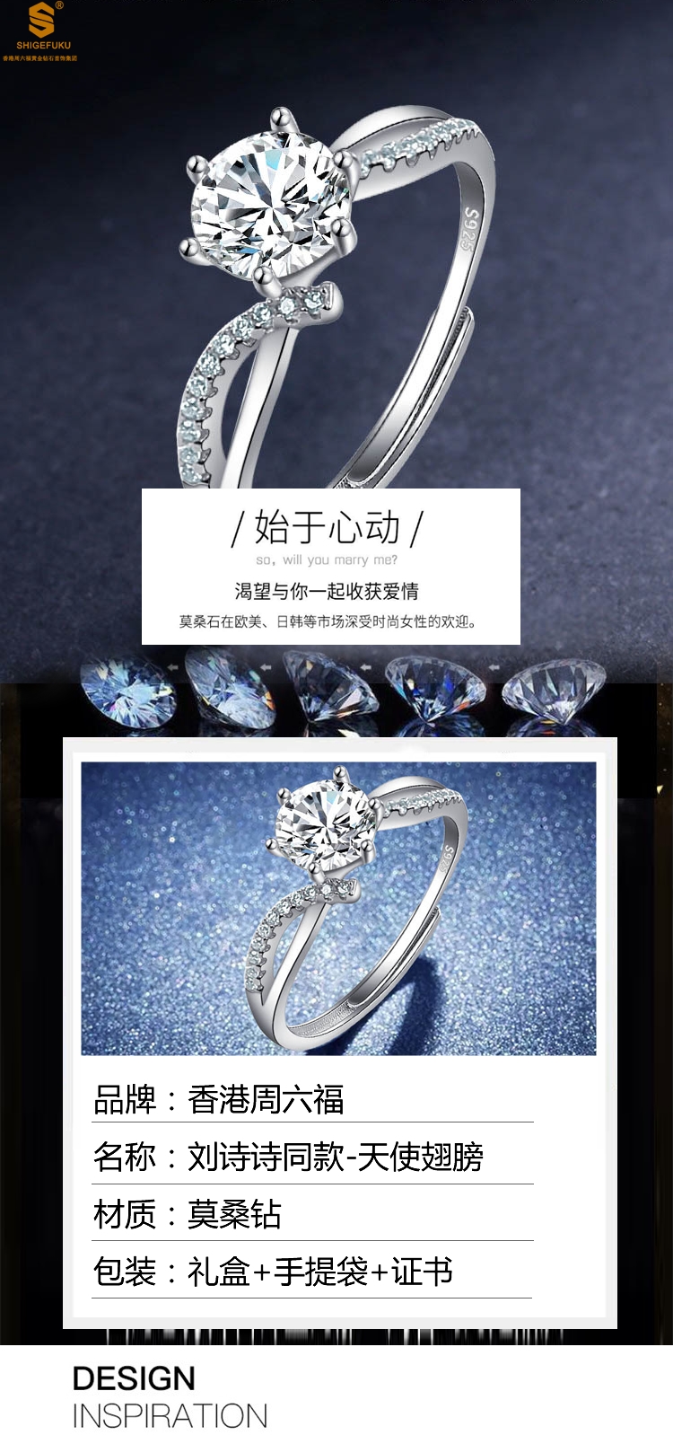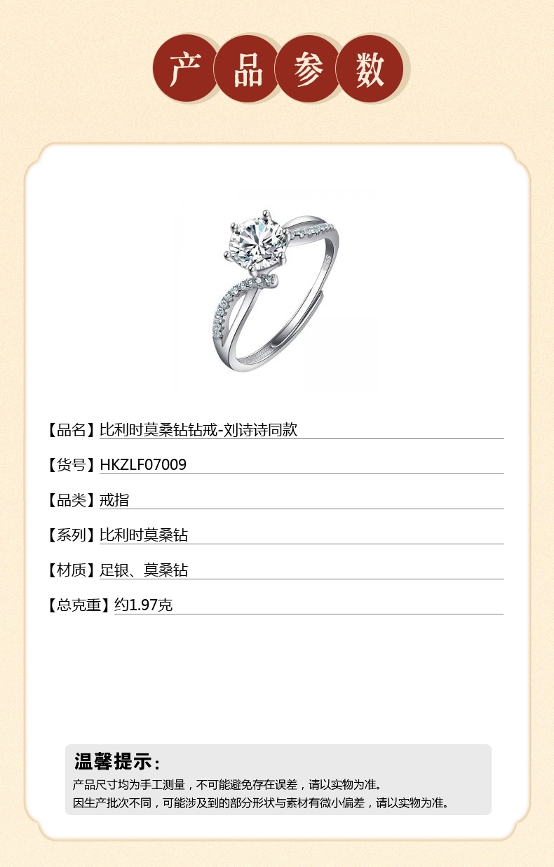 【品名】比利时莫桑钻钻戒-刘诗诗同款
