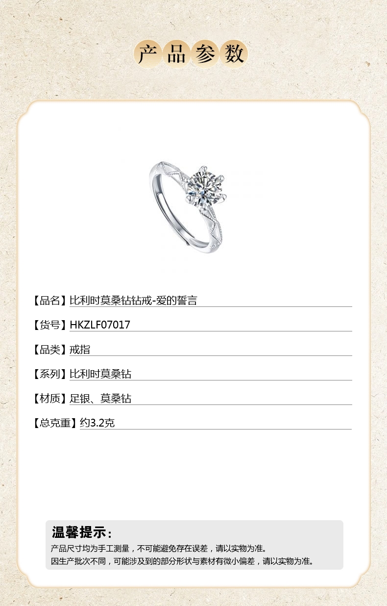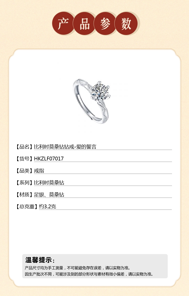 【品名】比利时莫桑钻钻戒-爱的誓言