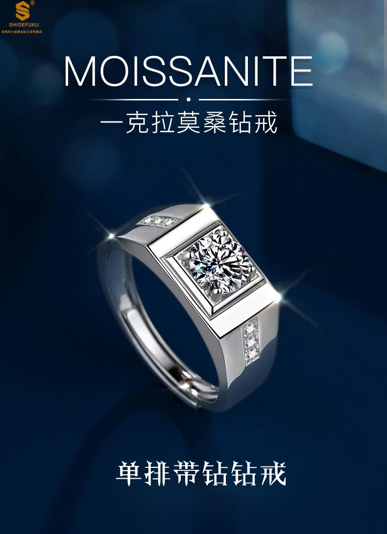 【品名】比利时莫桑钻钻戒-单排带钻