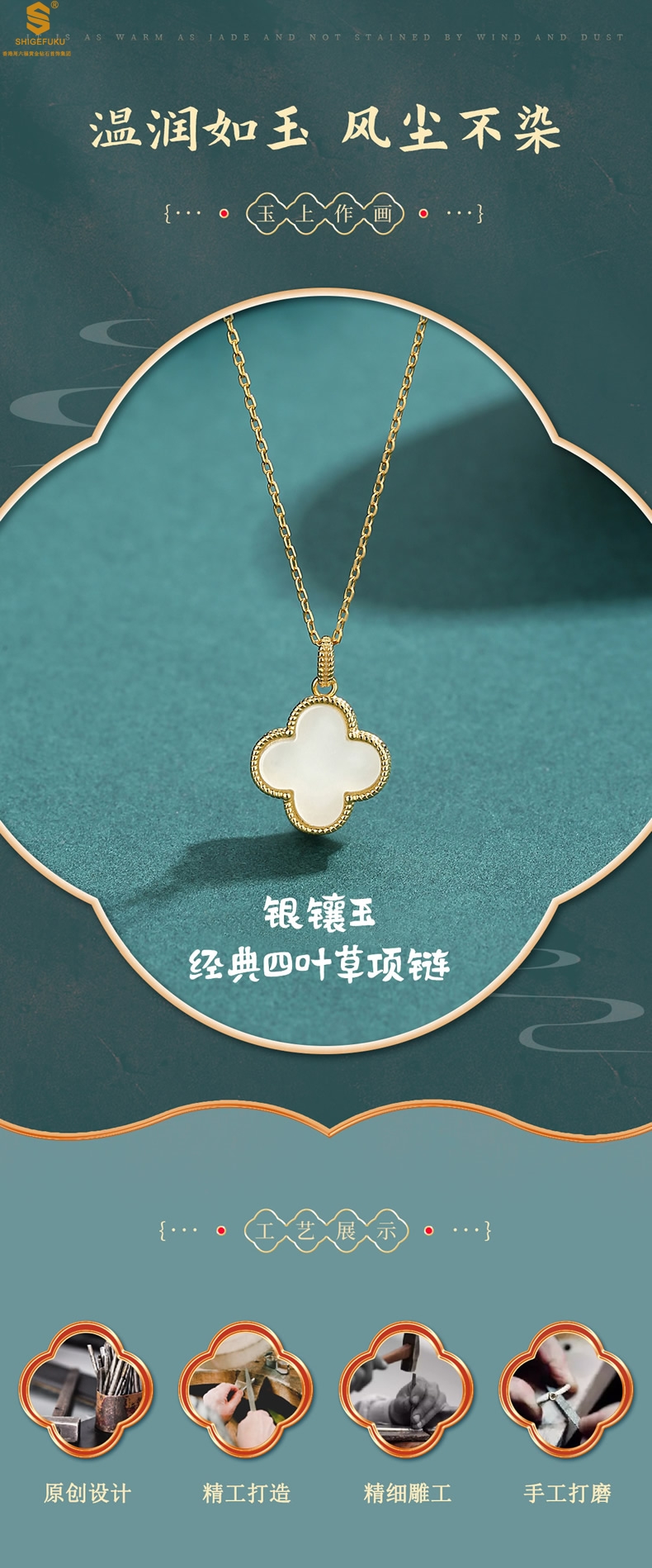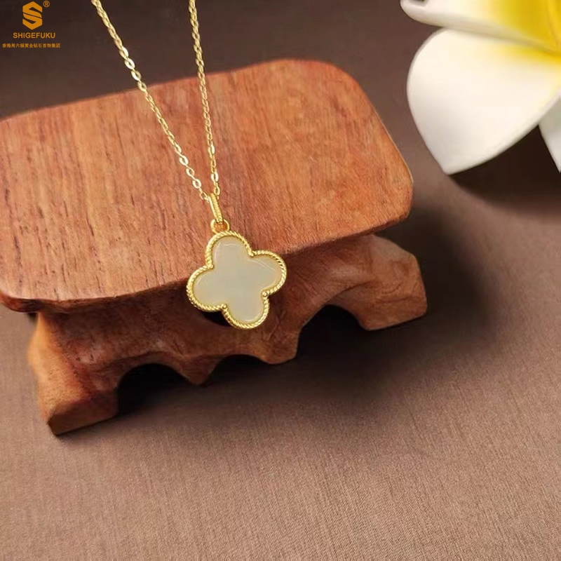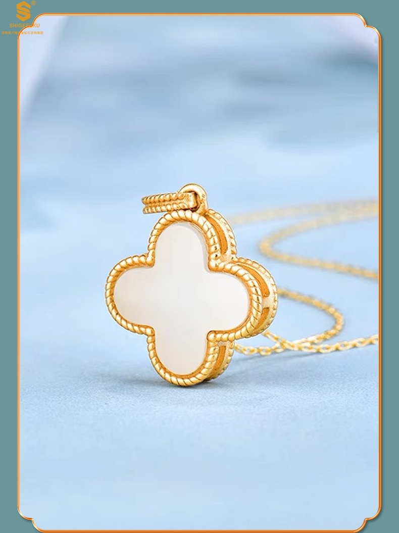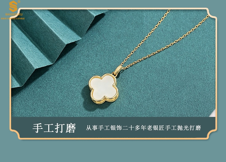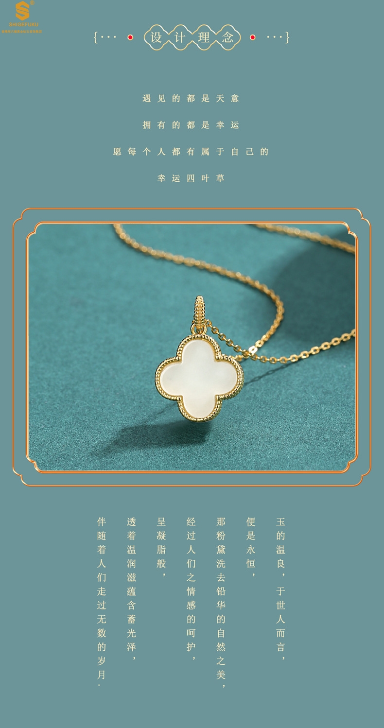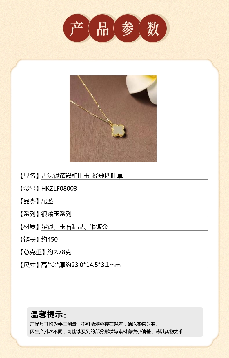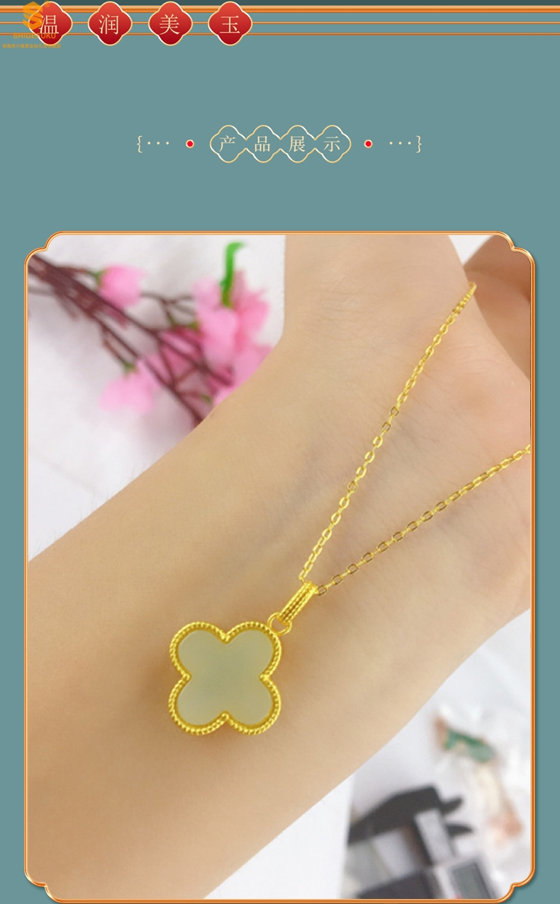 【品名】古法银镶嵌和田玉-经典四叶草