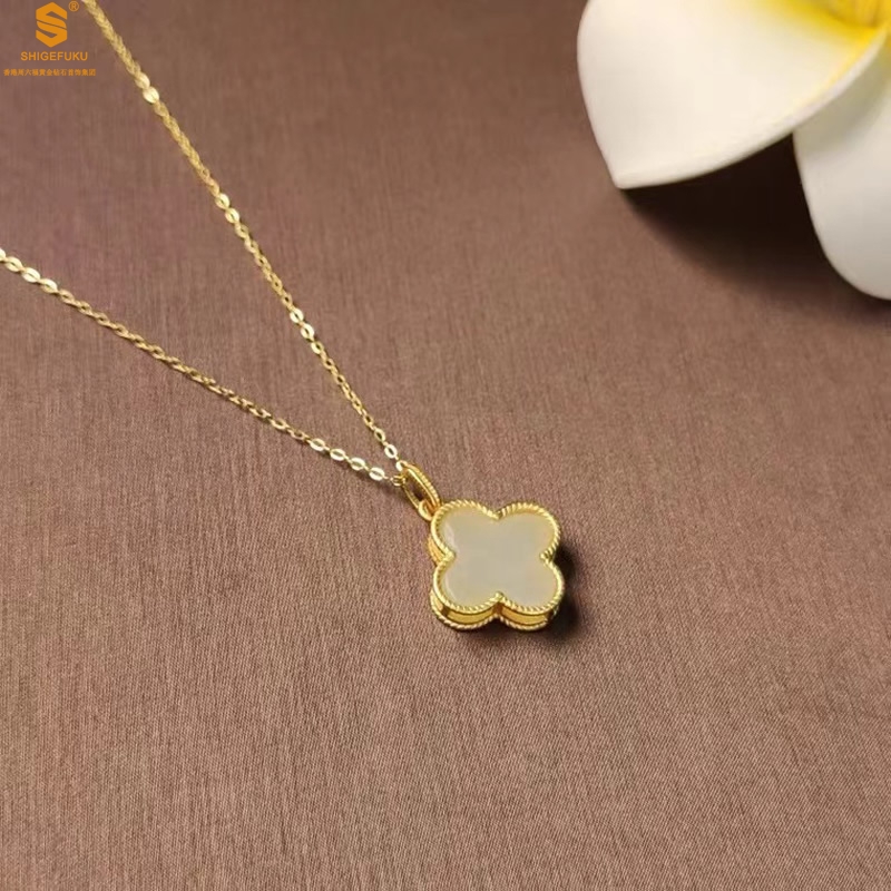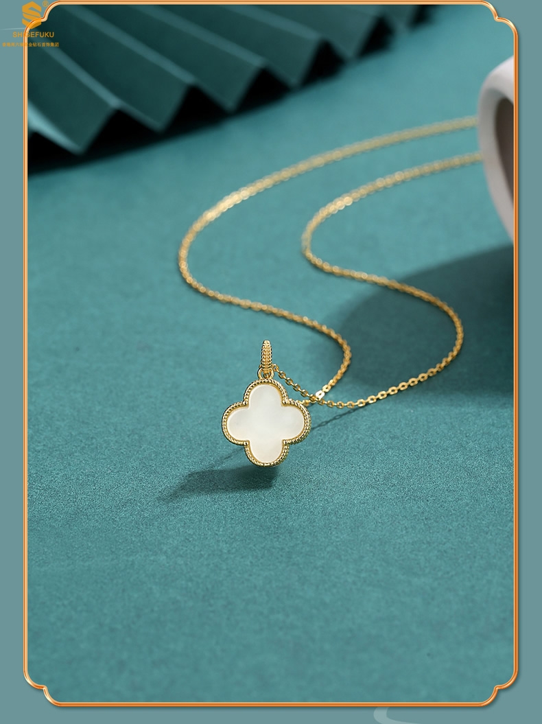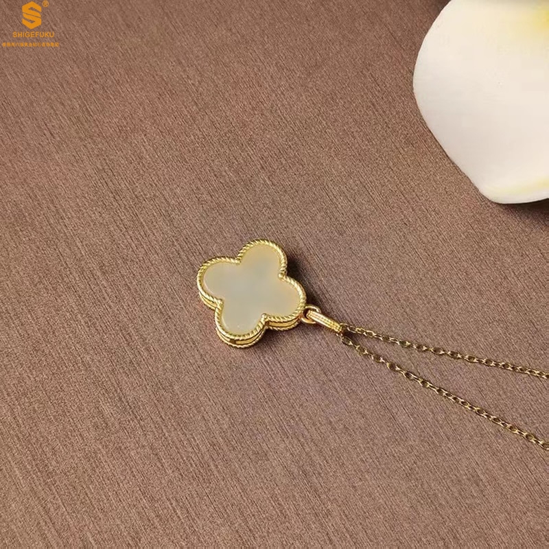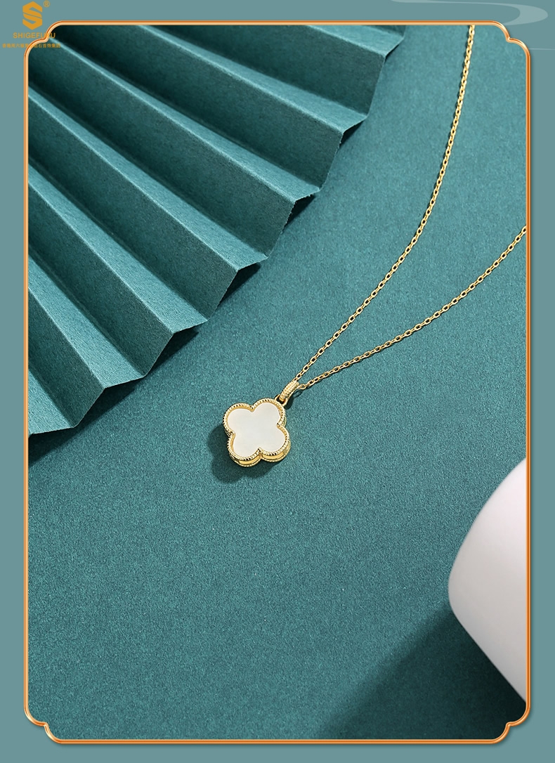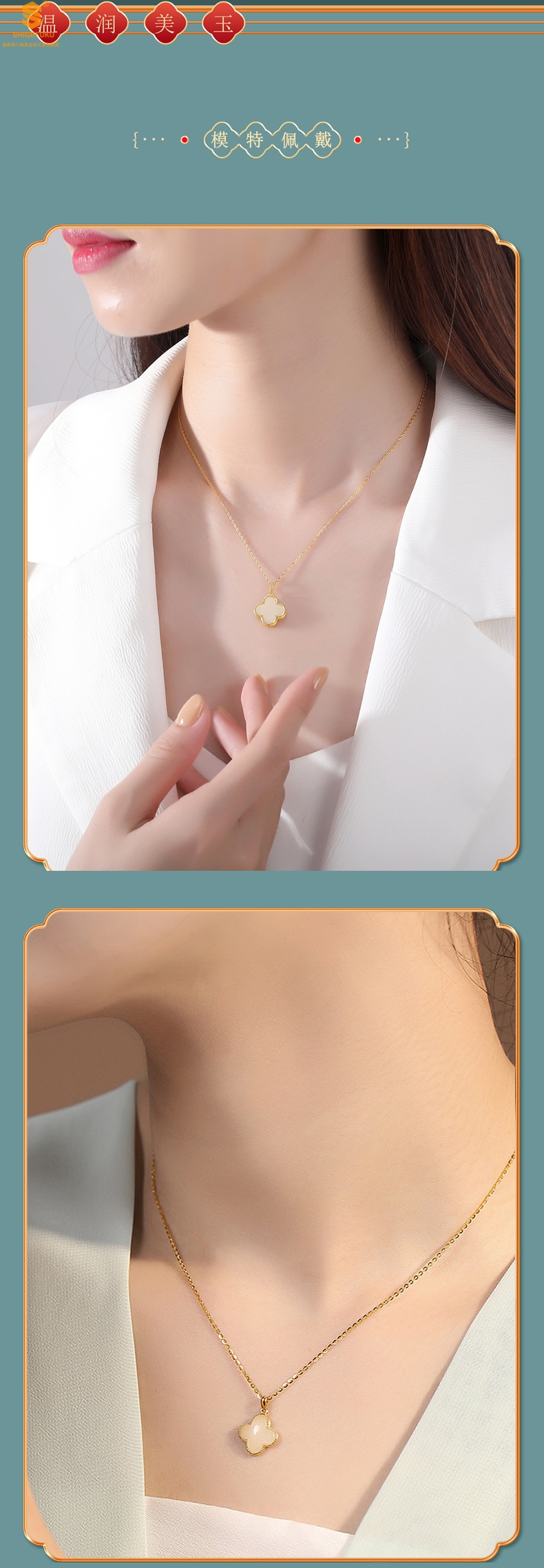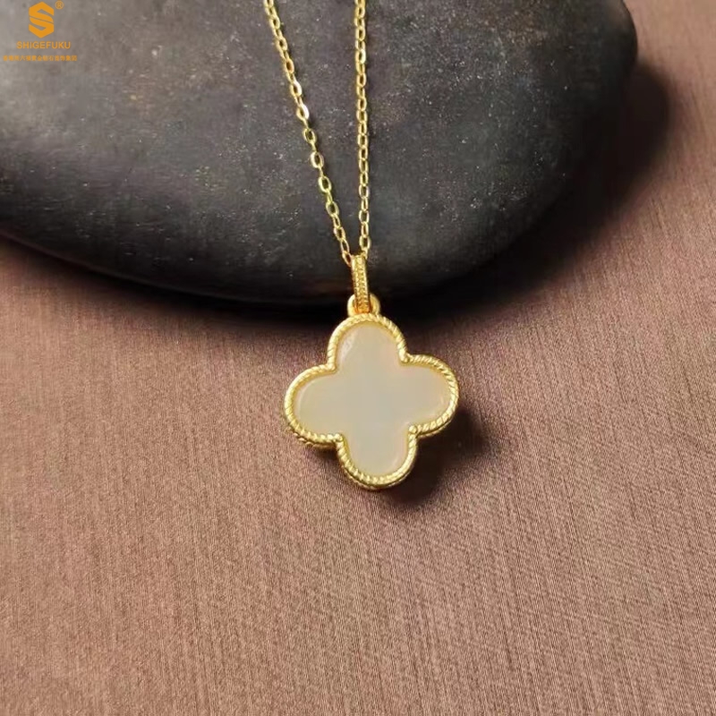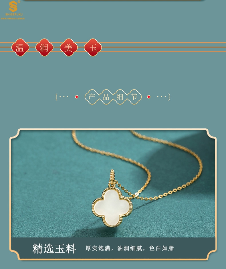 【品名】古法银镶嵌和田玉-经典四叶草