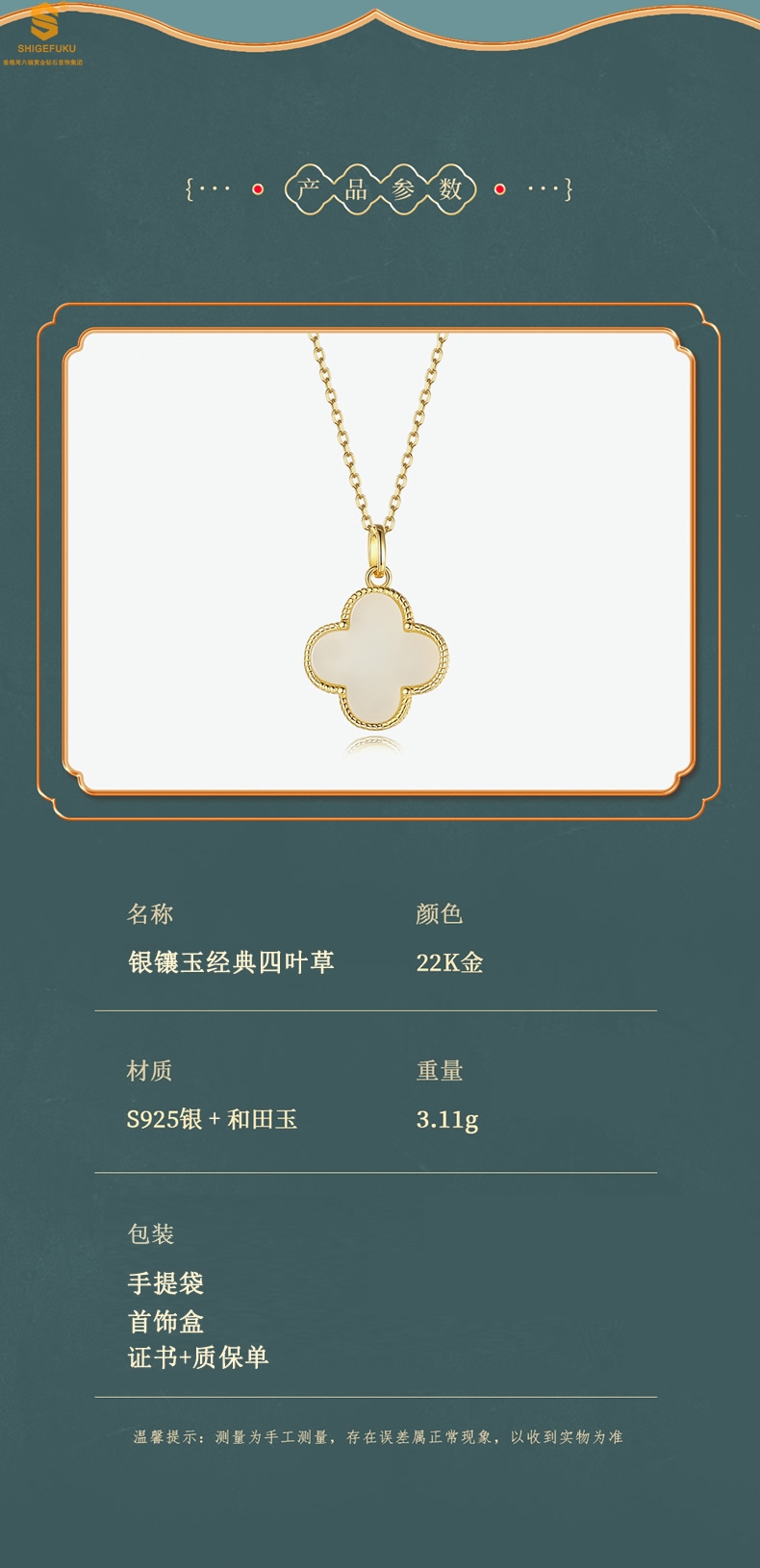 【套装包含】首饰+礼品盒+礼品袋+国检证书+质保单+价签