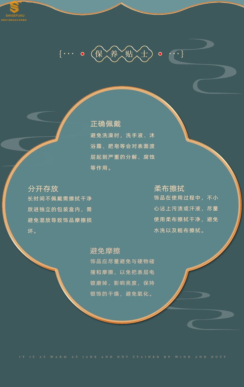 6、售后寄回物品,必须保证:首饰+礼品盒+礼品袋(如有)+国检证书+质保单+保养卡均寄回,丢失部分我们将按照售价扣除。