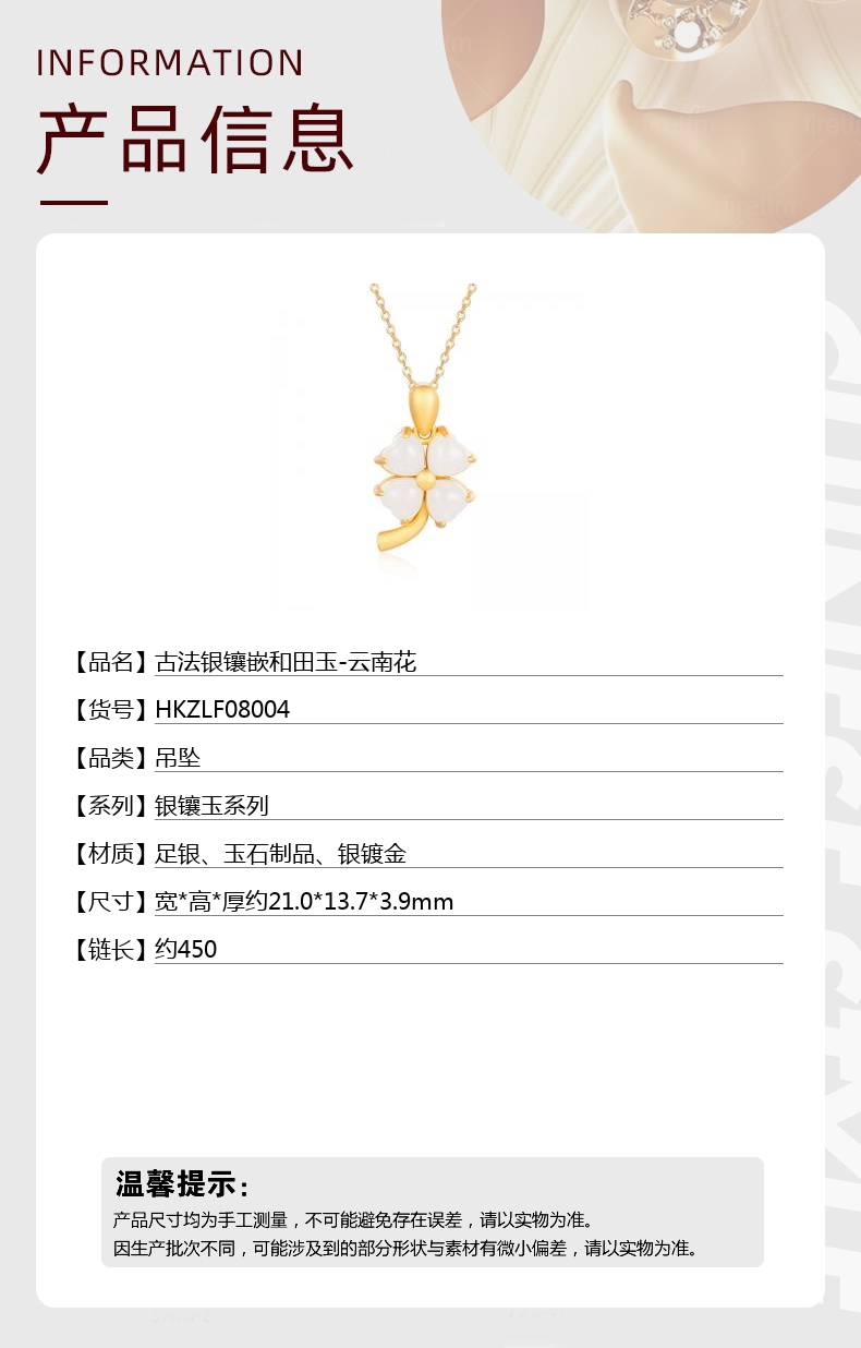 【材质】足银、玉石制品、银镀金