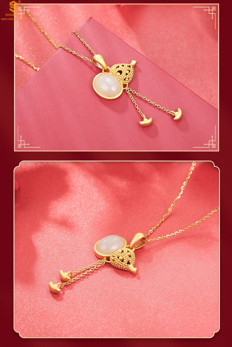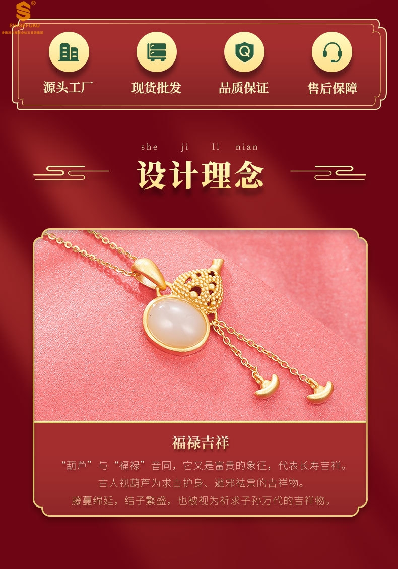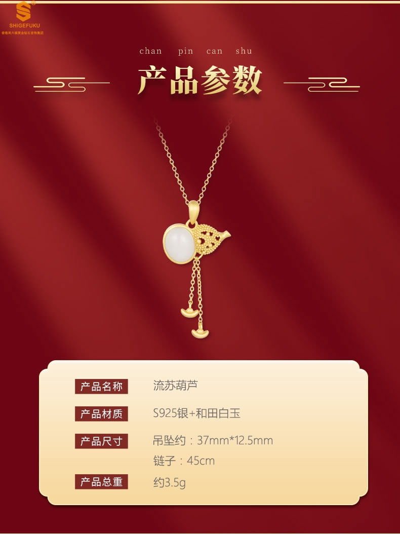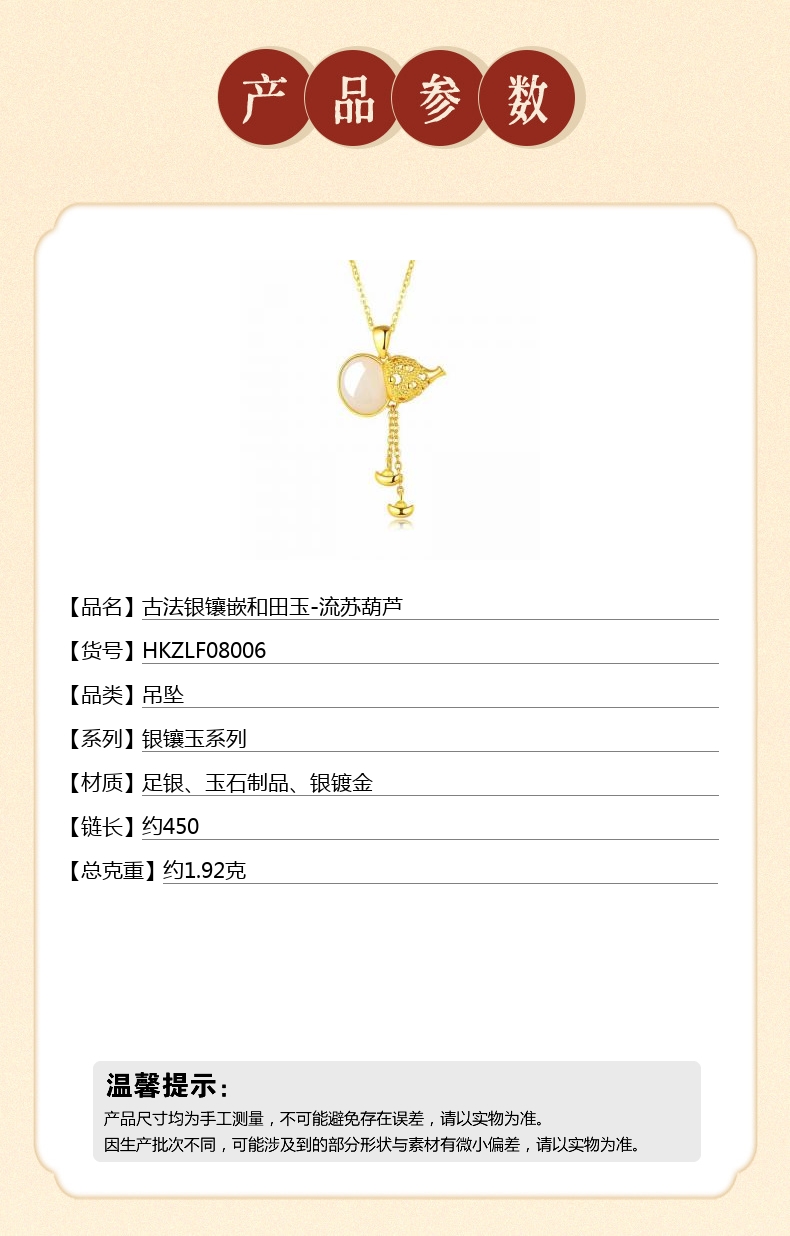 【品名】古法银镶嵌和田玉-流苏葫芦