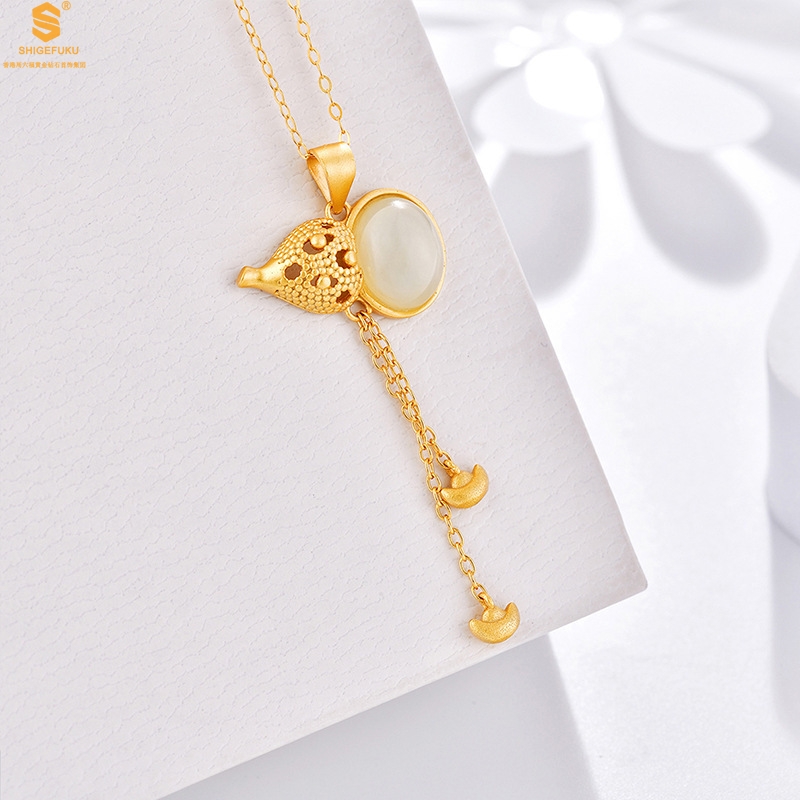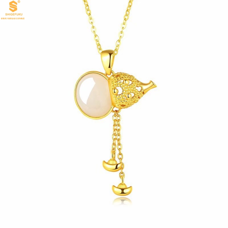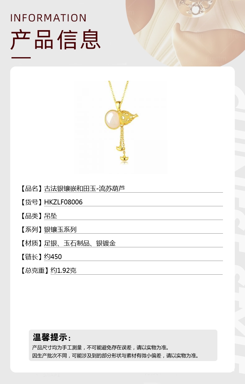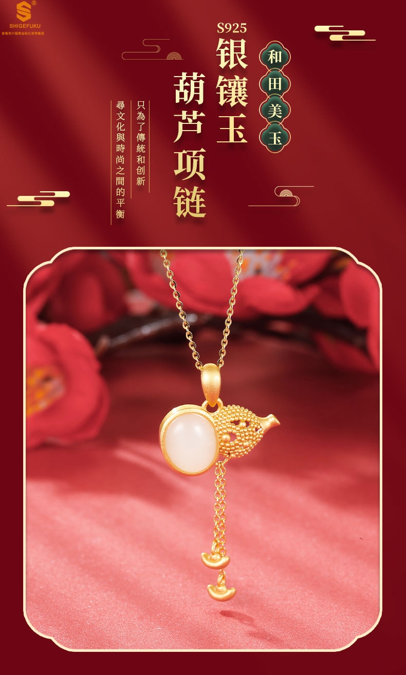 【品名】古法银镶嵌和田玉-流苏葫芦
