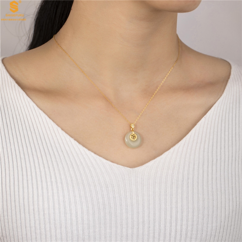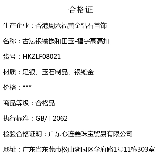 【品名】古法银镶嵌和田玉-福字高高扣