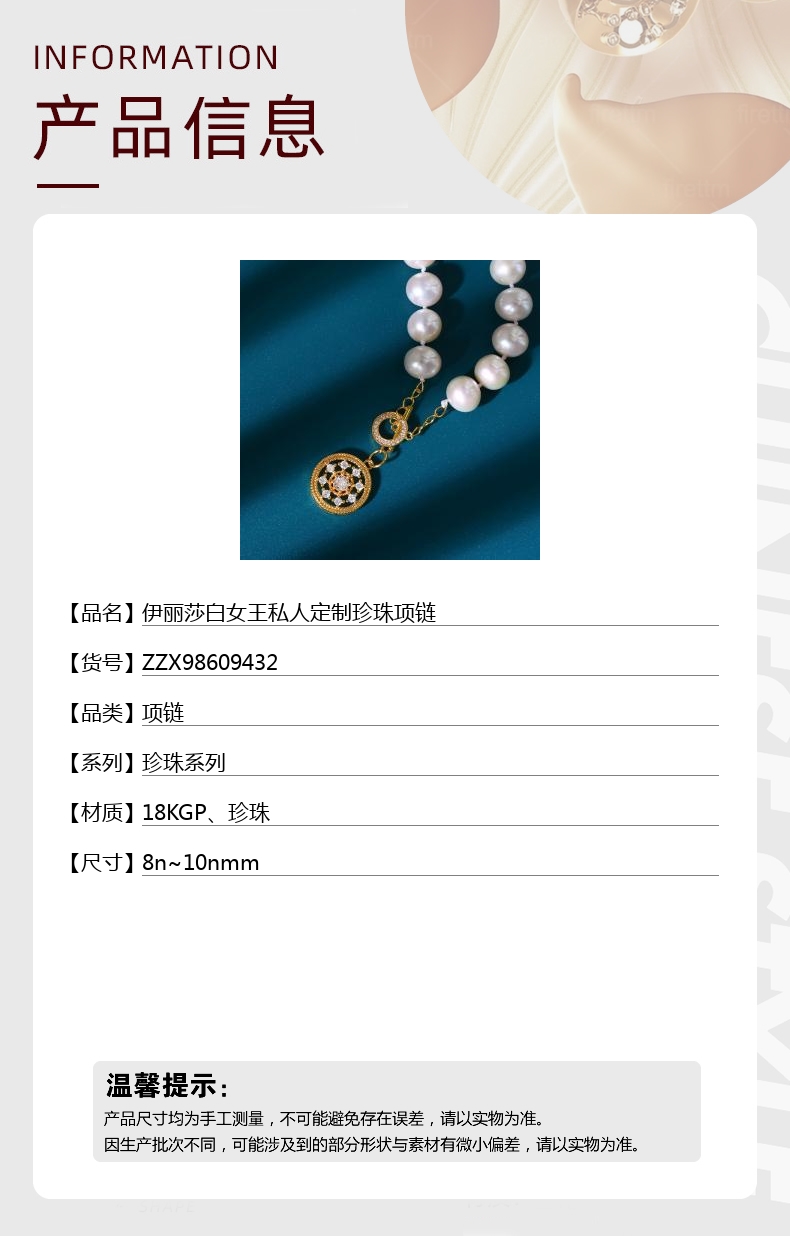 【品名】伊丽莎白女王私人定制珍珠项链