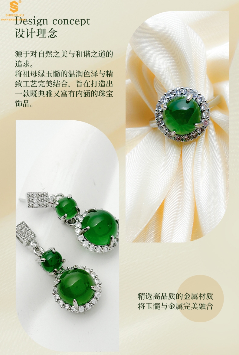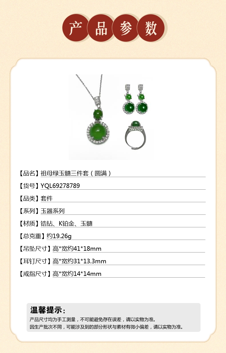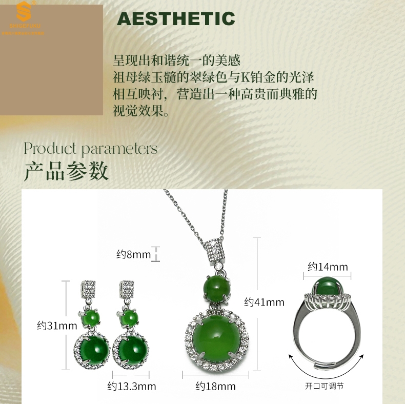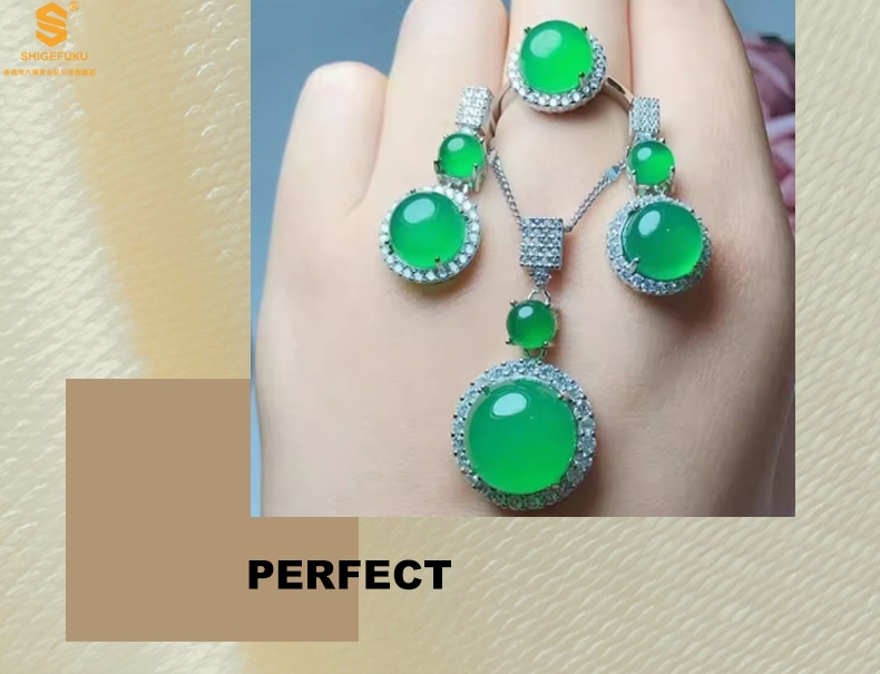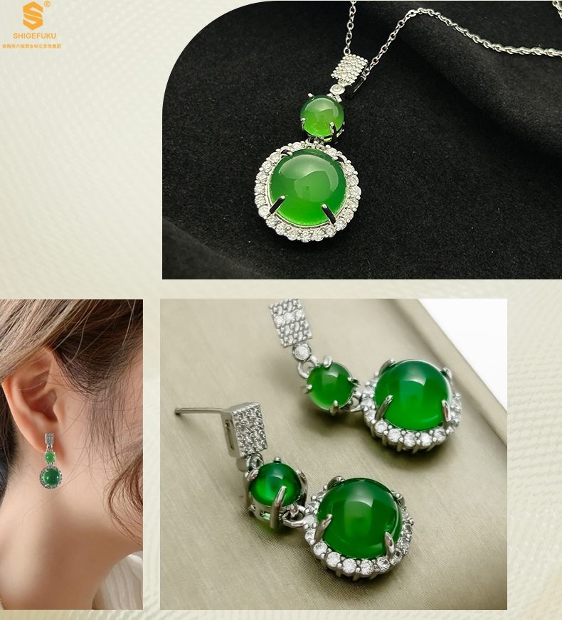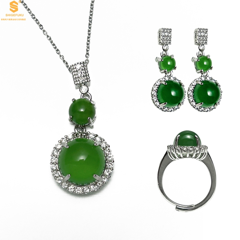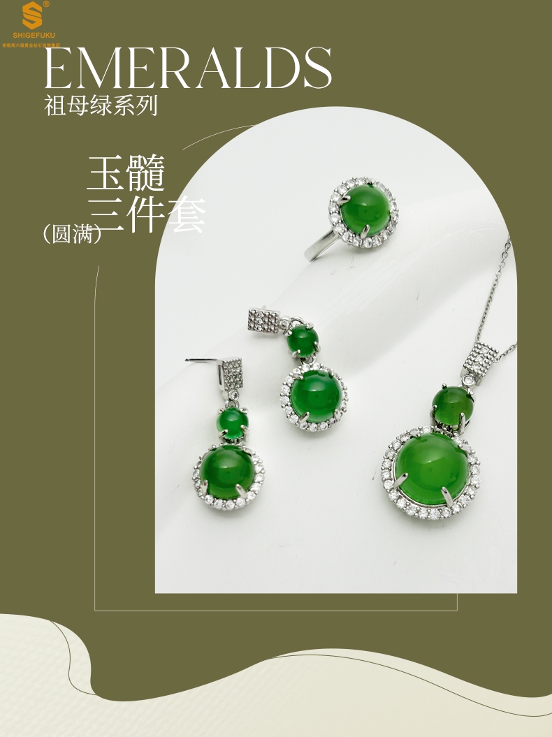 【品名】祖母绿玉髓三件套(圆满)