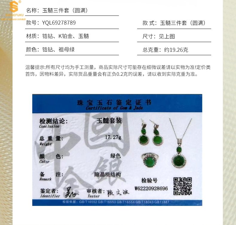 【套装包含】首饰+礼品盒+礼品袋+国检证书+质保单+价签