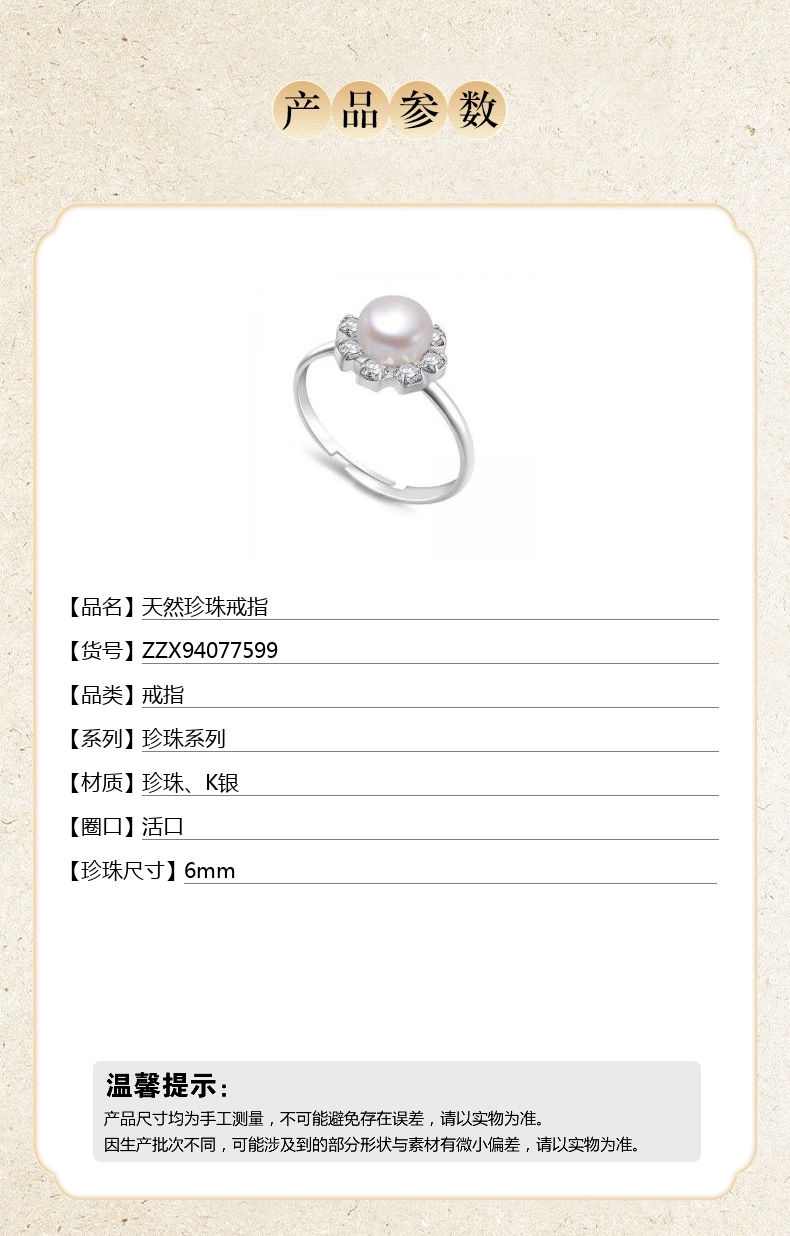 【品名】天然珍珠戒指